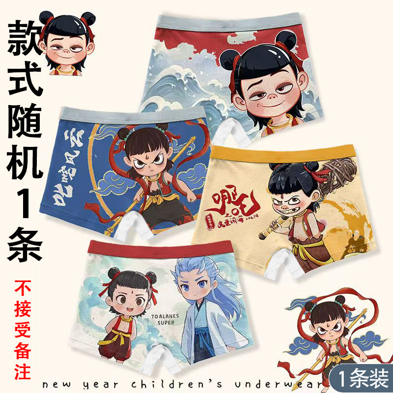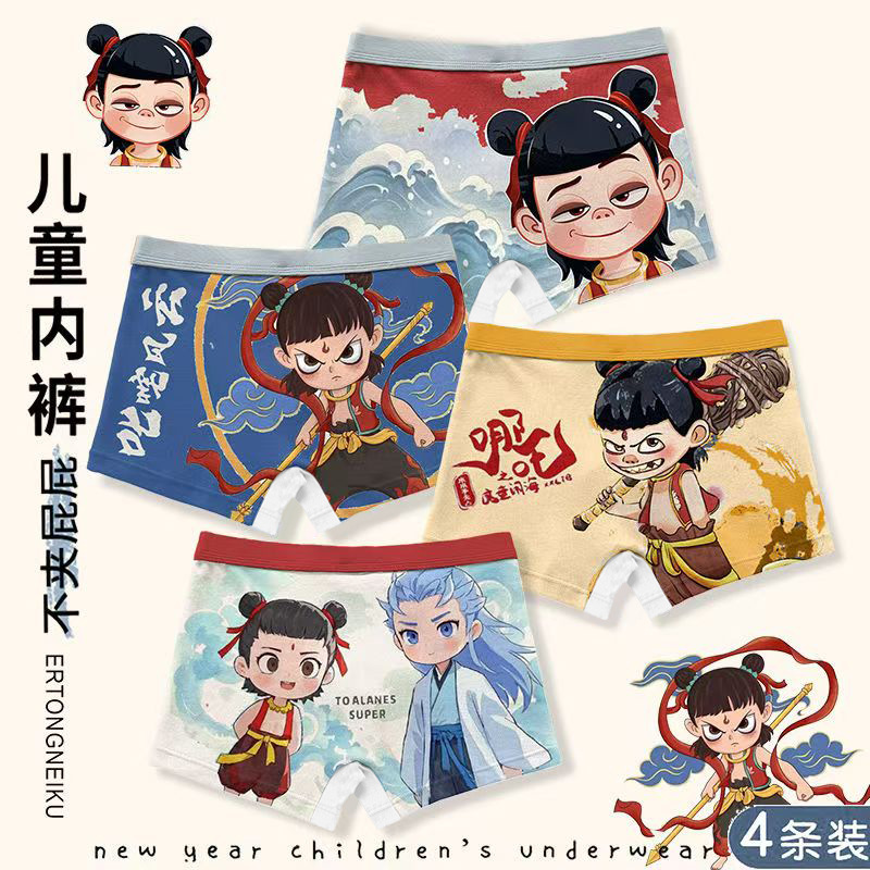 (4 팩) 아동 속옷 소년 복서 소년 복서 2025 여름 얇은 Nezha Ao Bing 반바지스토어 가기