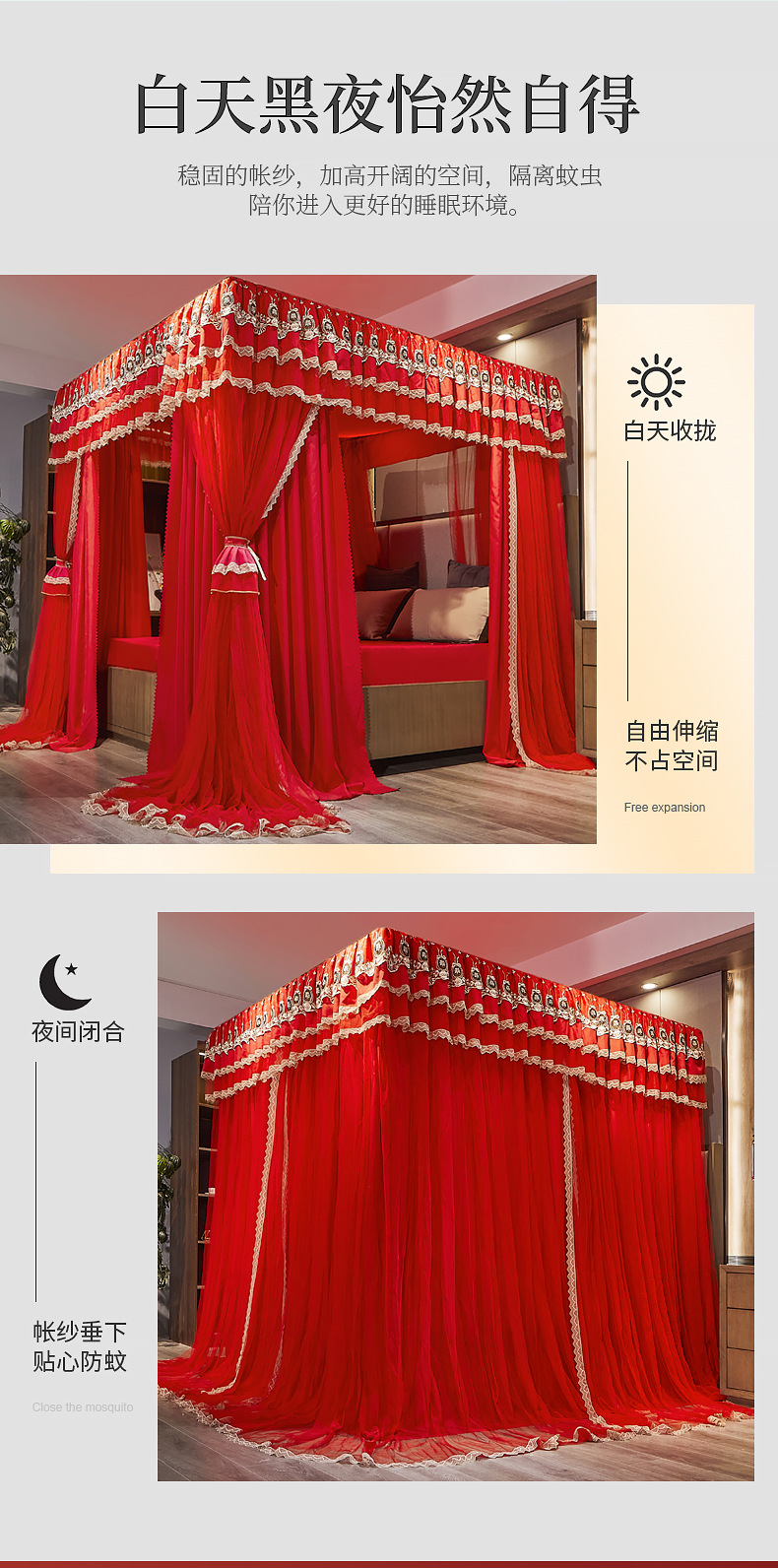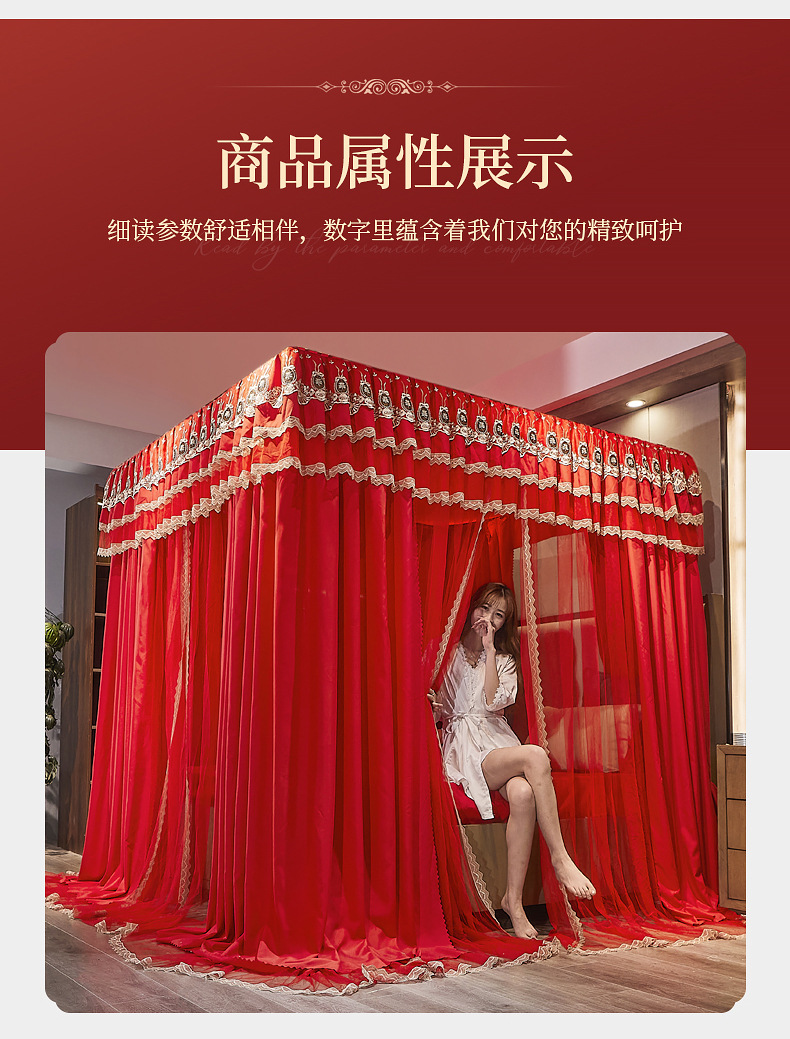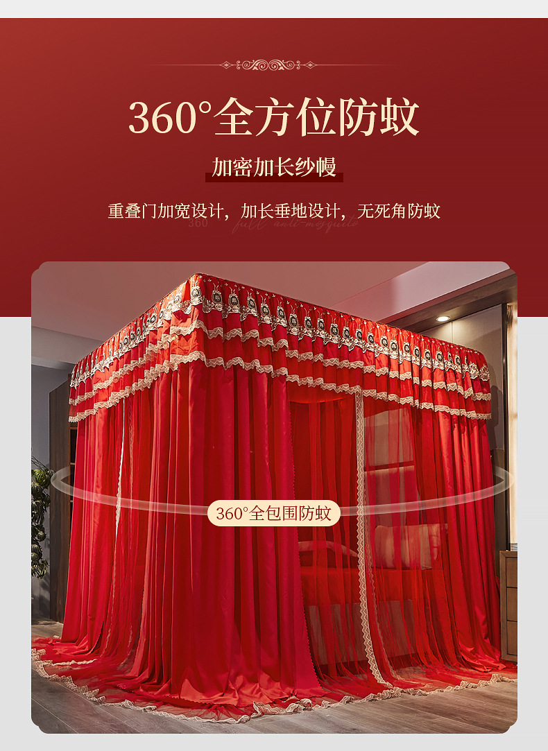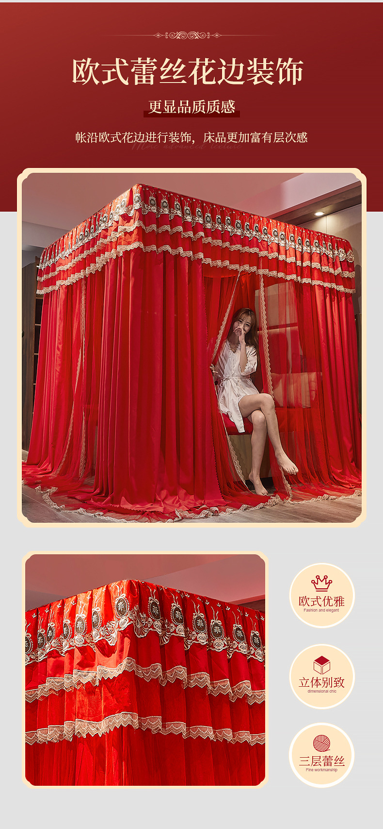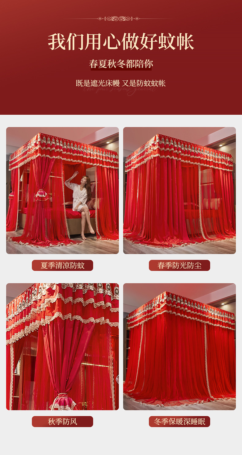 새로운 빅 레드 모기장 가정용 차광 바닥에서 천장까지 이어지는 이중층 두꺼운 침대 커튼 유럽식 이중 트랙 브래킷 3 도어 암호화스토어 가기