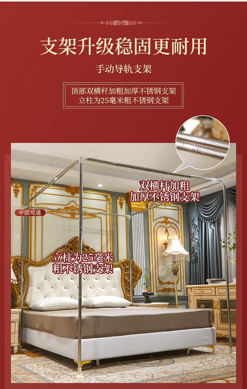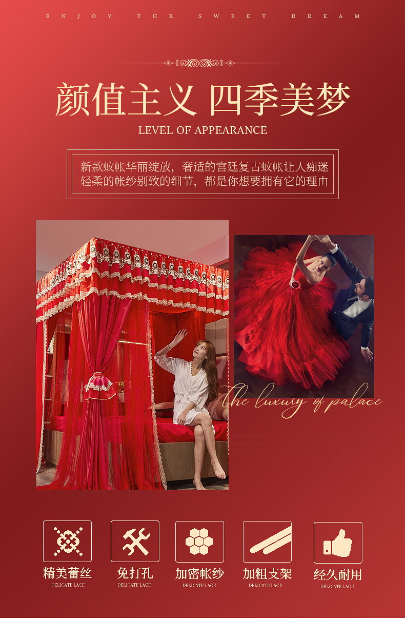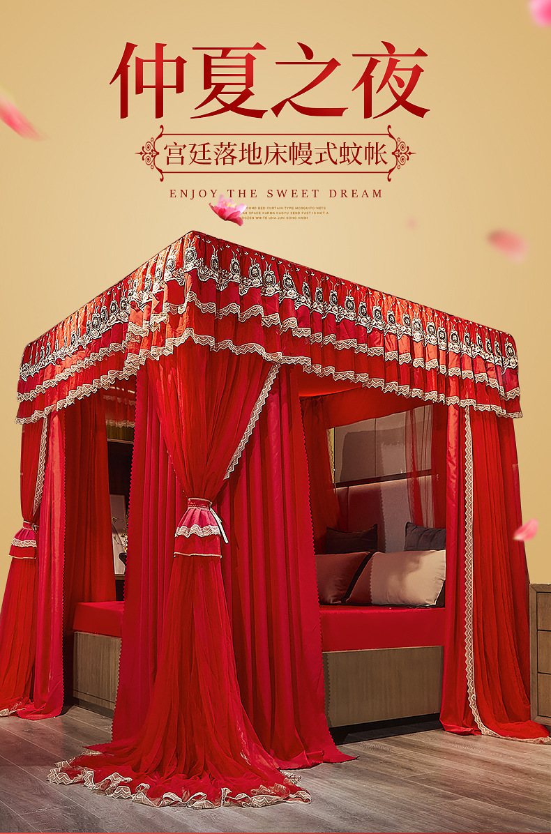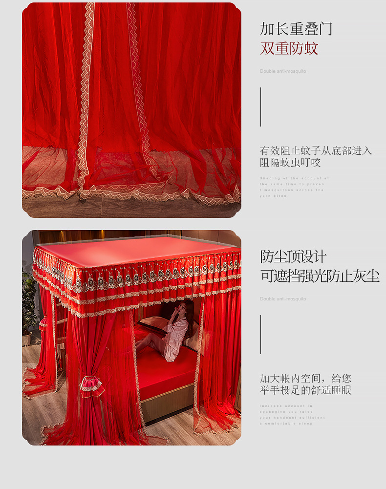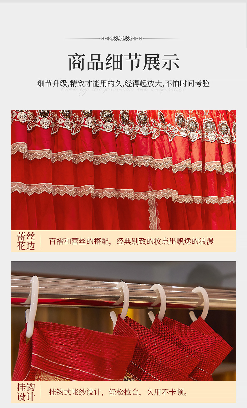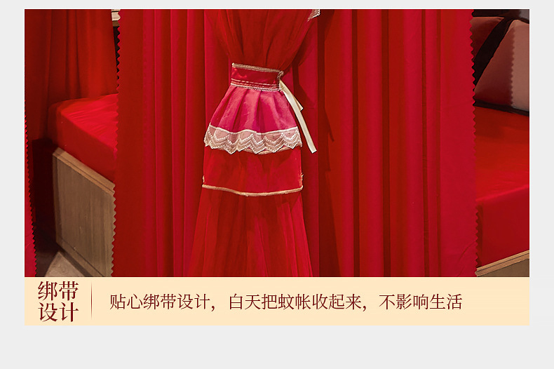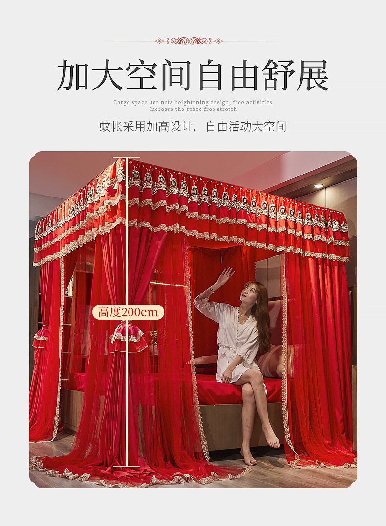 새로운 빅 레드 모기장 가정용 차광 바닥에서 천장까지 이어지는 이중층 두꺼운 침대 커튼 유럽식 이중 트랙 브래킷 3 도어 암호화스토어 가기