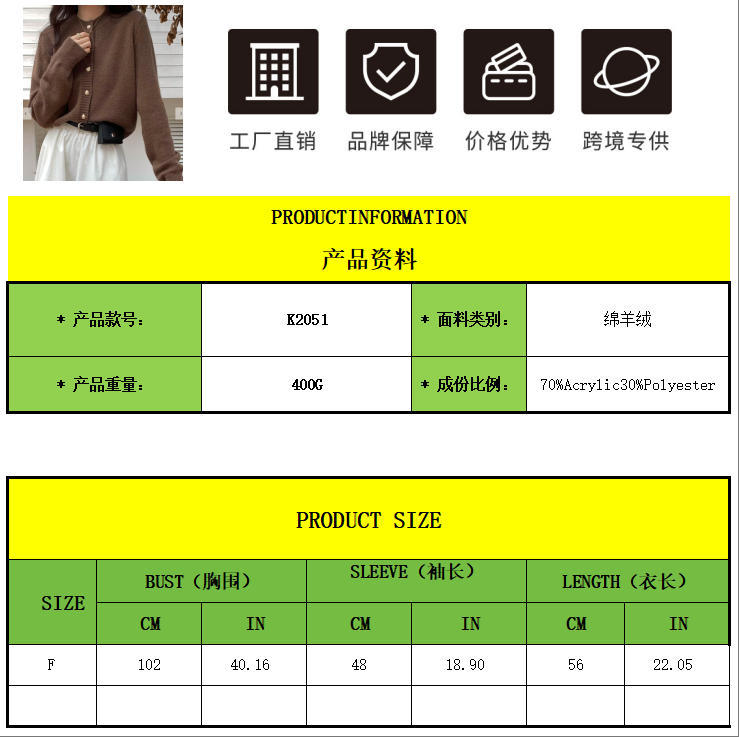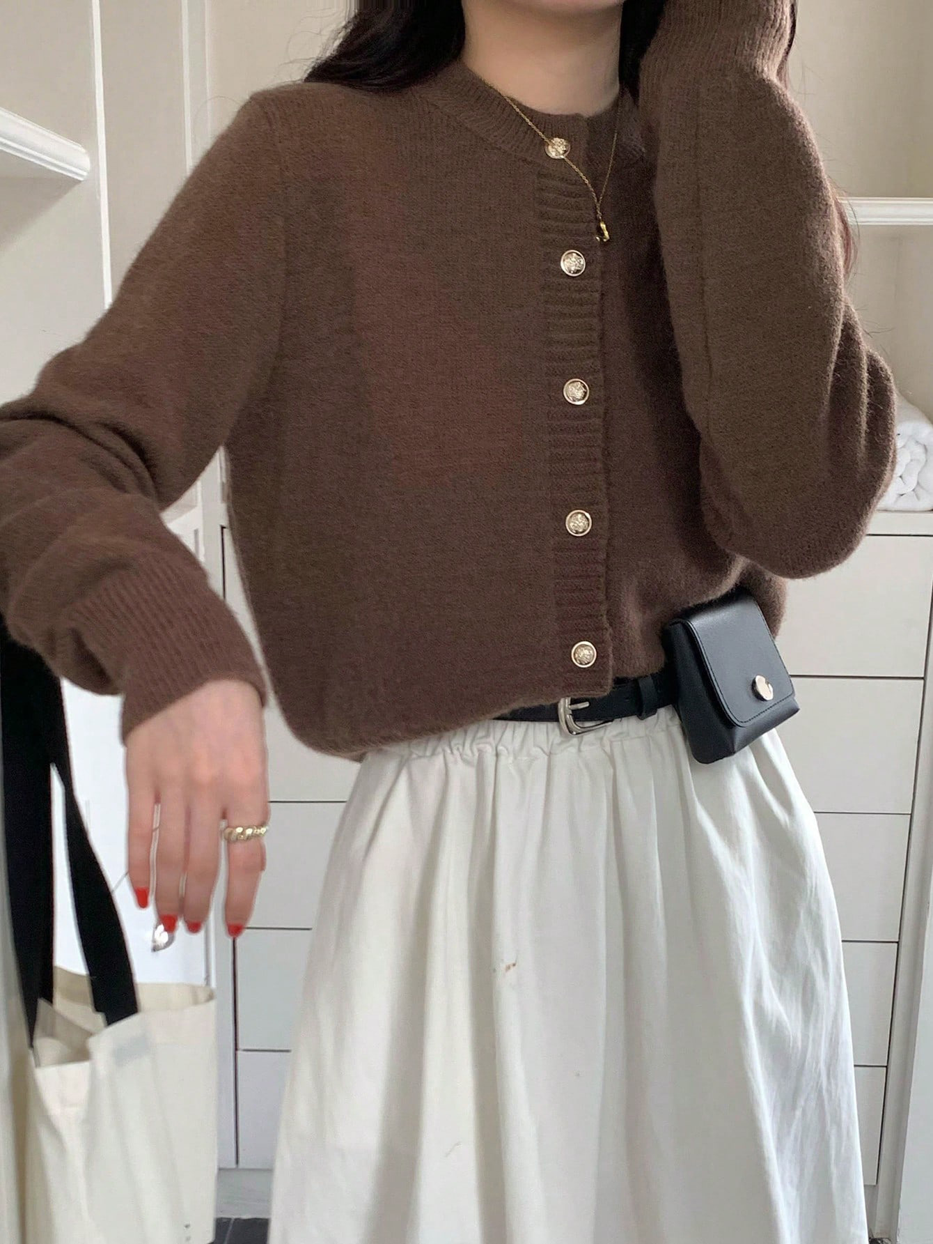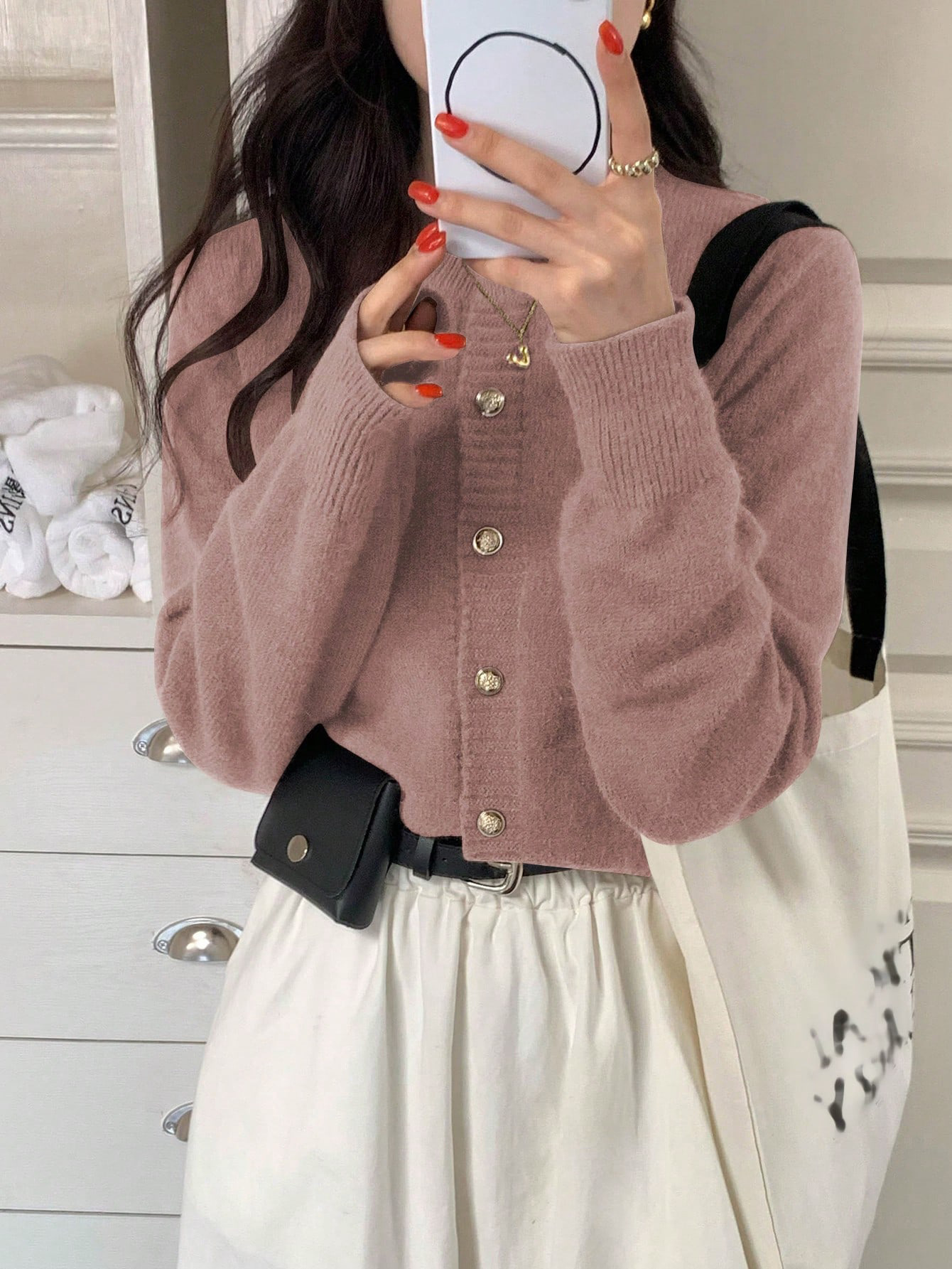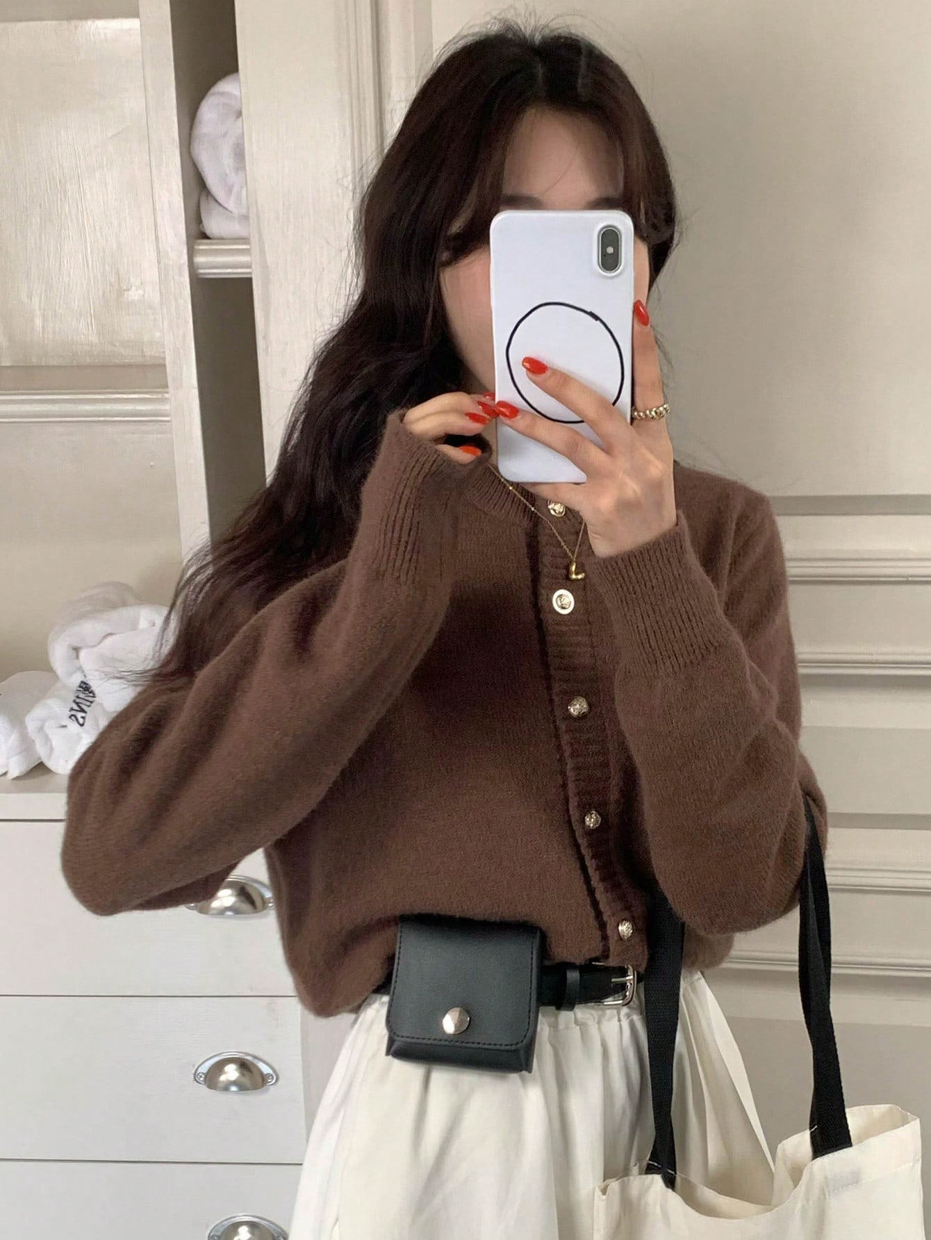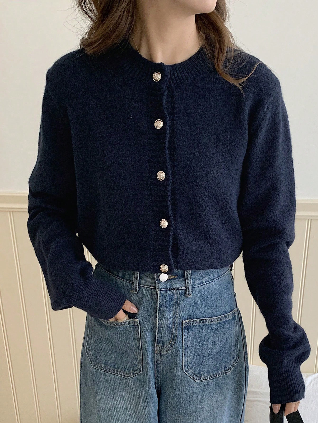 한국식 틈새 세련된 단색 카디건 금속 버클 내부 라운드 넥 따뜻한 니트웨어 스웨터 작은 코트 여성스토어 가기