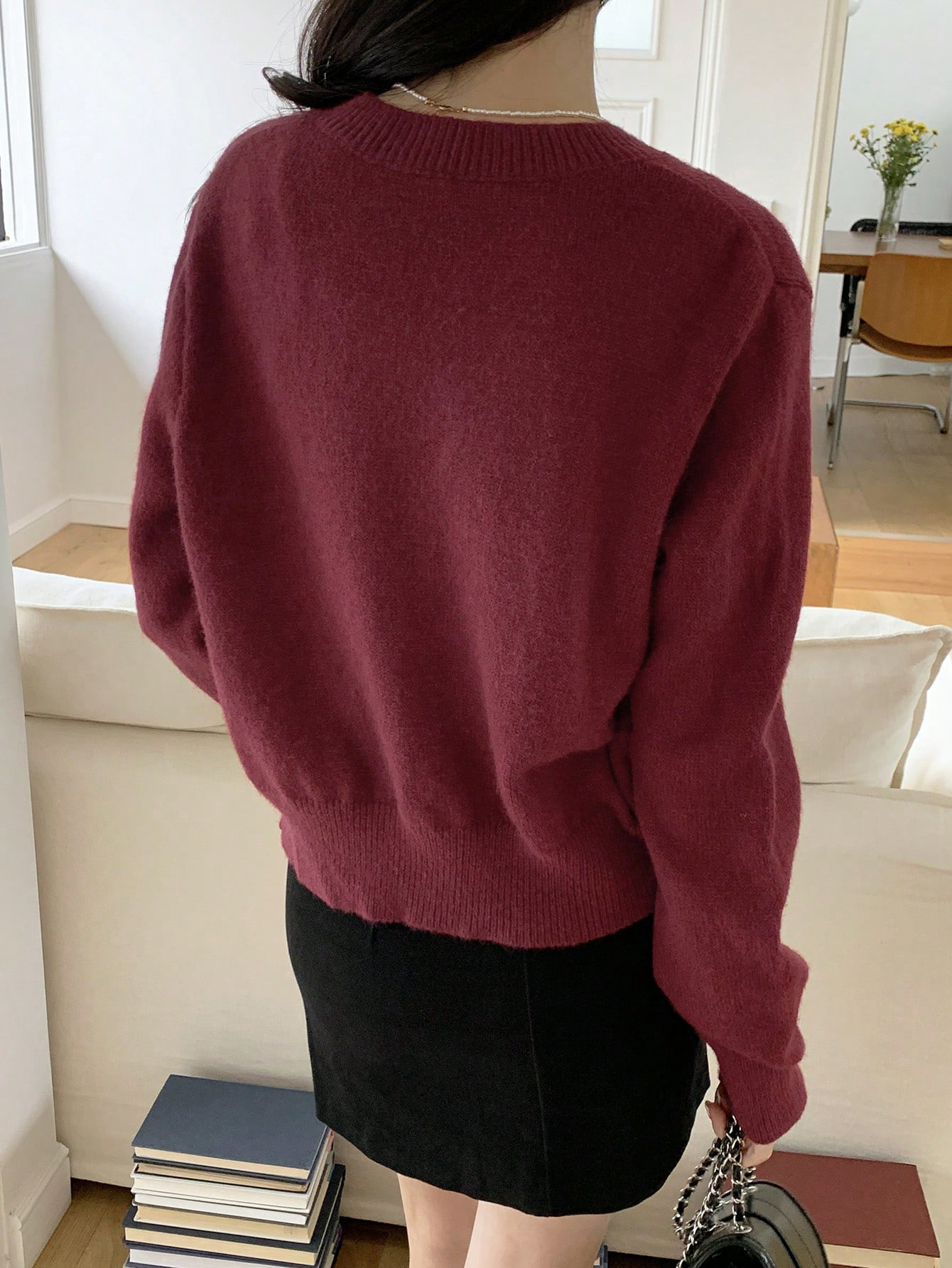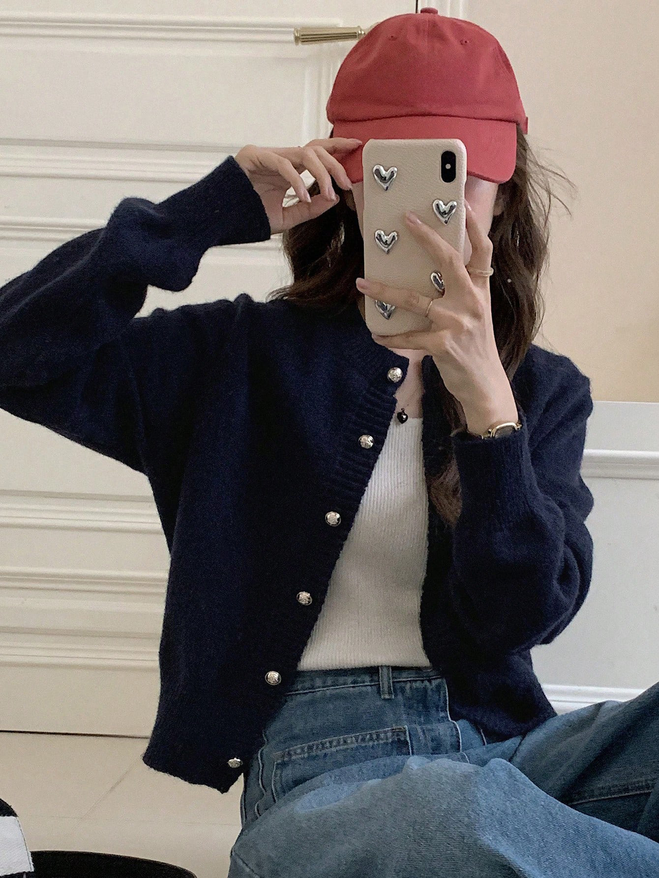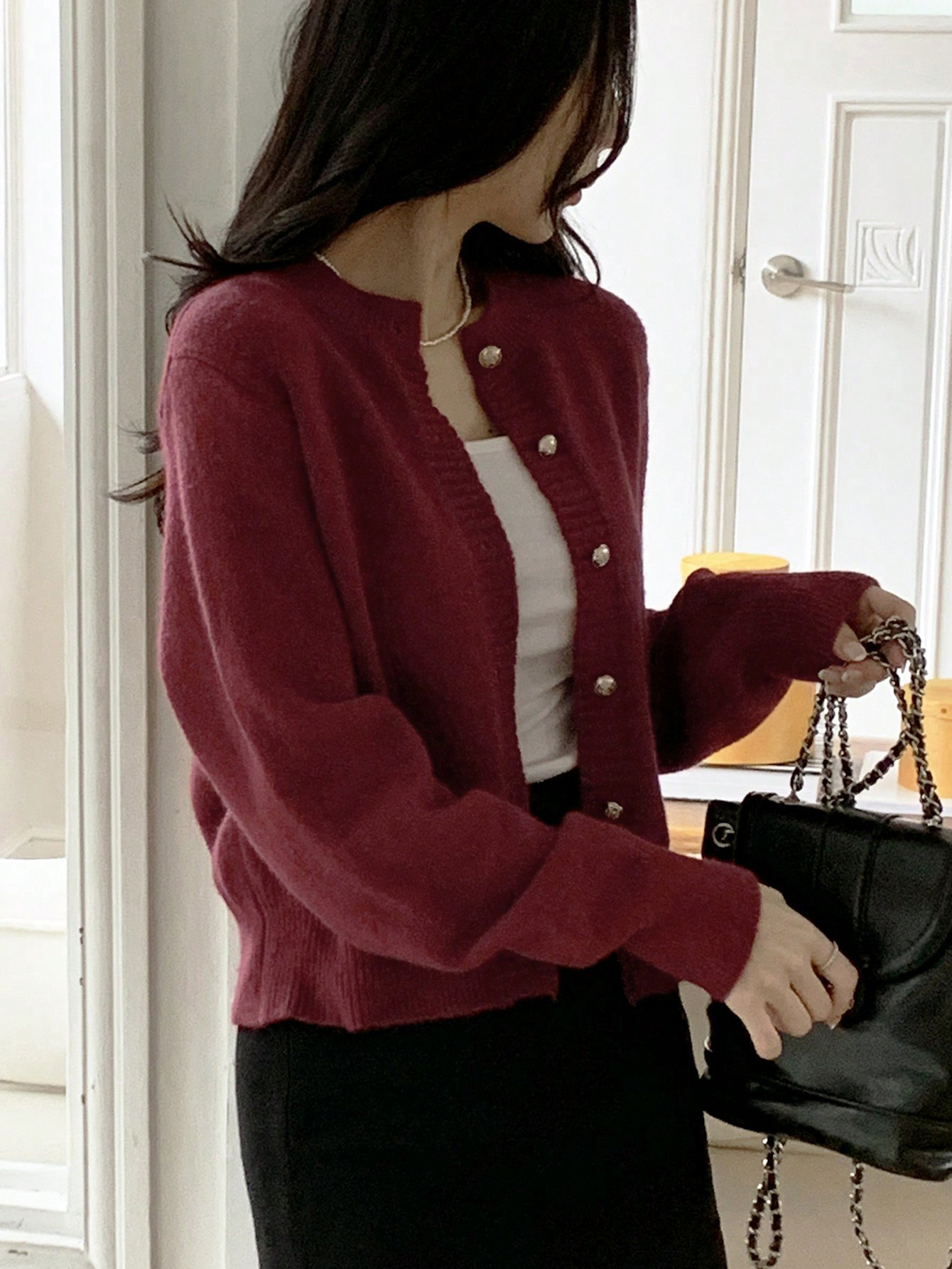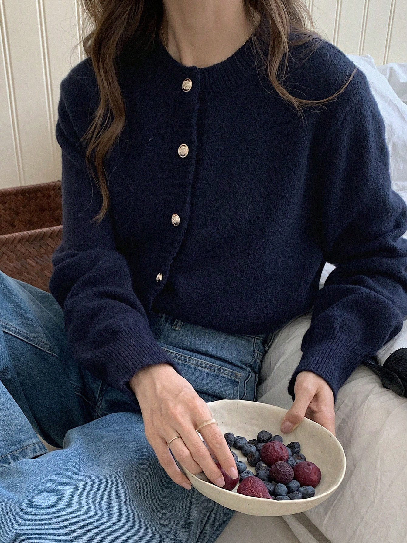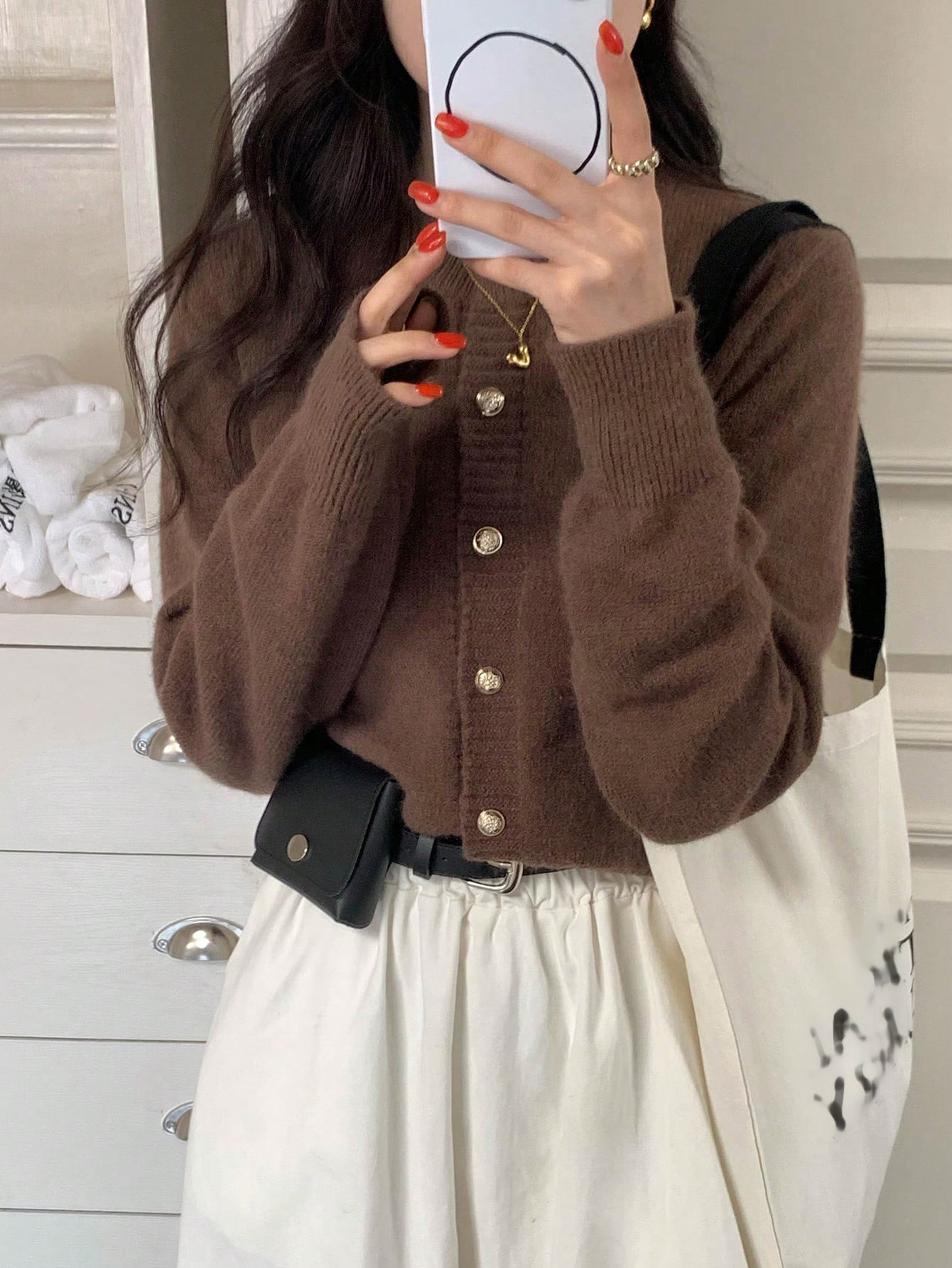 한국식 틈새 세련된 단색 카디건 금속 버클 내부 라운드 넥 따뜻한 니트웨어 스웨터 작은 코트 여성스토어 가기
