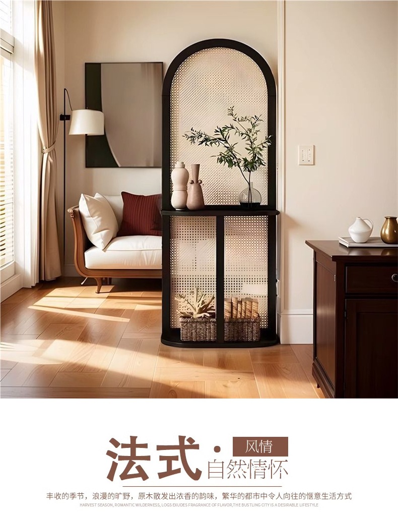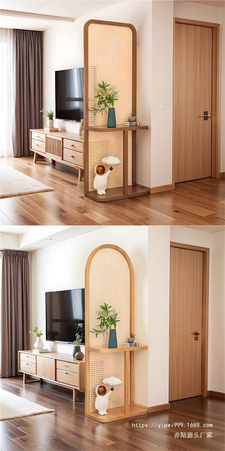 레트로 등나무 스크린 파티션, 거실 입구, 이동식 원목 좌석 스크린, 와비사비 스타일의 꽃꽂이 선반