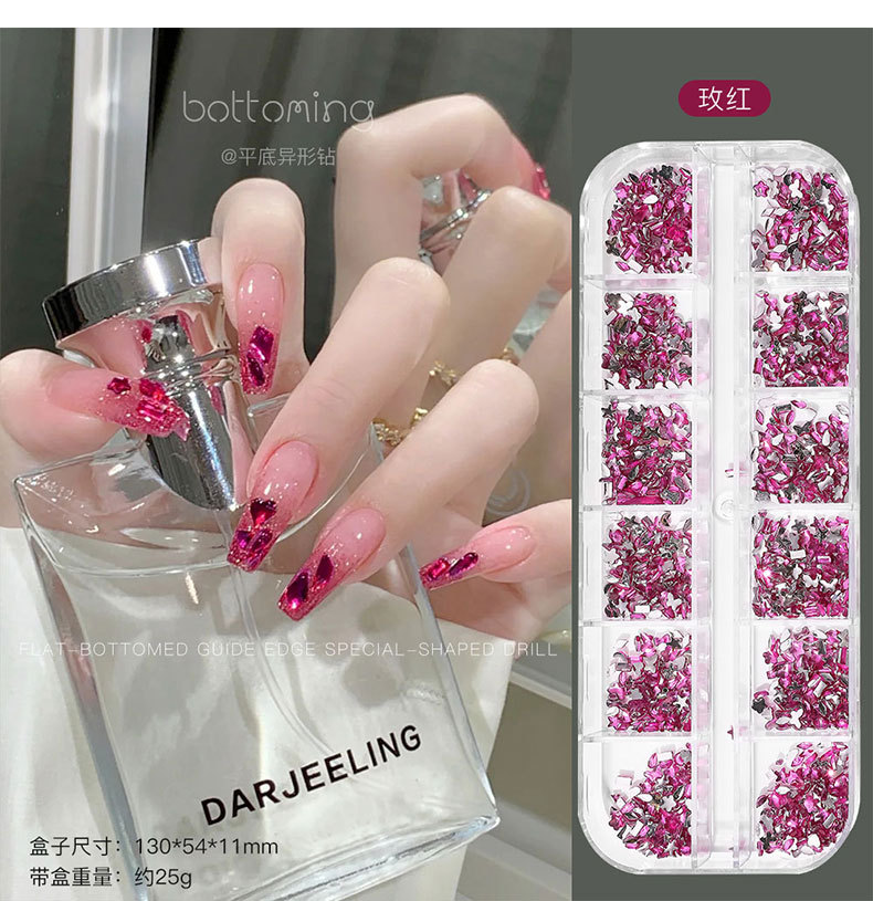 • 12 그리드 로즈 핑크 플랫 바닥 특수 모양의 다이아몬드#08