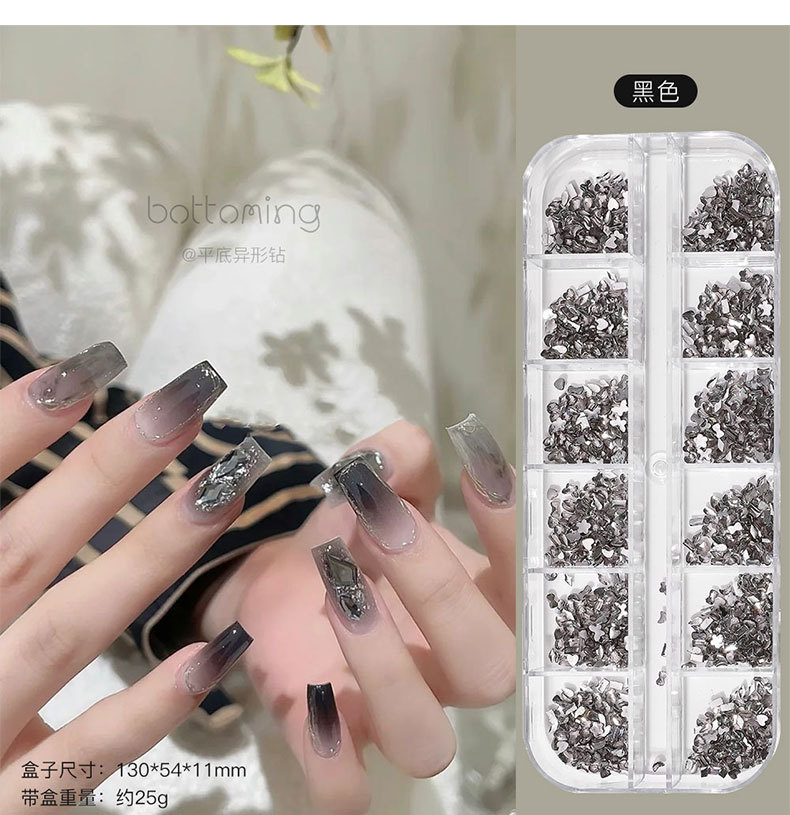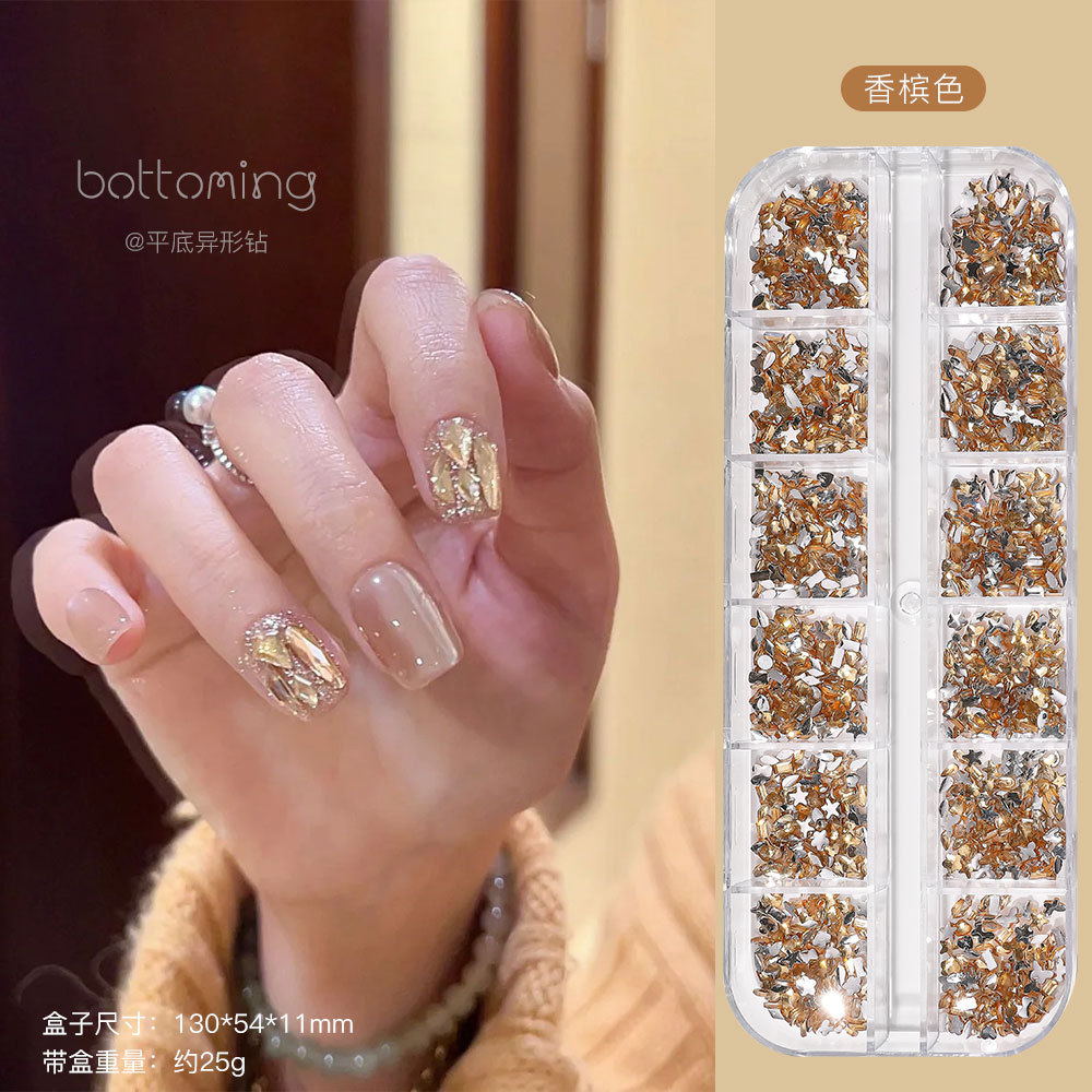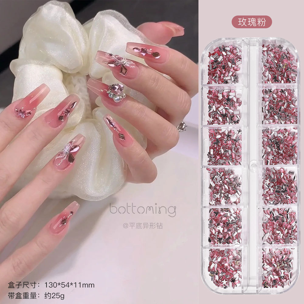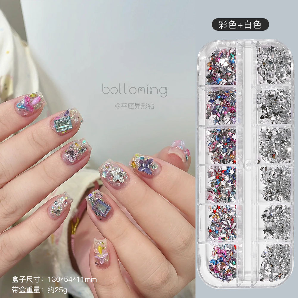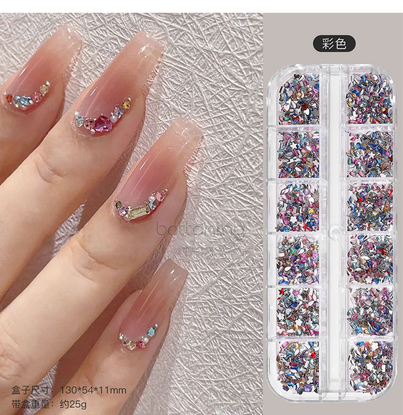 미니 12 그리드 모양의 다이아몬드 네일 쥬얼리 플래시 혼합 컬러 말 눈 별 평면 하단 다이아몬드 네일 장식 도매스토어 가기