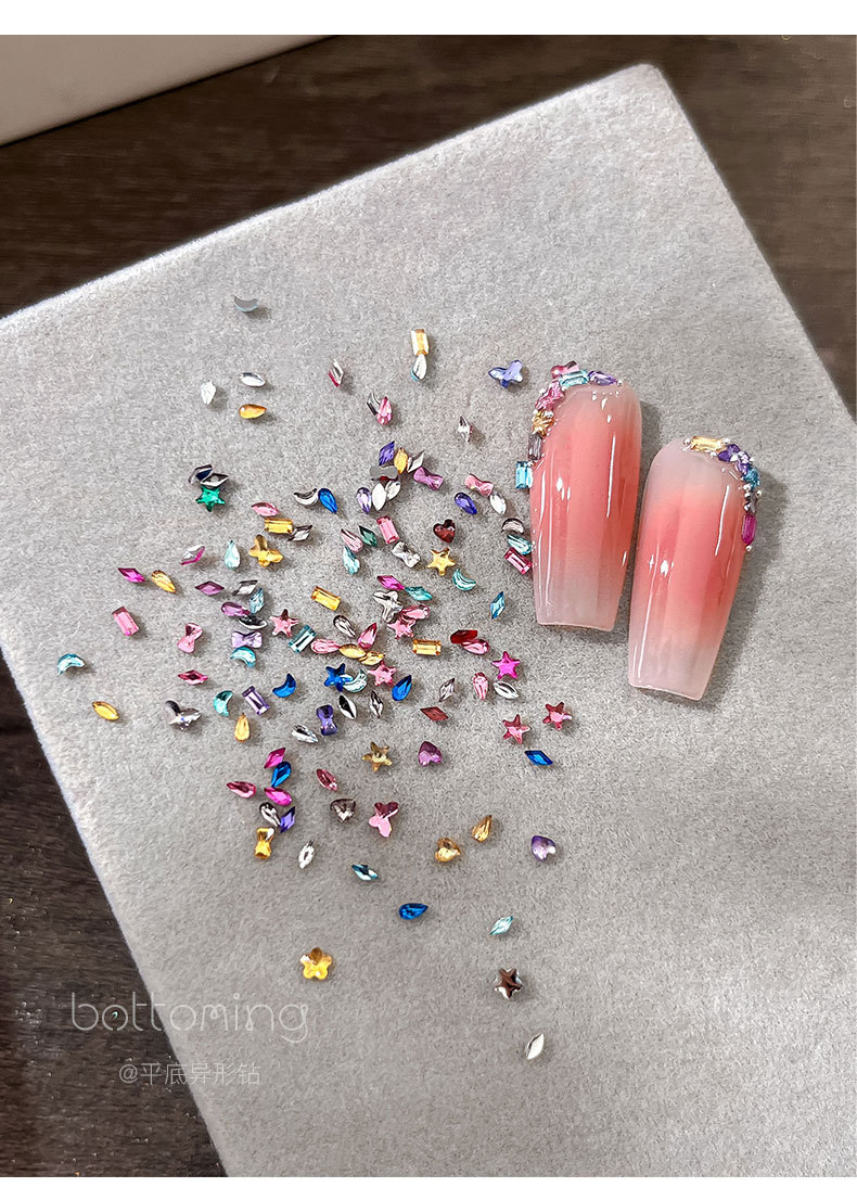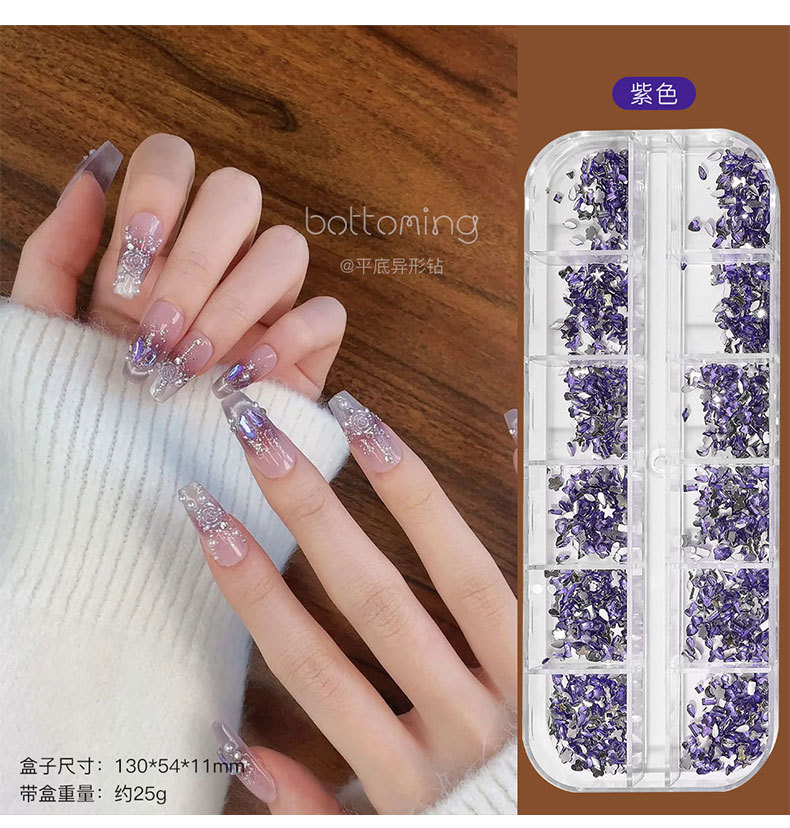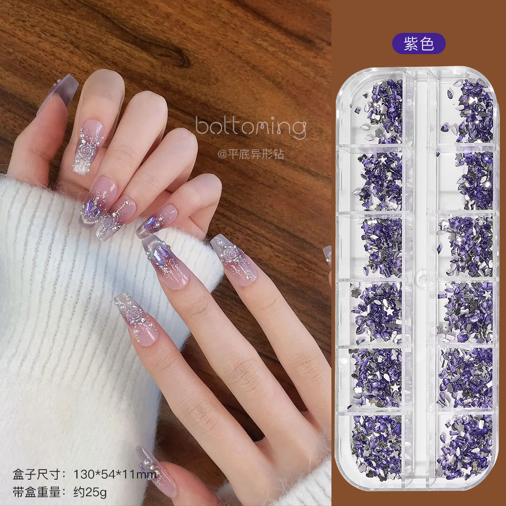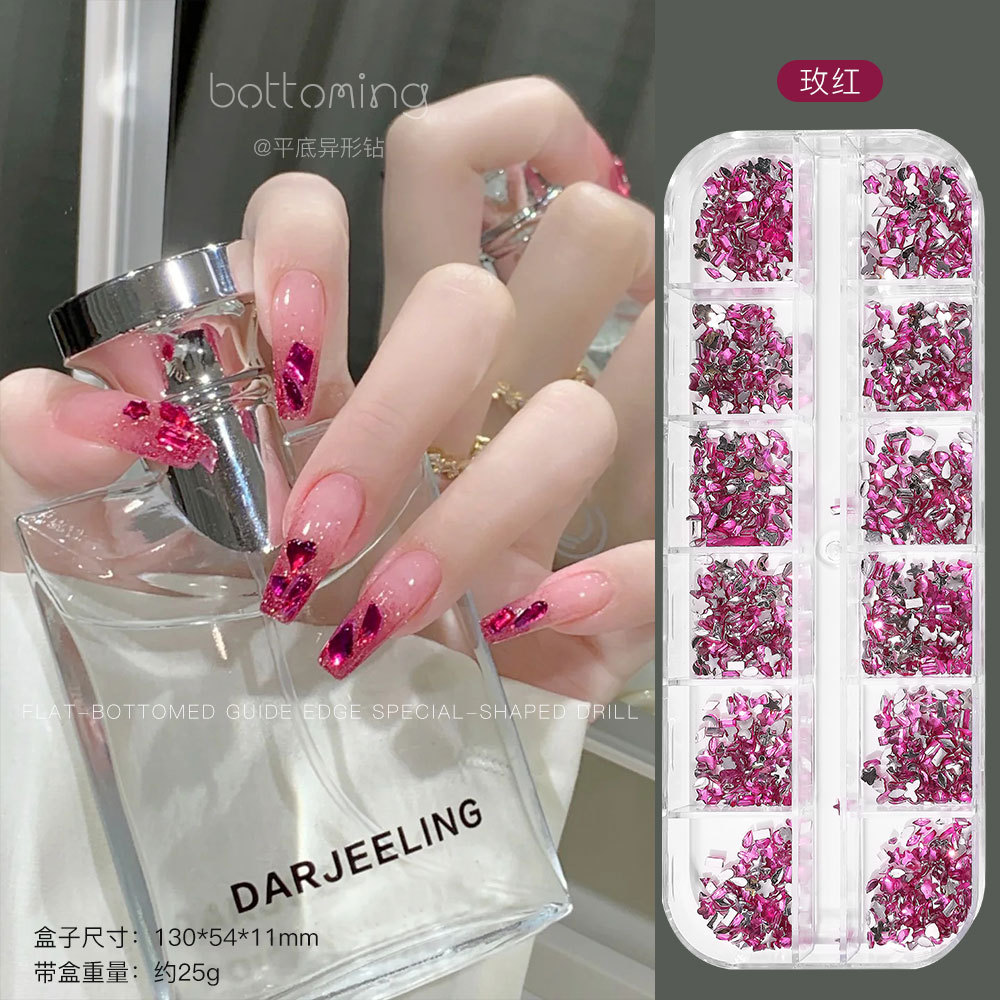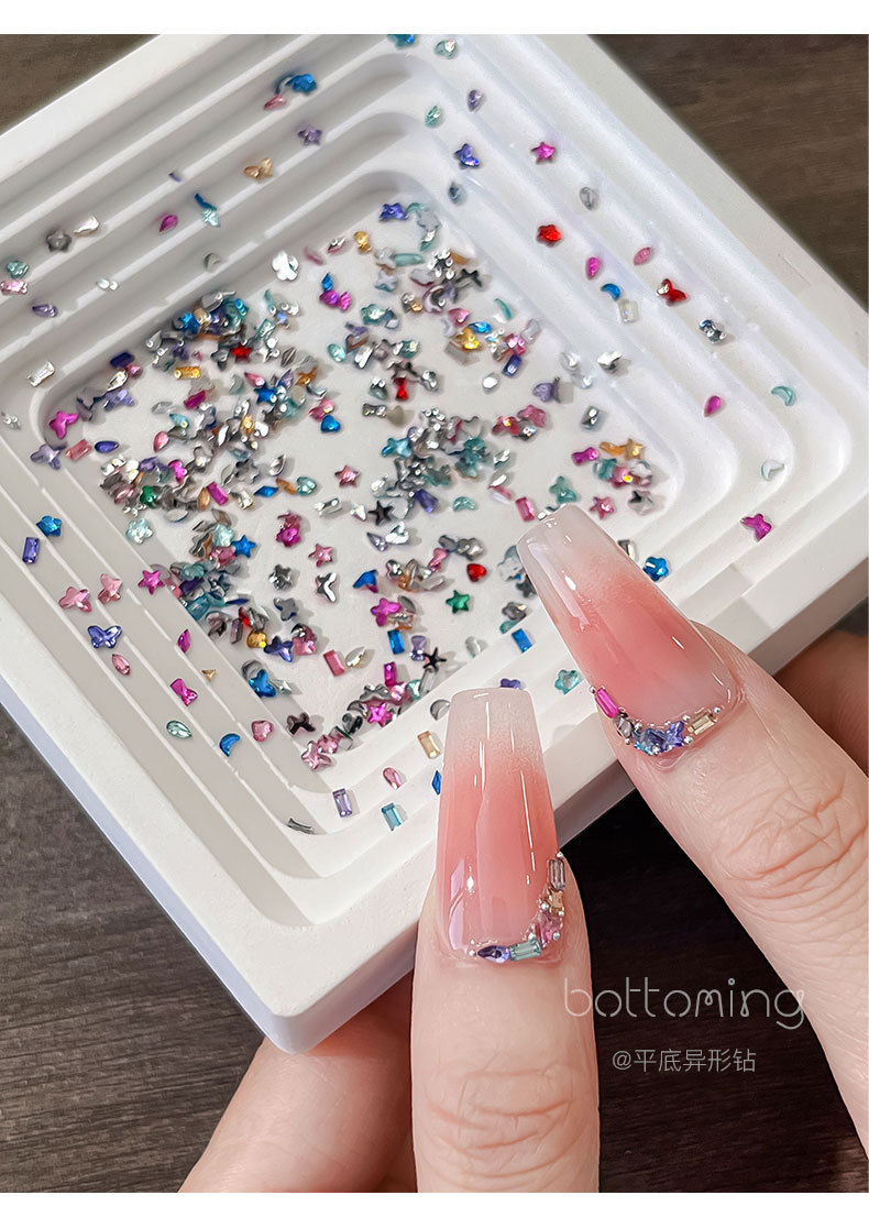 미니 12 그리드 모양의 다이아몬드 네일 쥬얼리 플래시 혼합 컬러 말 눈 별 평면 하단 다이아몬드 네일 장식 도매스토어 가기