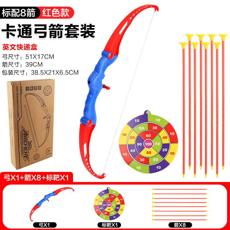 | 【高配】弓箭套装 | 英文快递盒 | 弓x1、箭x8、挂靶x1 背式箭筒 | 橙色、红色、绿色 | 弓:51x17cm 箭:39cm 挂靶:19.5x20.5cm 箭筒:32x8cm | 38.5x21x6.5cm | ||