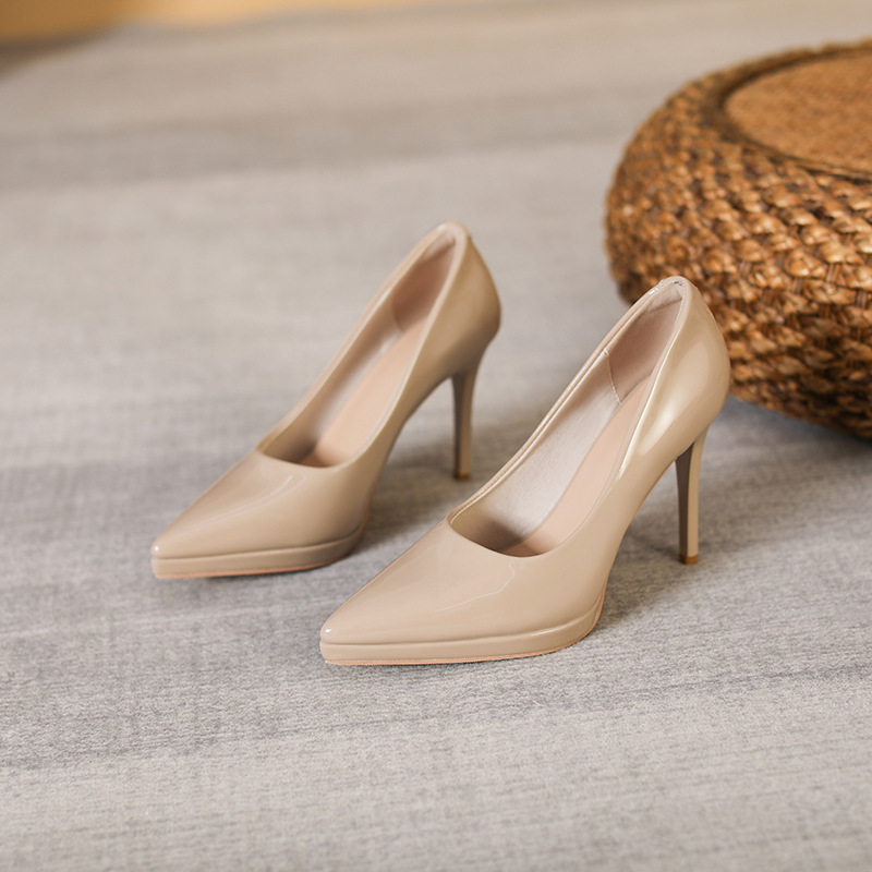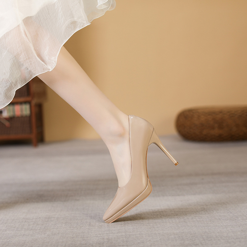 방수 플랫폼 얇은 굽 하이힐 뾰족코 다용도 얕은 구두 여성용 페이턴트 가죽 섹시한 여성화 봄 가을 신상스토어 가기