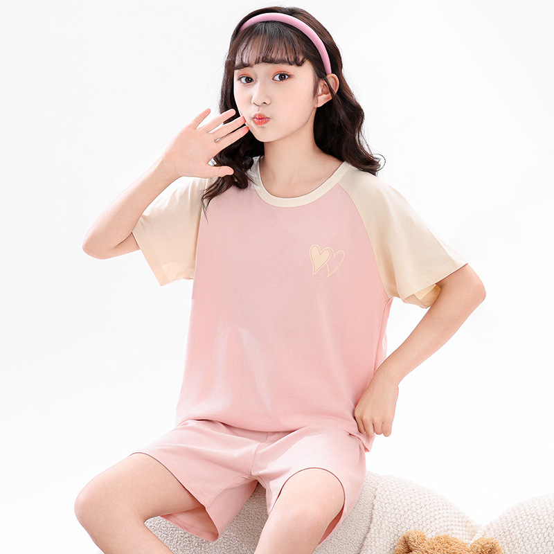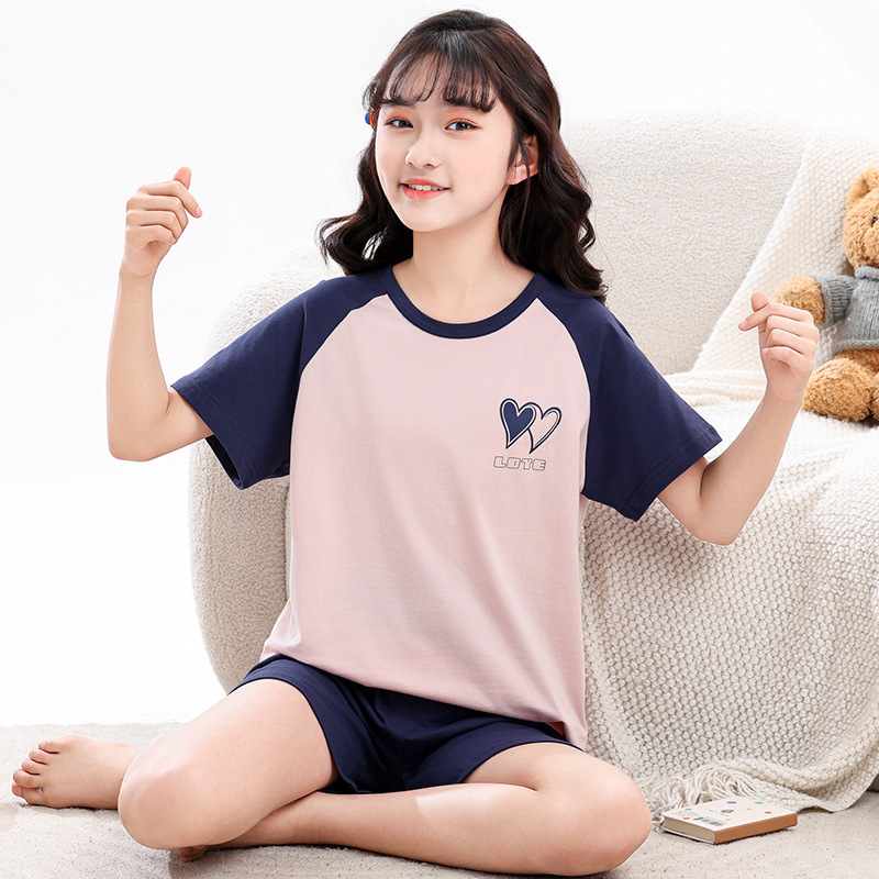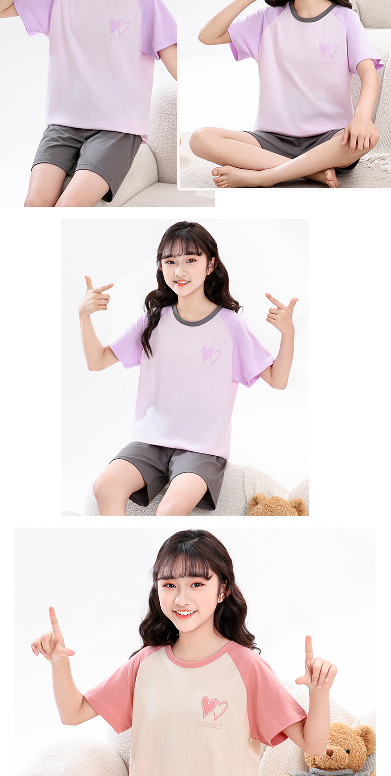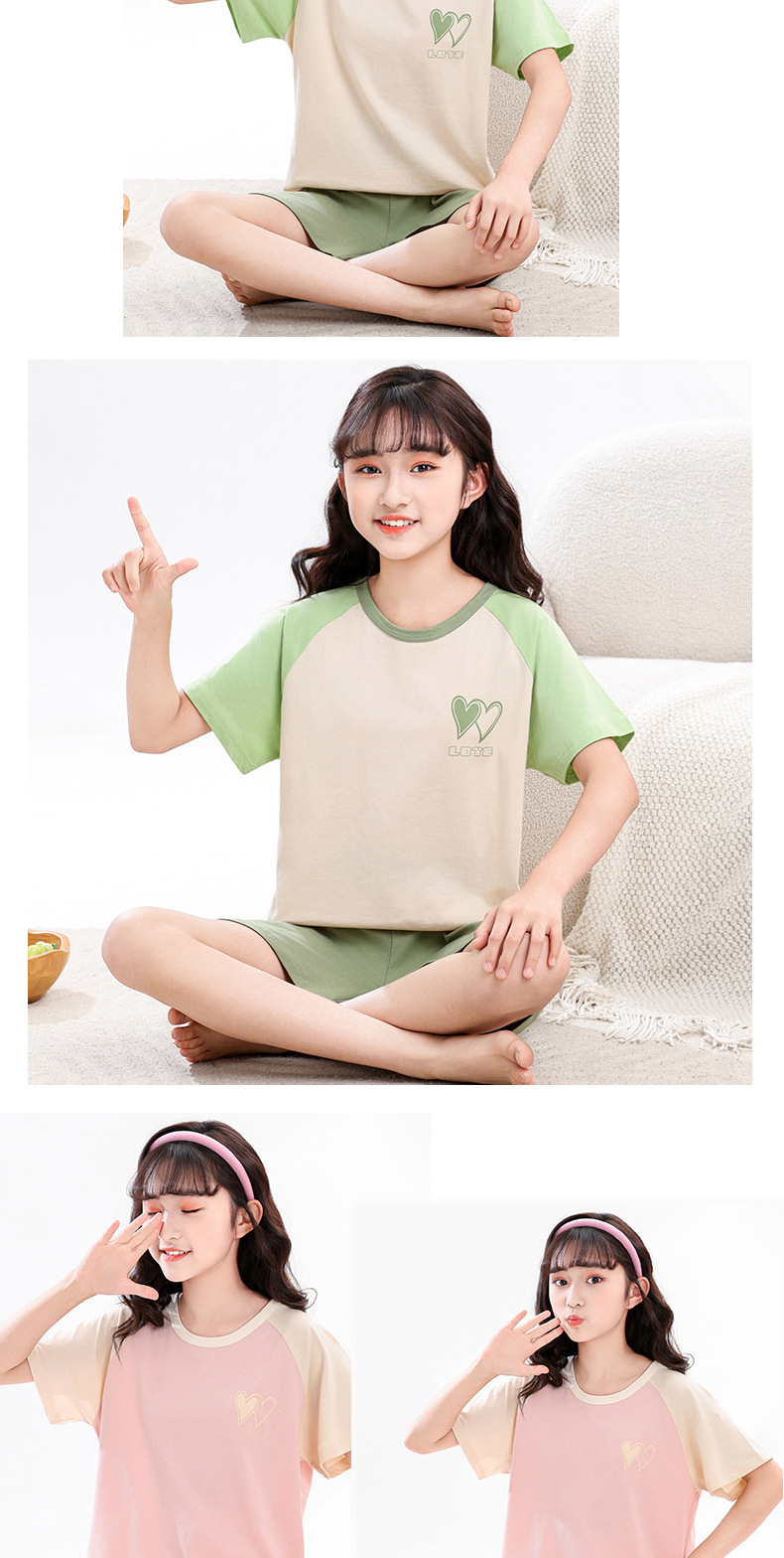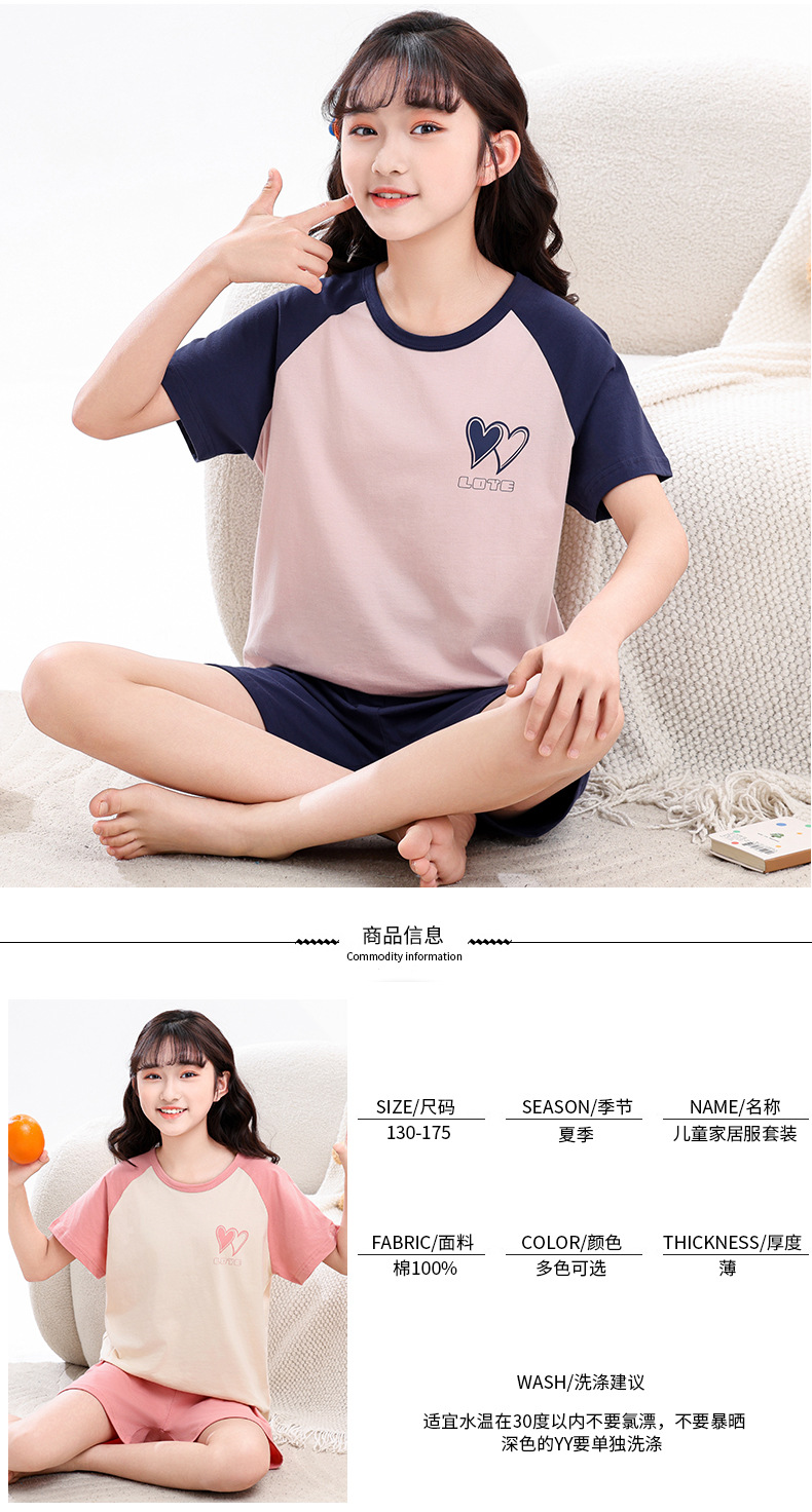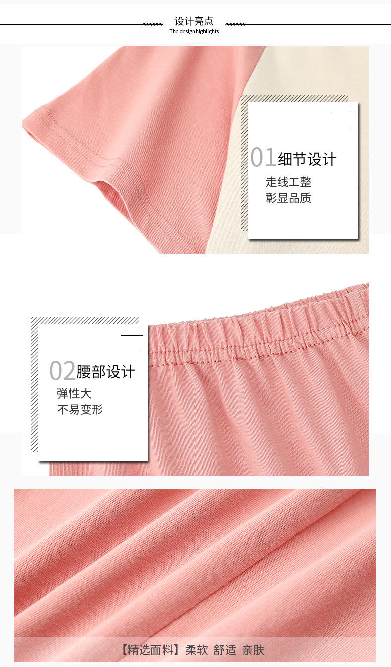 아동 잠옷 세트, 여아 가정복, 순면 아동 반팔 아기 얇은 여아 에어컨 옷, 공주 여름