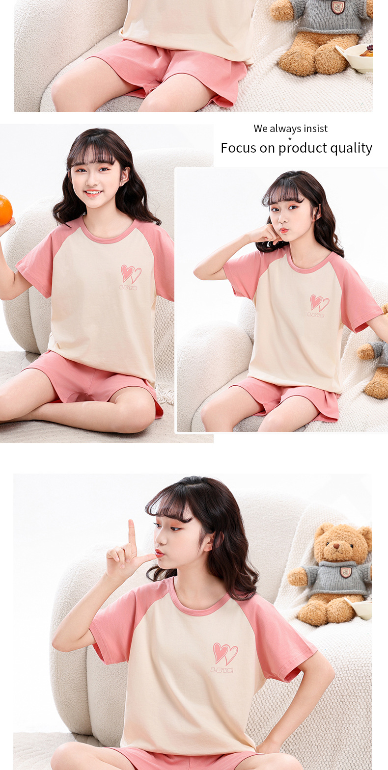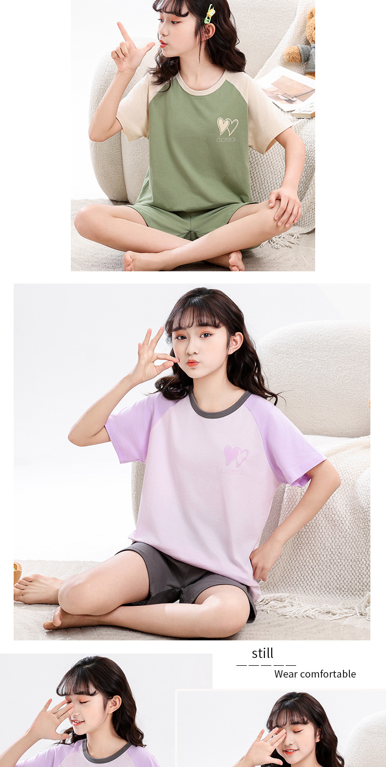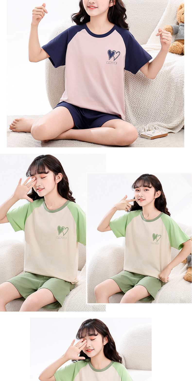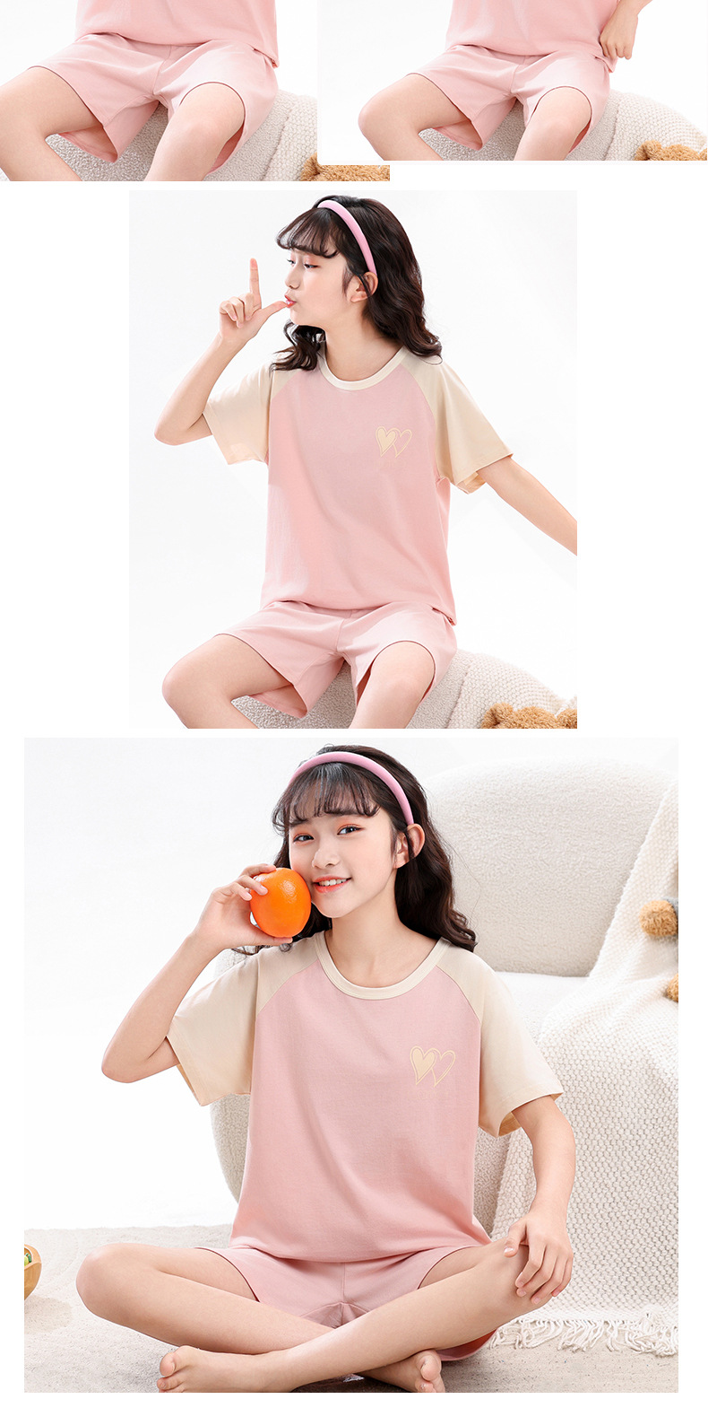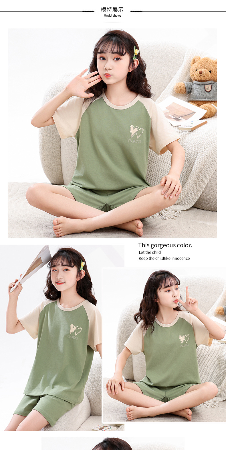 아동 잠옷 세트, 여아 가정복, 순면 아동 반팔 아기 얇은 여아 에어컨 옷, 공주 여름