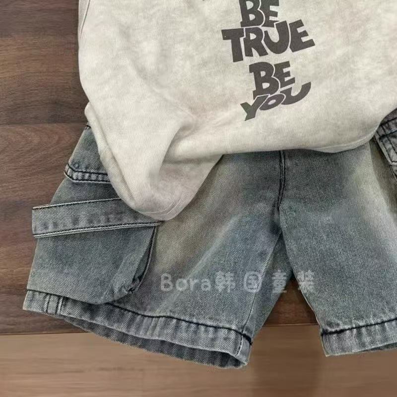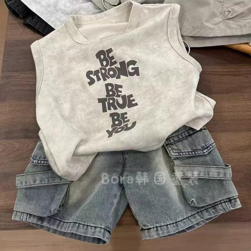 소년 한국 여름 정장 2025 새로운 조끼 민소매 데님 어린이 인기 반바지 여름 투피스 트렌디 세트