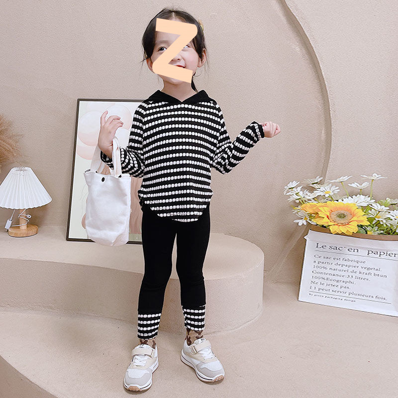 2025 새로운 소녀 가을 세트 격자 무늬 스트라이프 스웨터 레깅스면 봄과 가을 어린이 옷 2스토어 가기