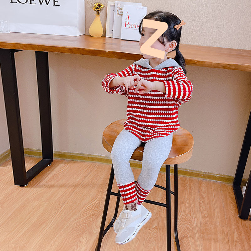 2025 새로운 소녀 가을 세트 격자 무늬 스트라이프 스웨터 레깅스면 봄과 가을 어린이 옷 2