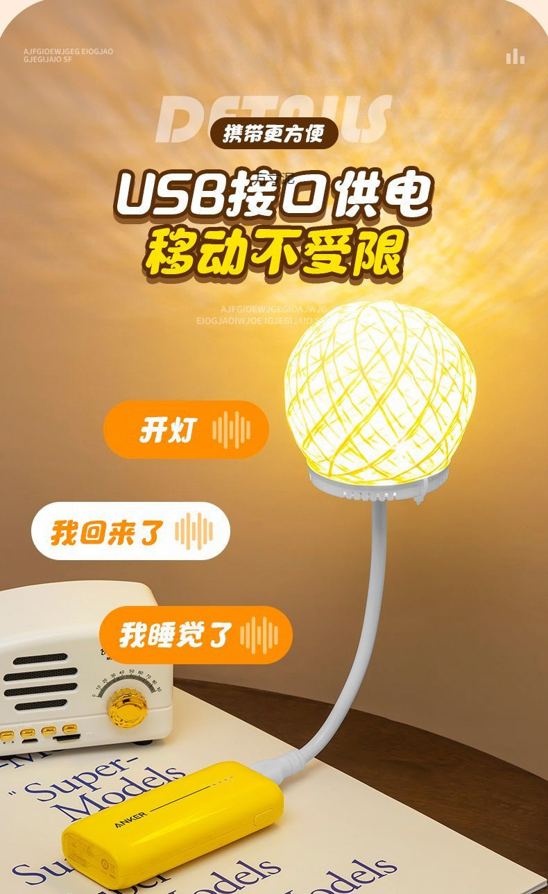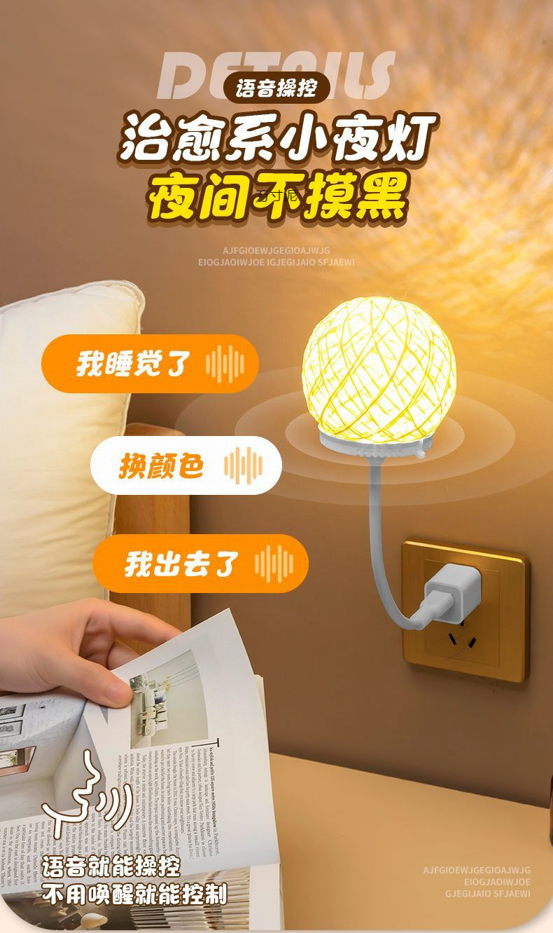 가정용 음성 제어 야간 조명 아기 음성 스마트 침대 옆 USB 노인 야간 조명 작은 램프 ins 어린이 보호 도매