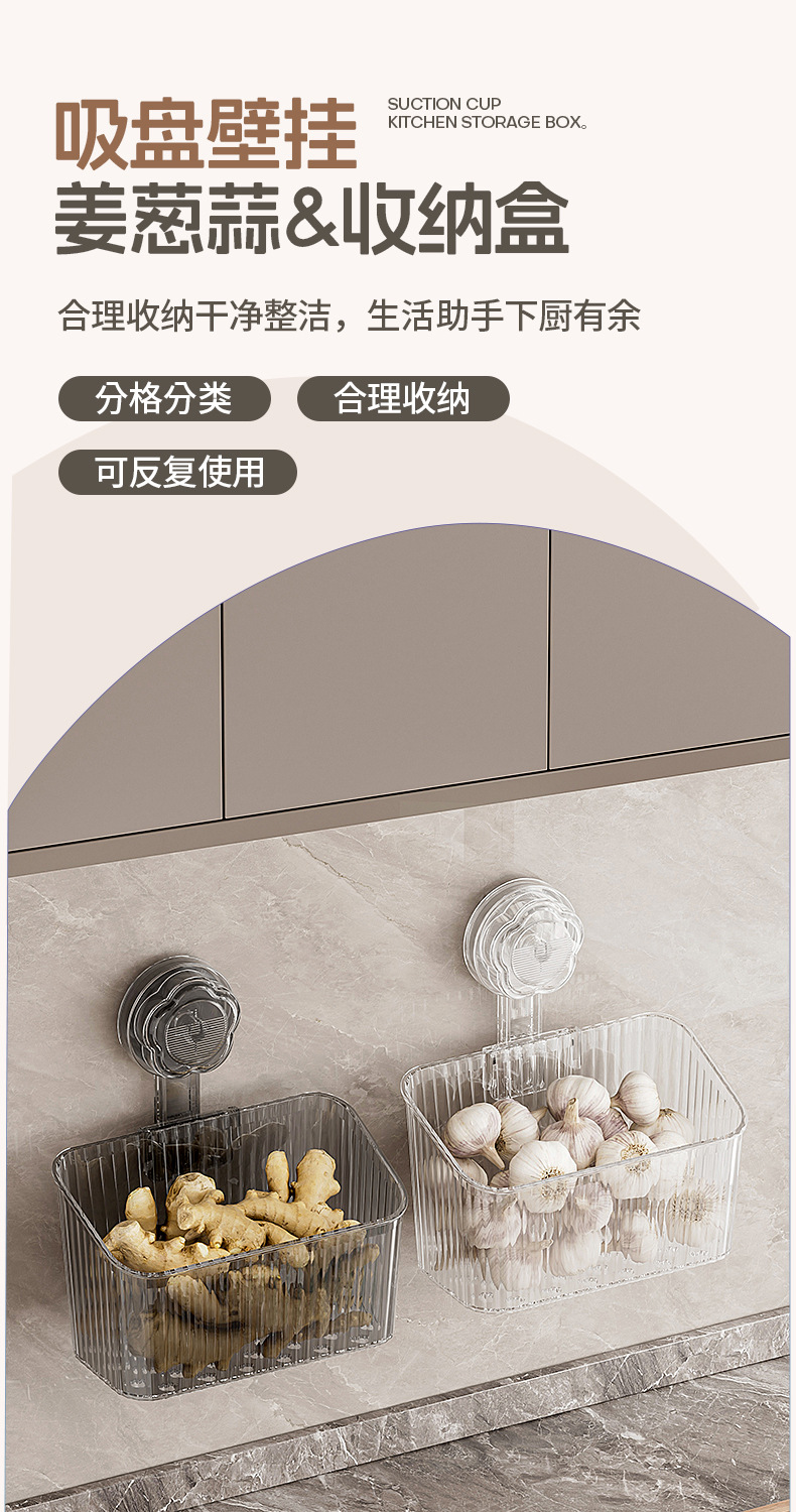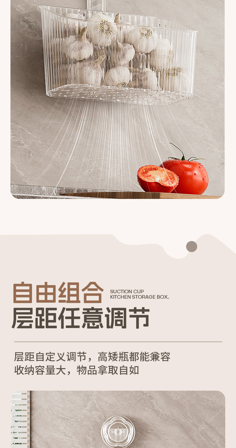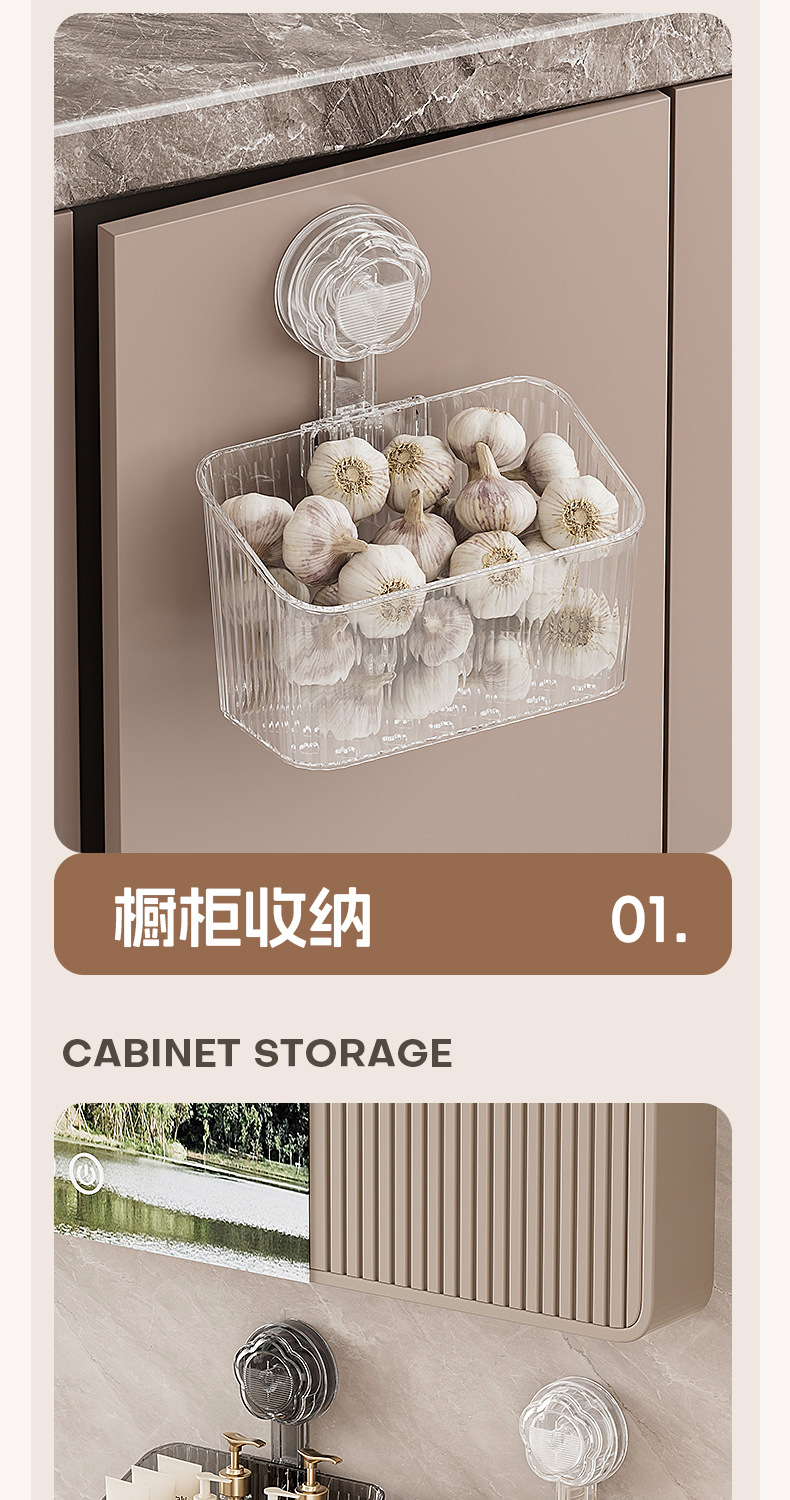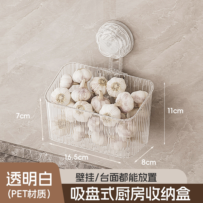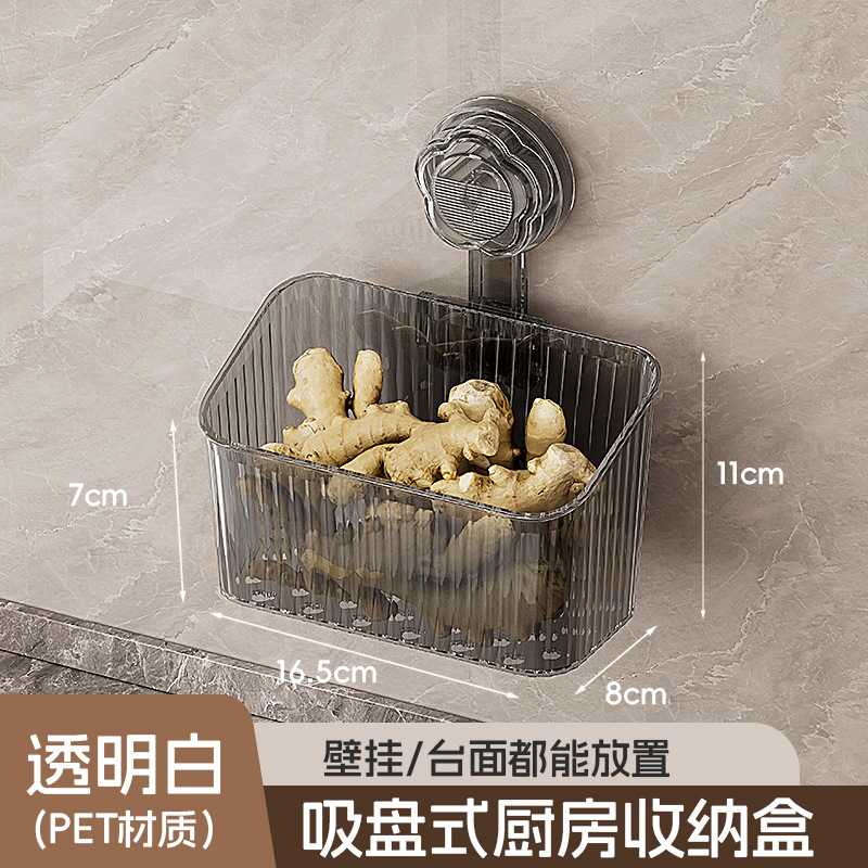 주방 빨판 벽걸이형 수납함 생강 마늘 물건 보관용 중공 배수구 다용도 펀치 없는 수납선반
