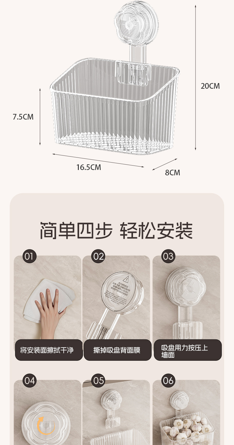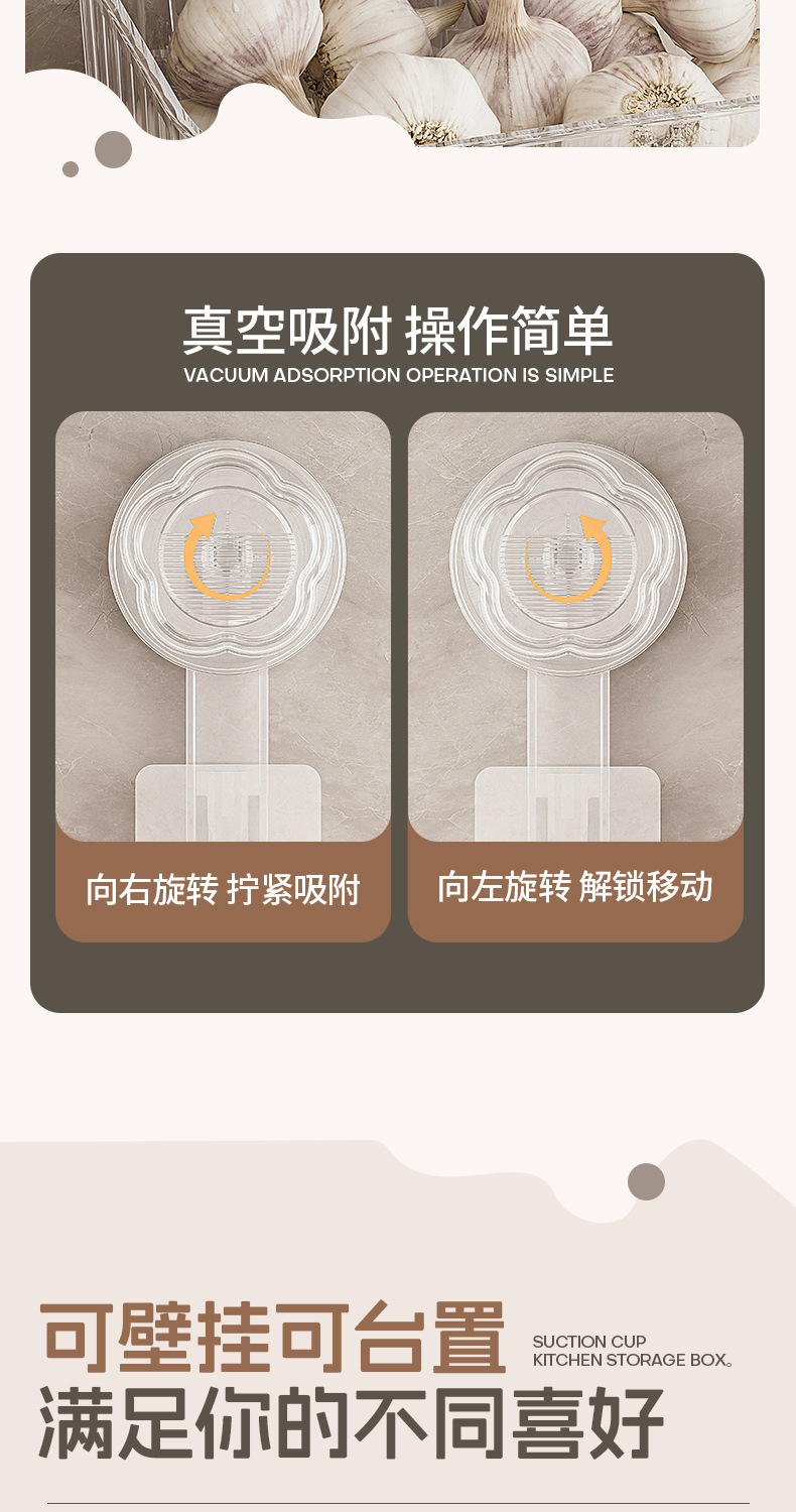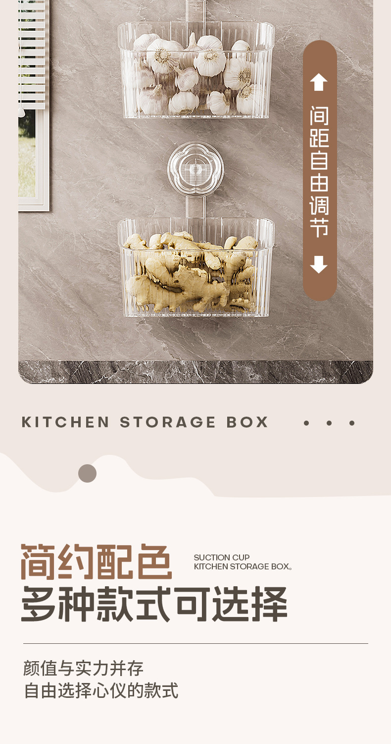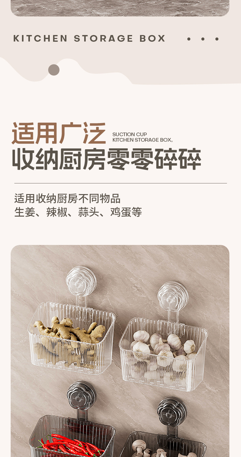 주방 빨판 벽걸이형 수납함 생강 마늘 물건 보관용 중공 배수구 다용도 펀치 없는 수납선반