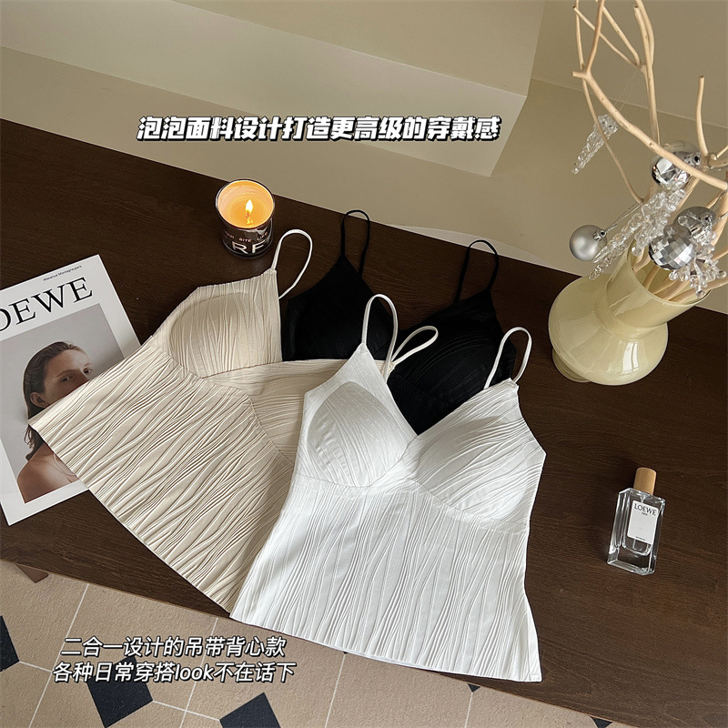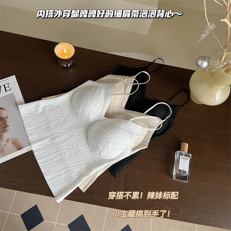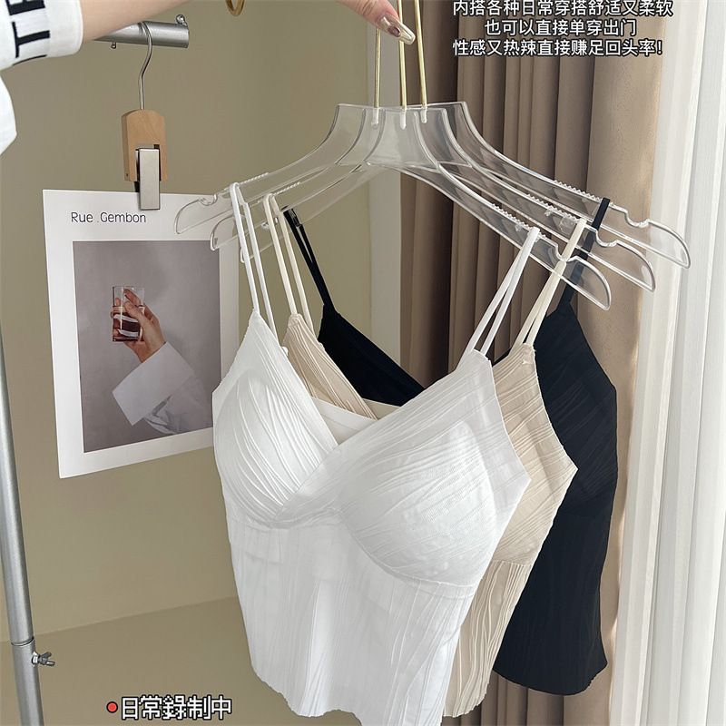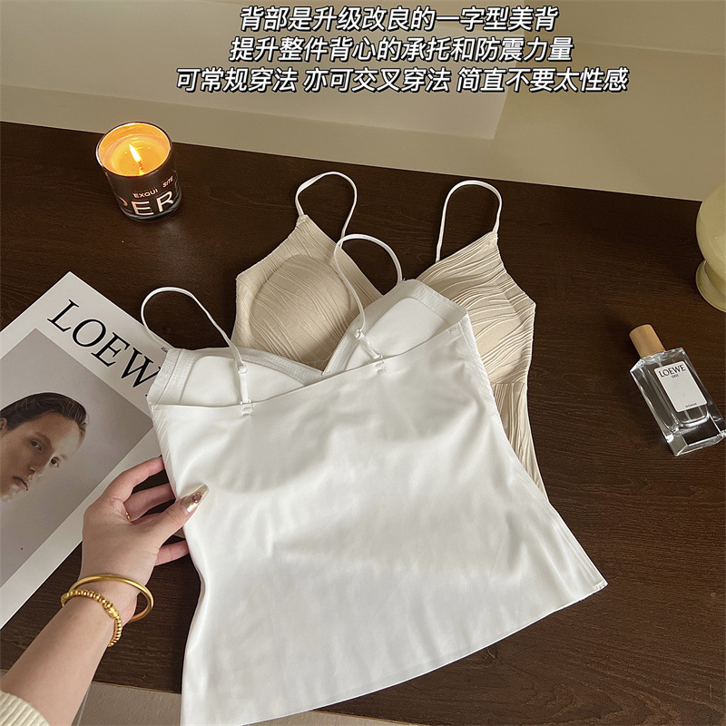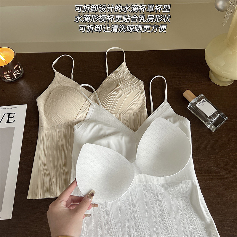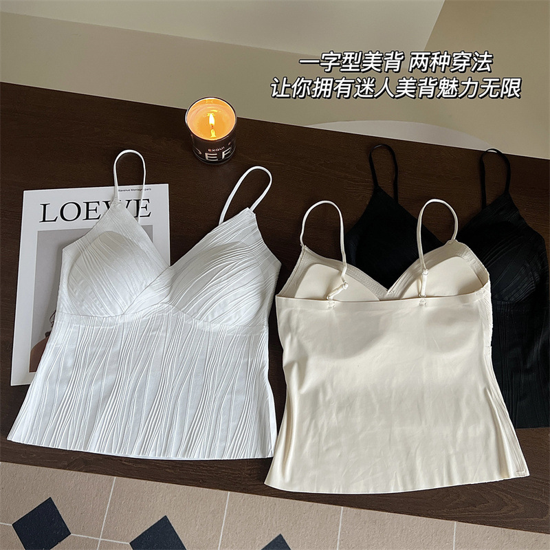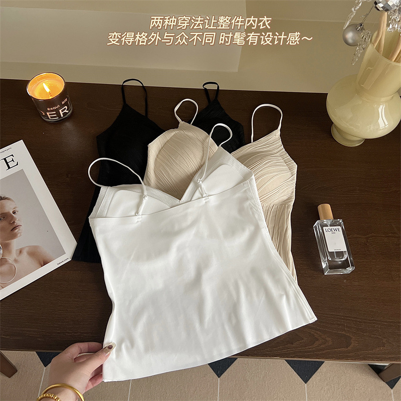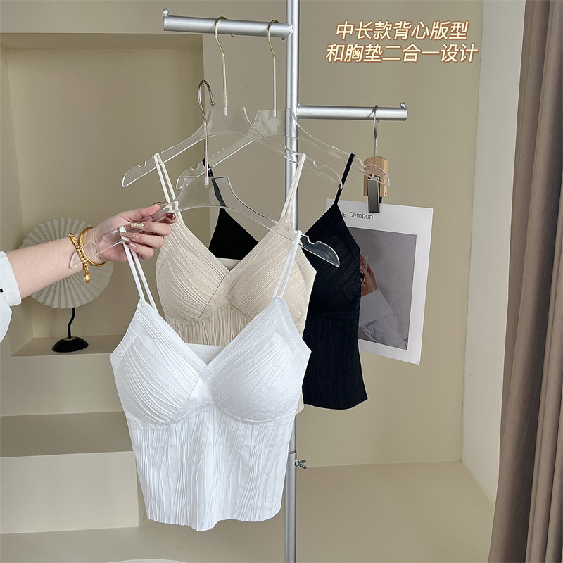 프렌치 플리츠 서스펜더 심리스 속옷, 여성스럽고 활용도가 높은 올인원 튜브탑, 가슴 패드가 있는 탑, 얇은 조끼스토어 가기