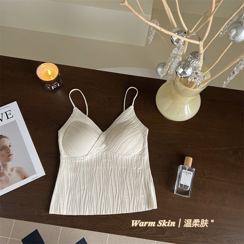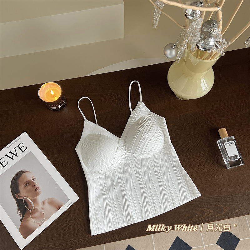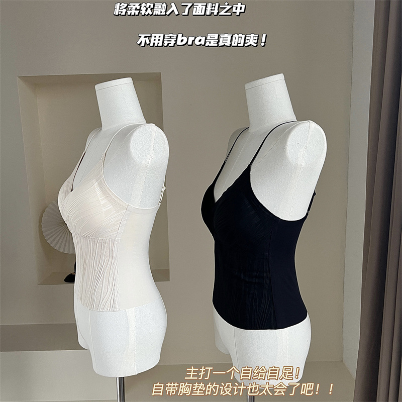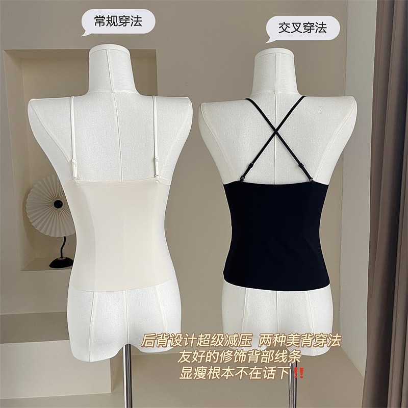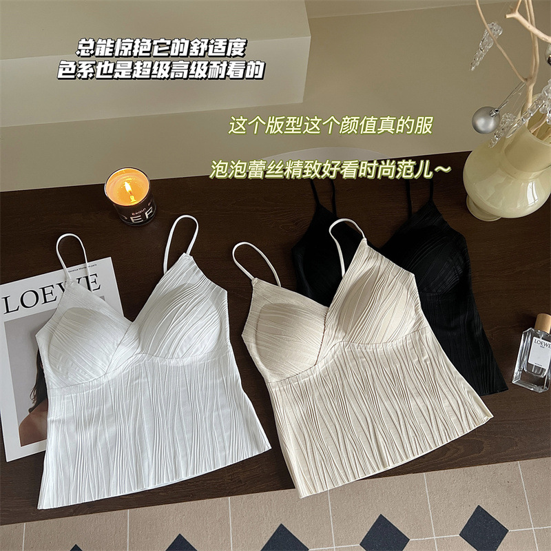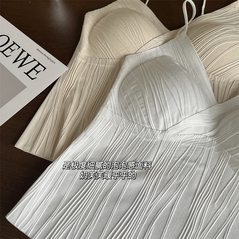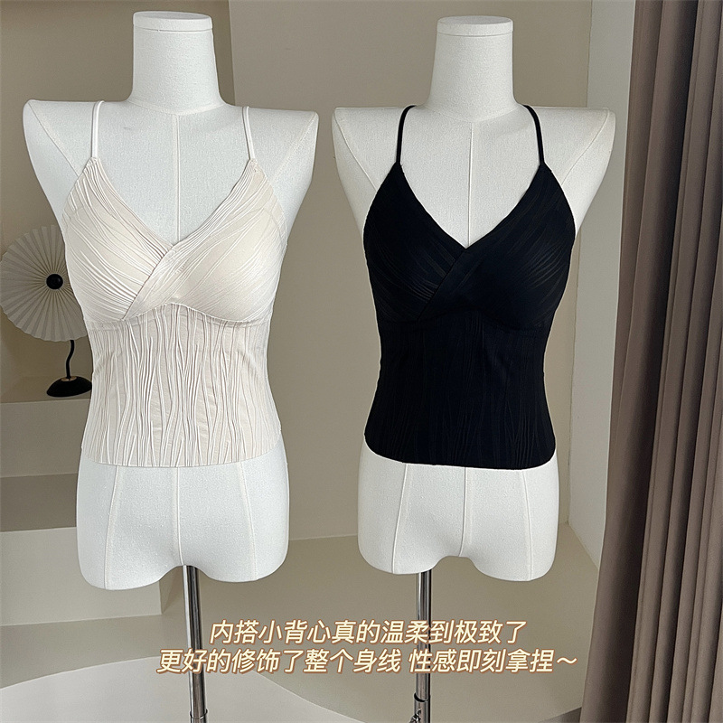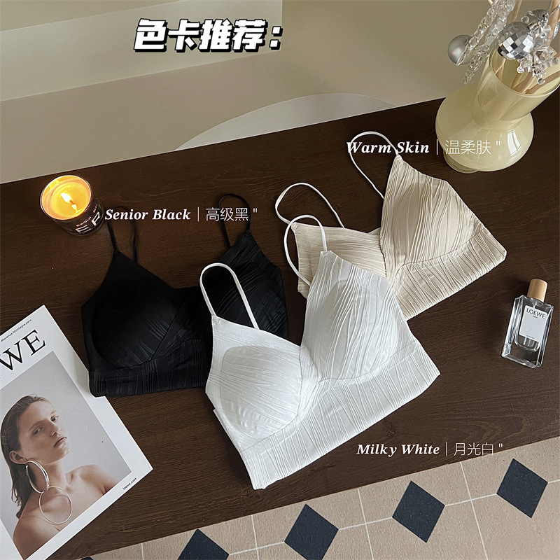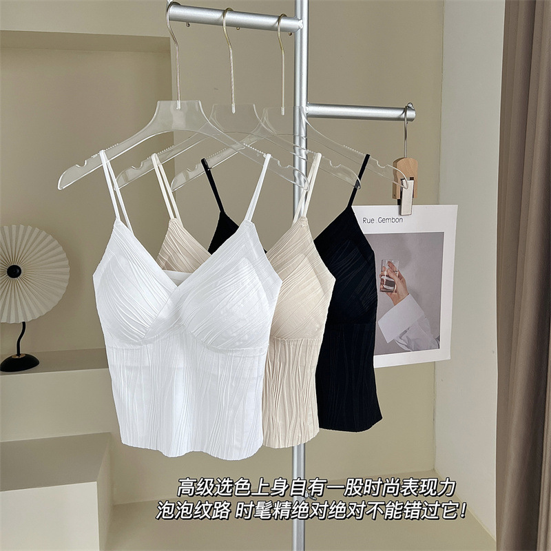 프렌치 플리츠 서스펜더 심리스 속옷, 여성스럽고 활용도가 높은 올인원 튜브탑, 가슴 패드가 있는 탑, 얇은 조끼스토어 가기