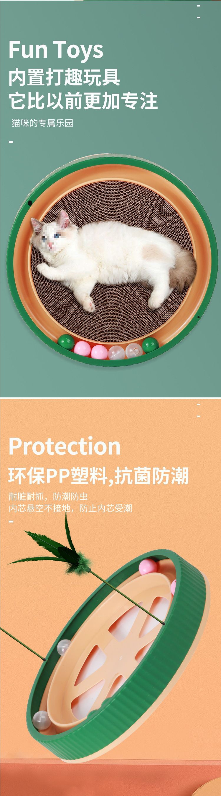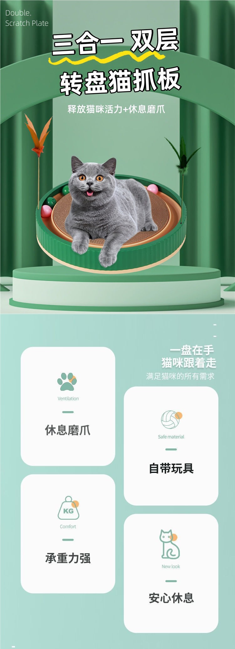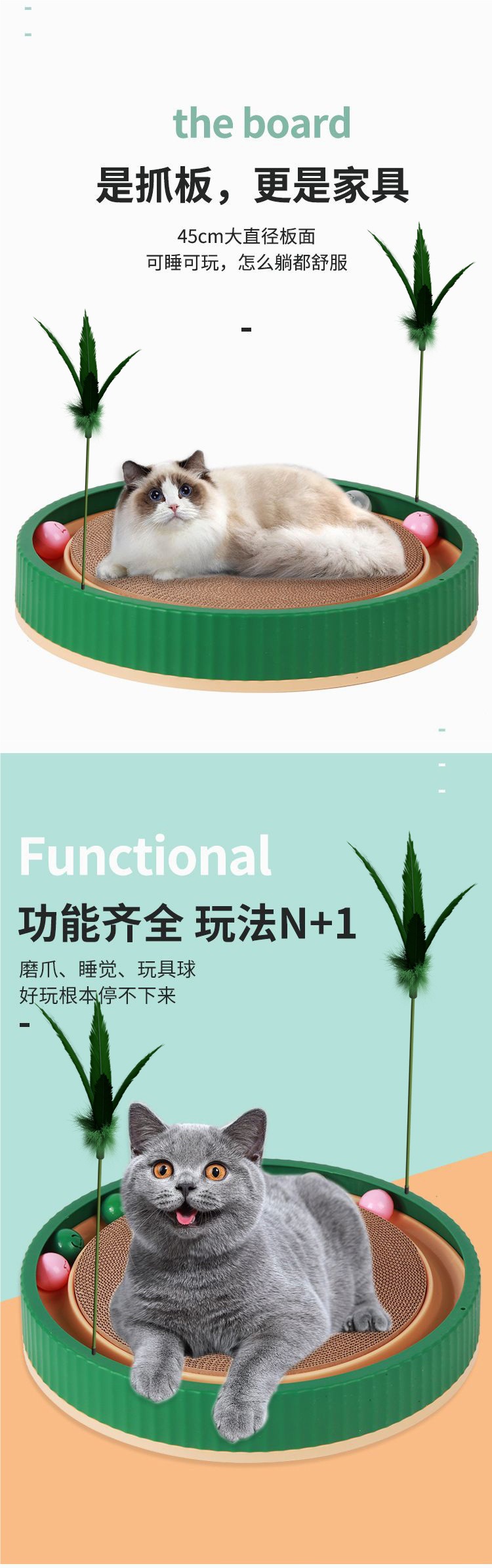 벨이 달린 고양이 스크래치 보드 고양이 장난감 둥근 내마모성 3-in-1 고양이 애완 동물 용품 긁힘 방지 및 탈착 가능