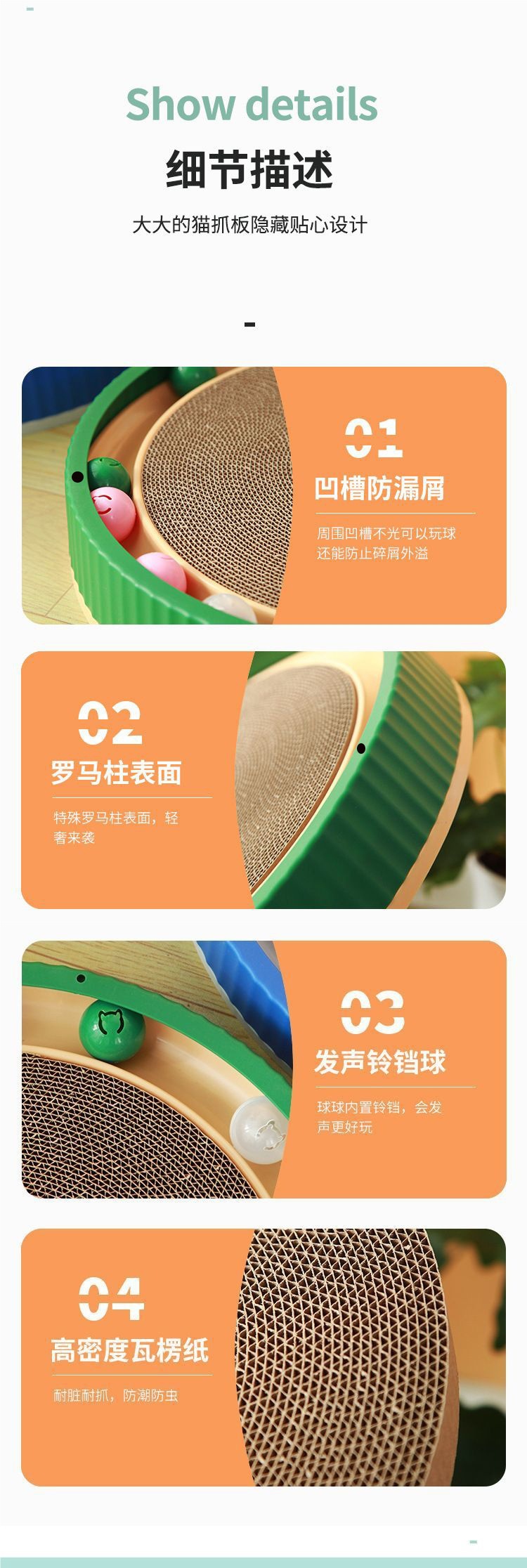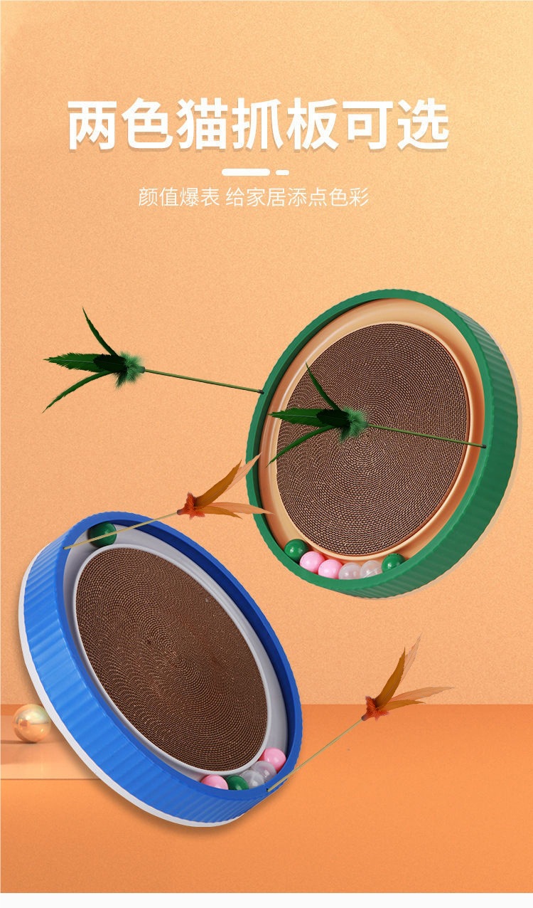 벨이 달린 고양이 스크래치 보드 고양이 장난감 둥근 내마모성 3-in-1 고양이 애완 동물 용품 긁힘 방지 및 탈착 가능스토어 가기