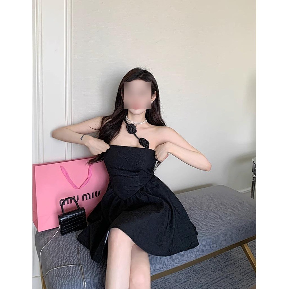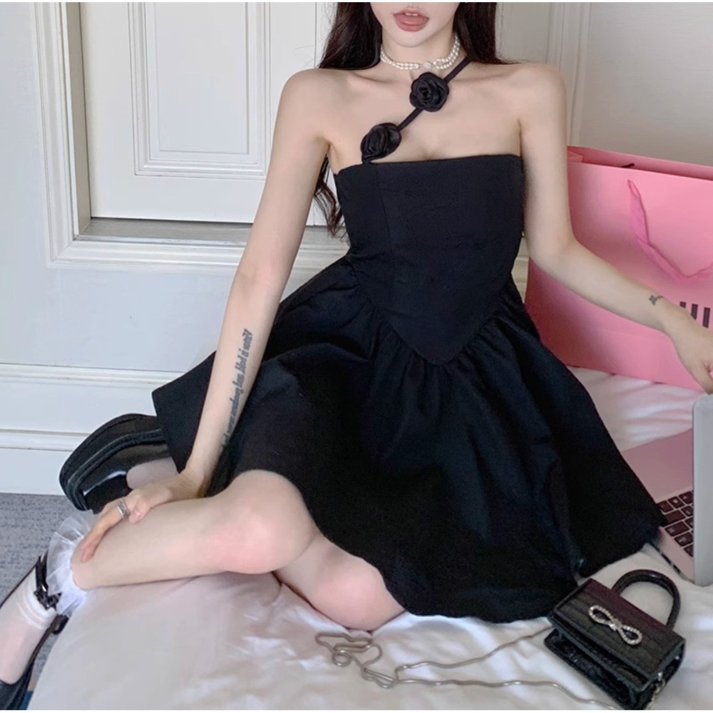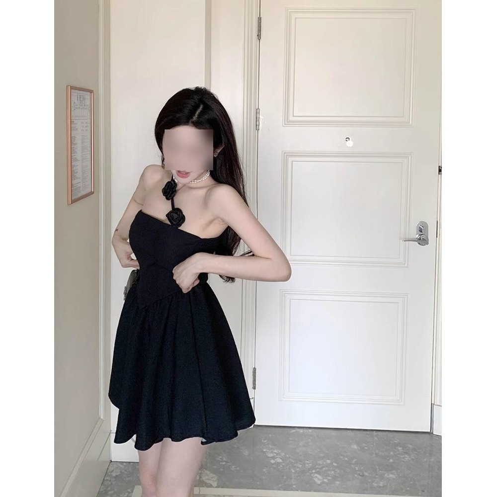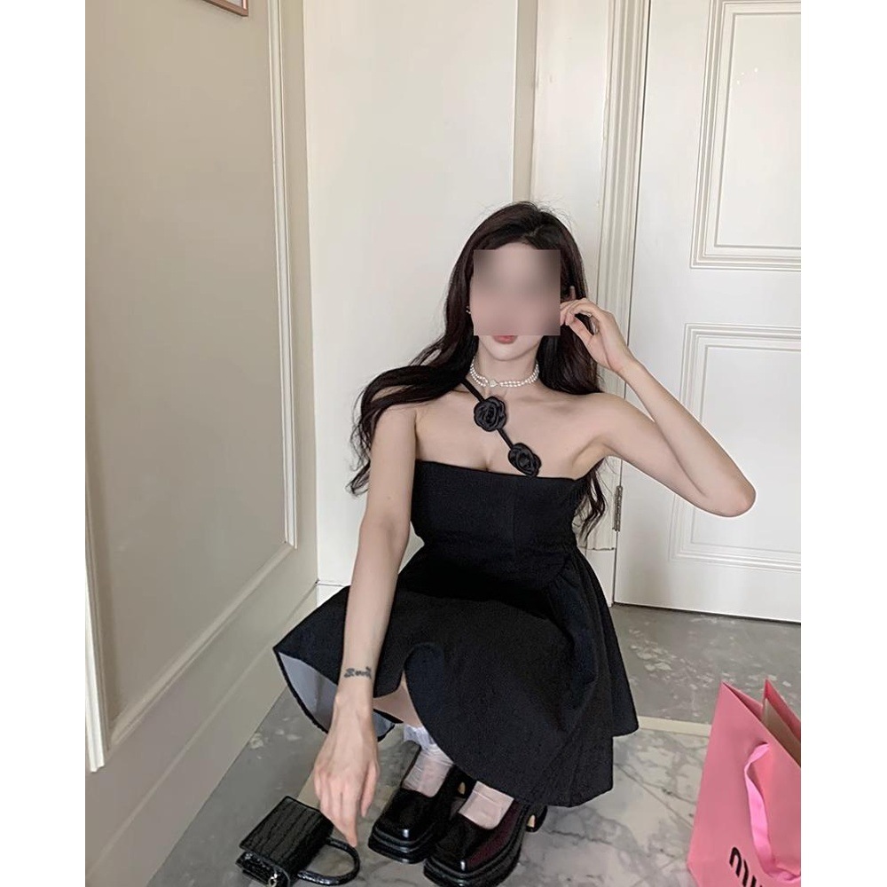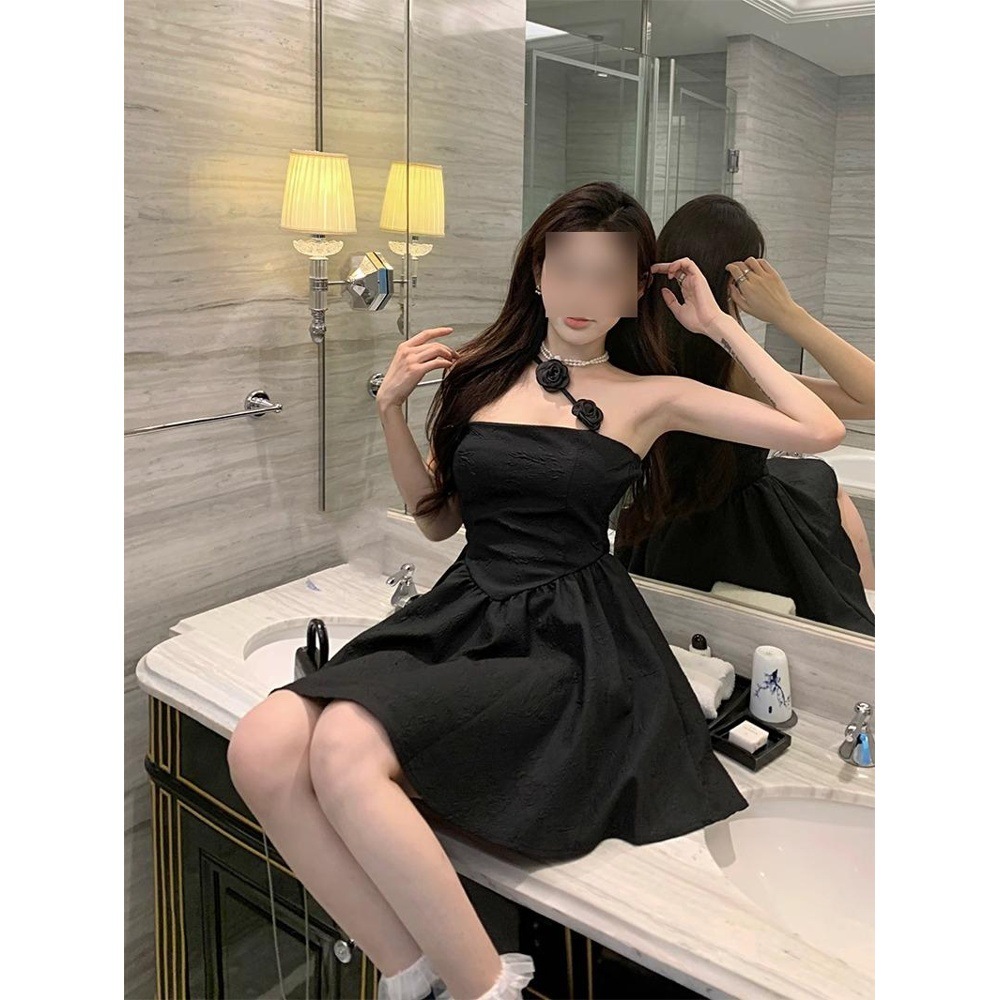 여름 여성을 위한 프렌치 햅번 스타일 민소매 튜브탑 리틀 블랙 드레스, 고급스럽고 달콤한 핫걸 스타일, 아름다운 푹신한 드레스스토어 가기