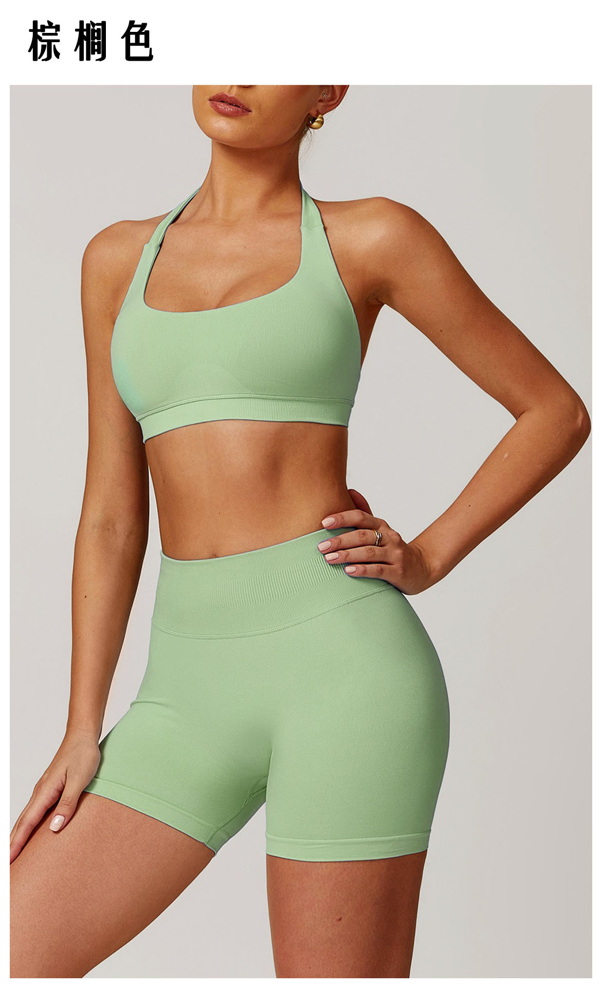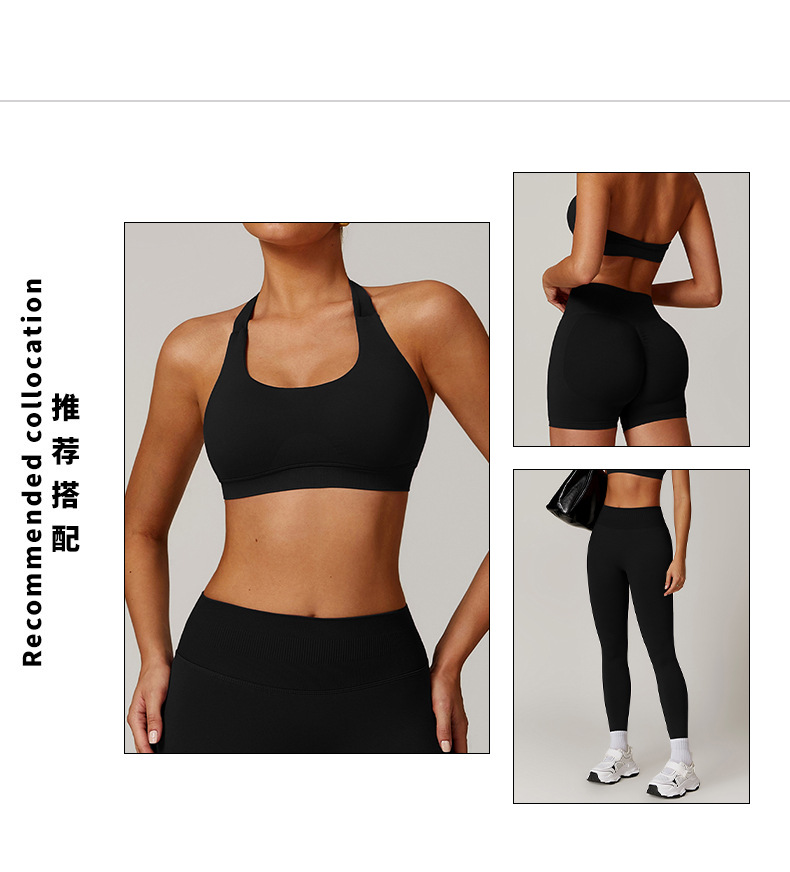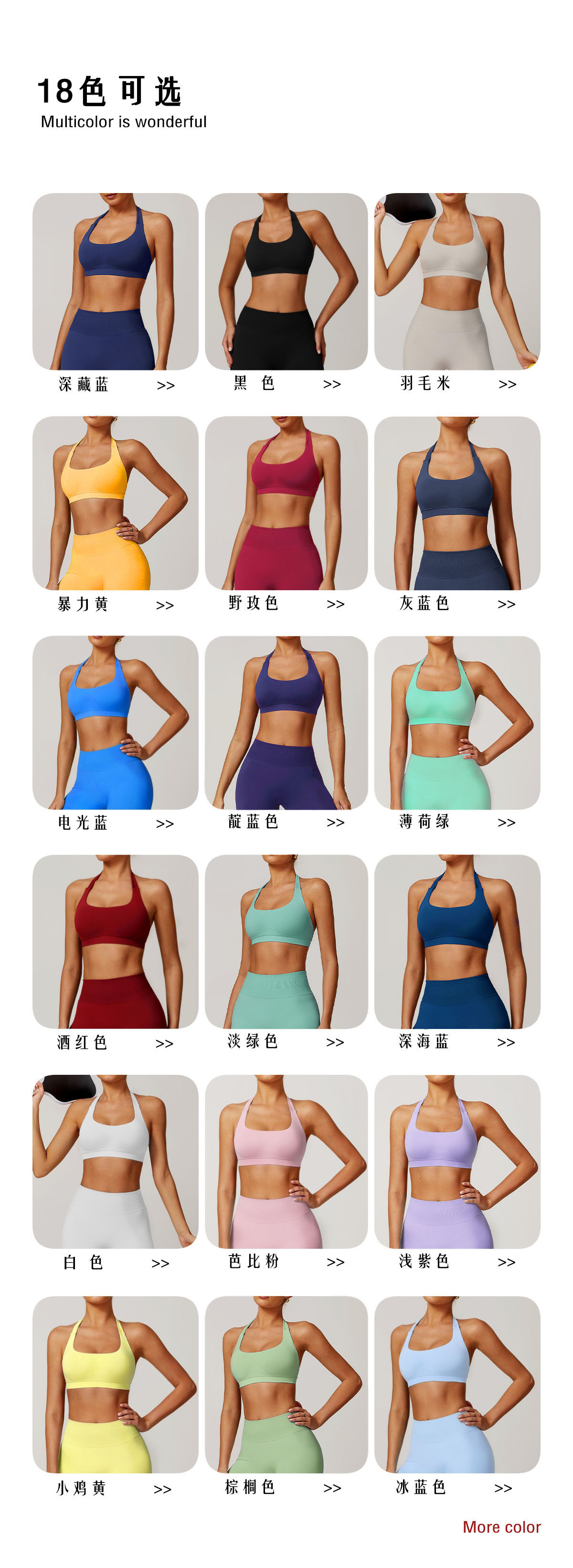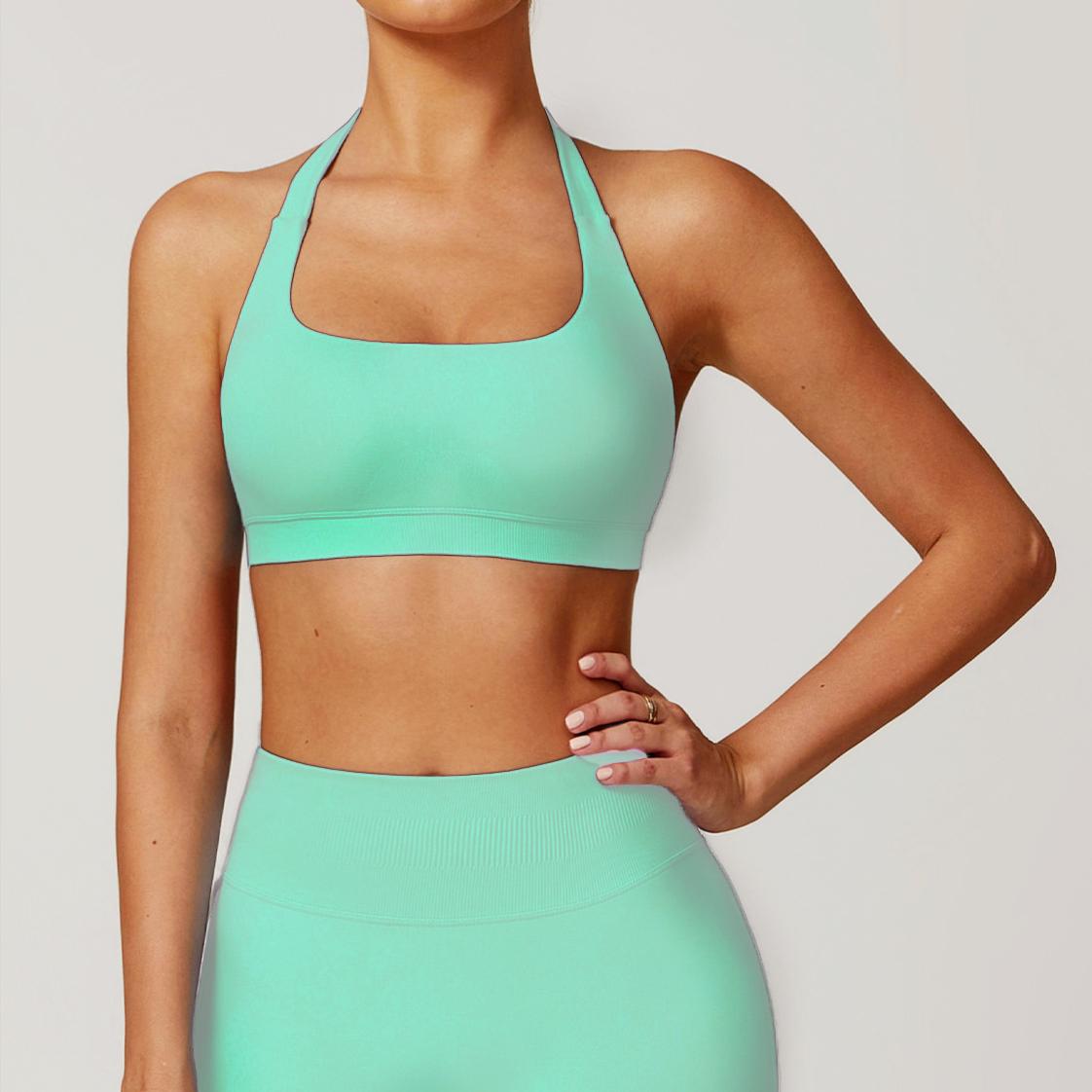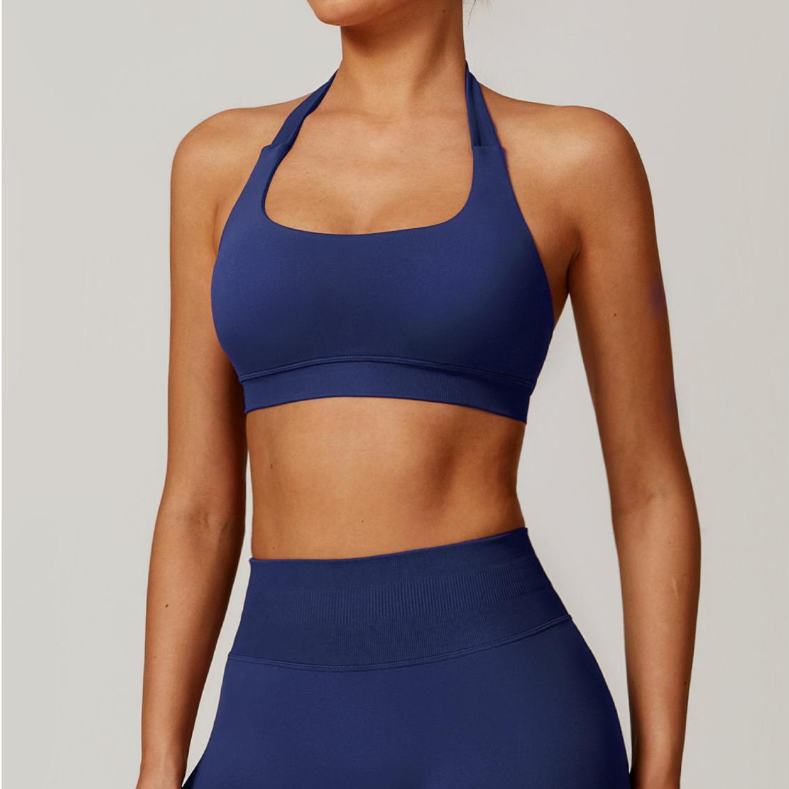 홀터넥 스포츠 브라, 고탄성, 초미세 무광택, 심리스 요가, 아름다운 등, 여름 충격 방지 피트니스 올인원 스포츠 브라