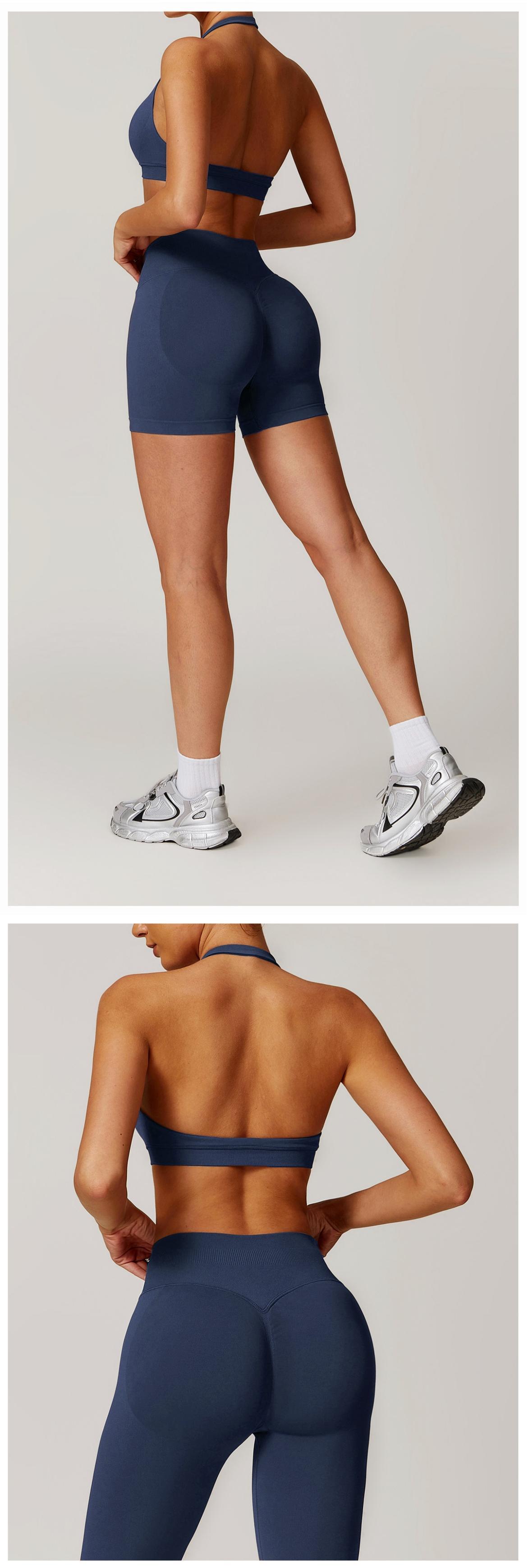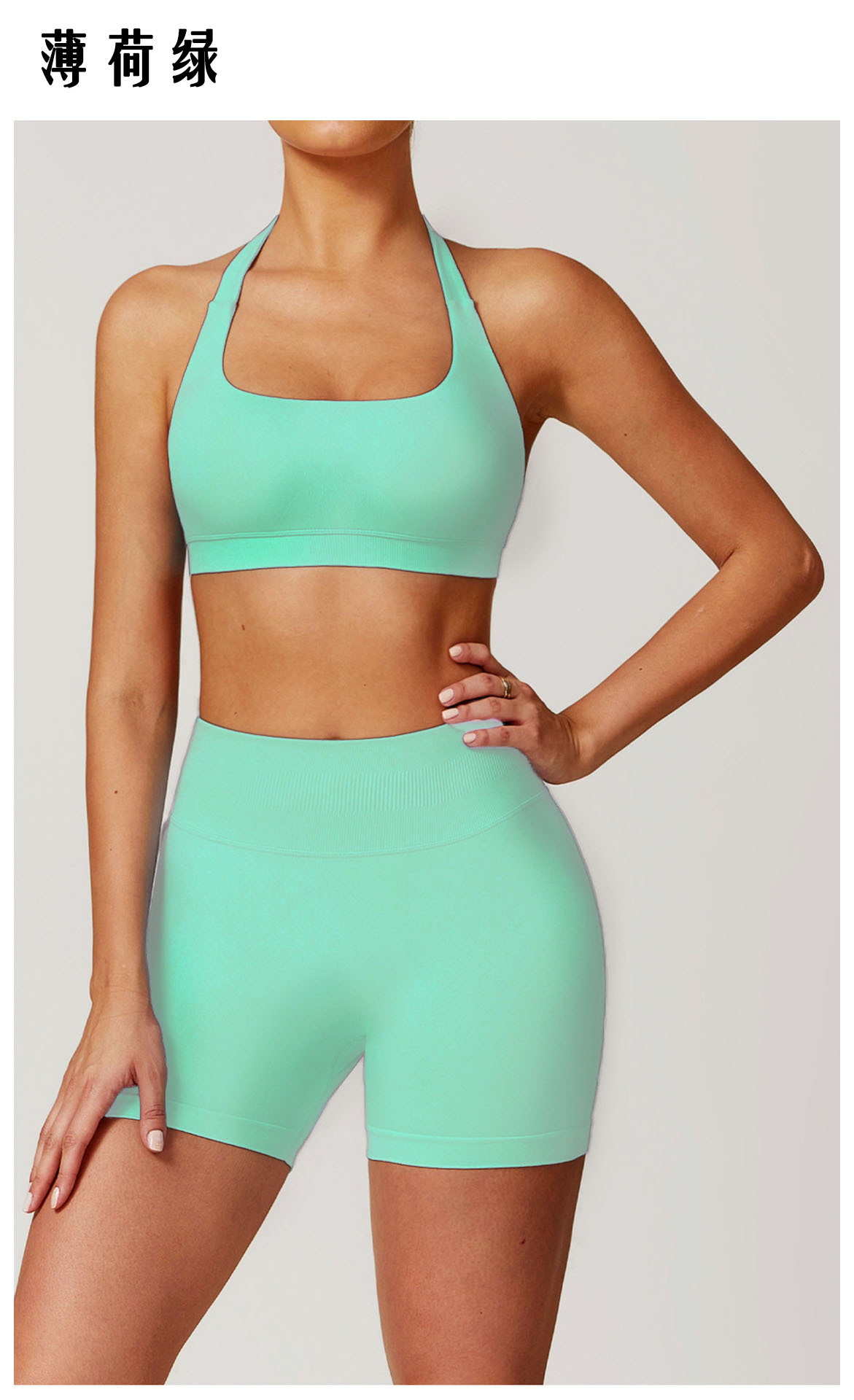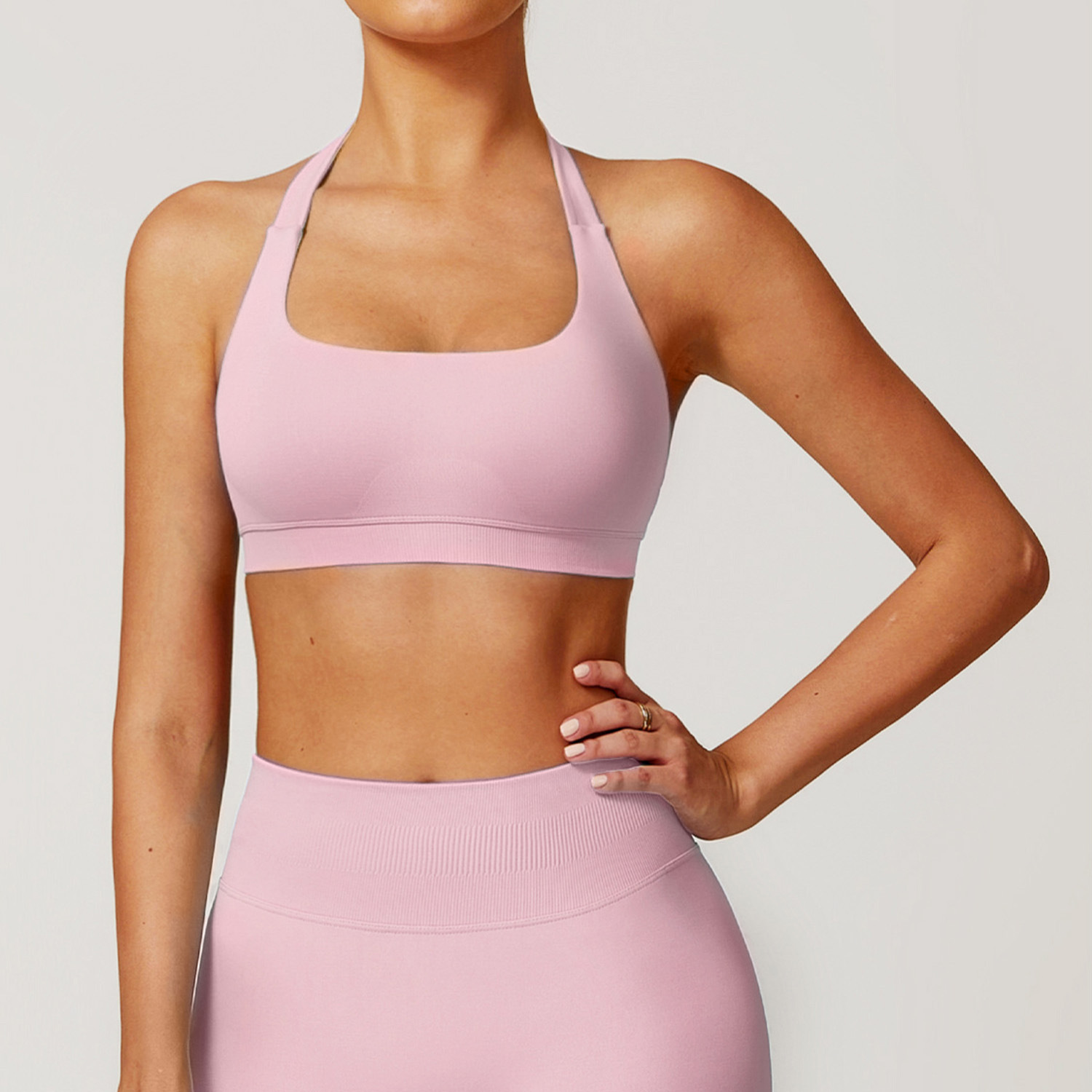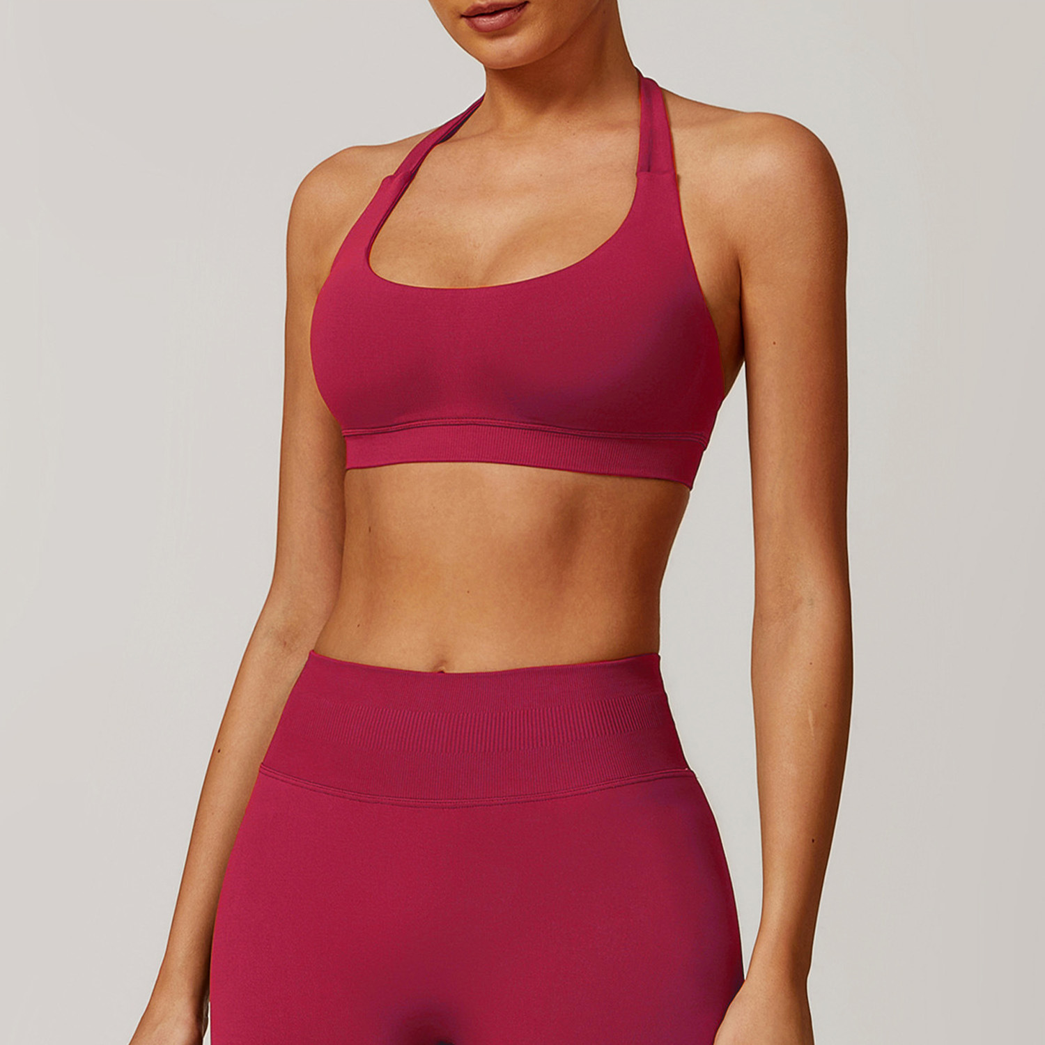 홀터넥 스포츠 브라, 고탄성, 초미세 무광택, 심리스 요가, 아름다운 등, 여름 충격 방지 피트니스 올인원 스포츠 브라