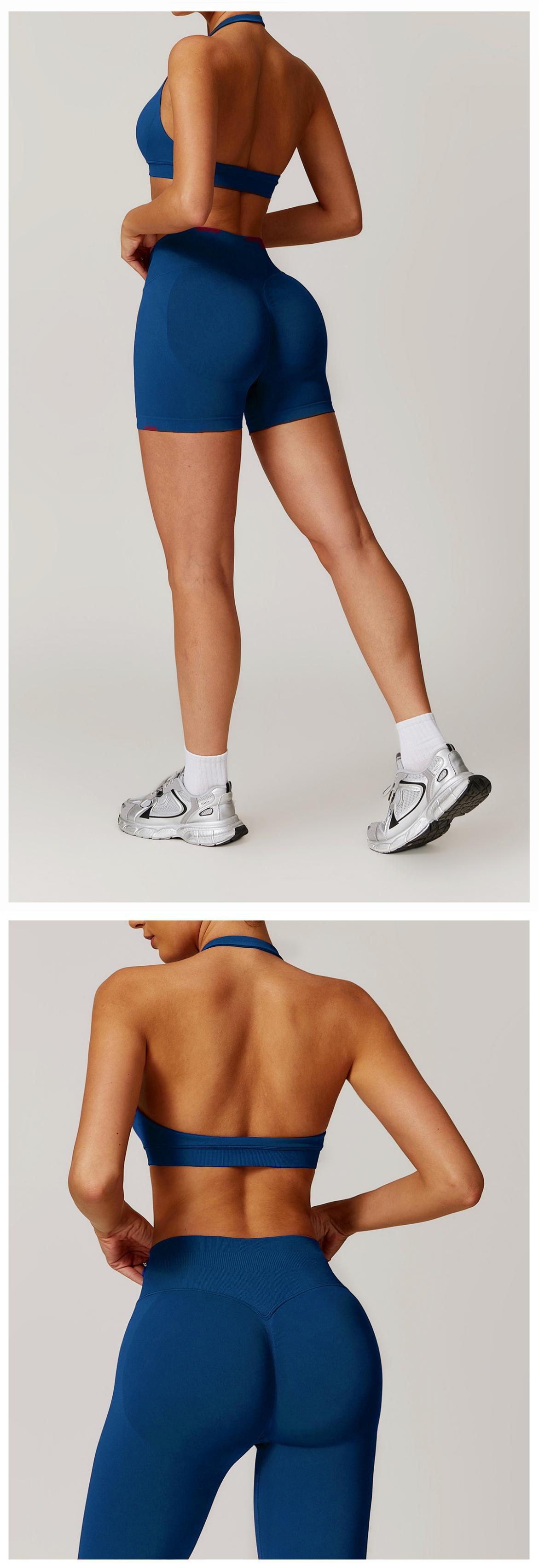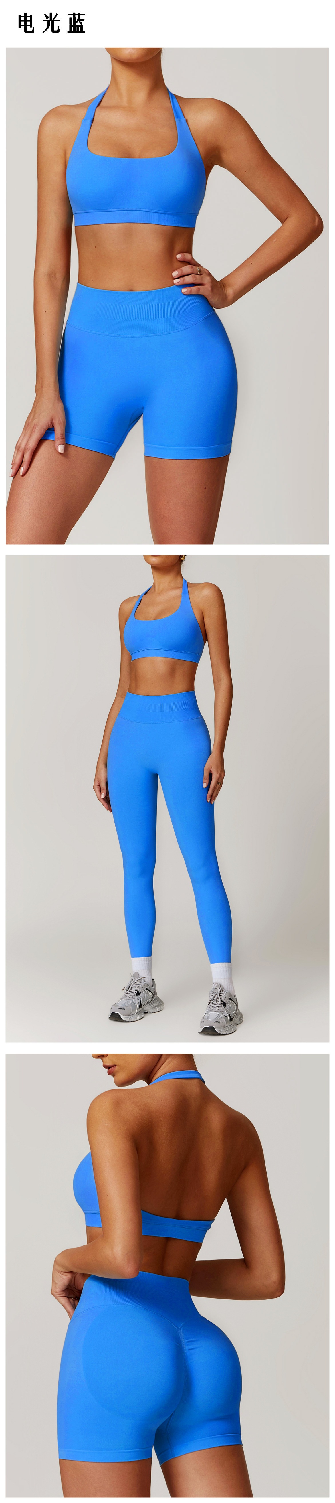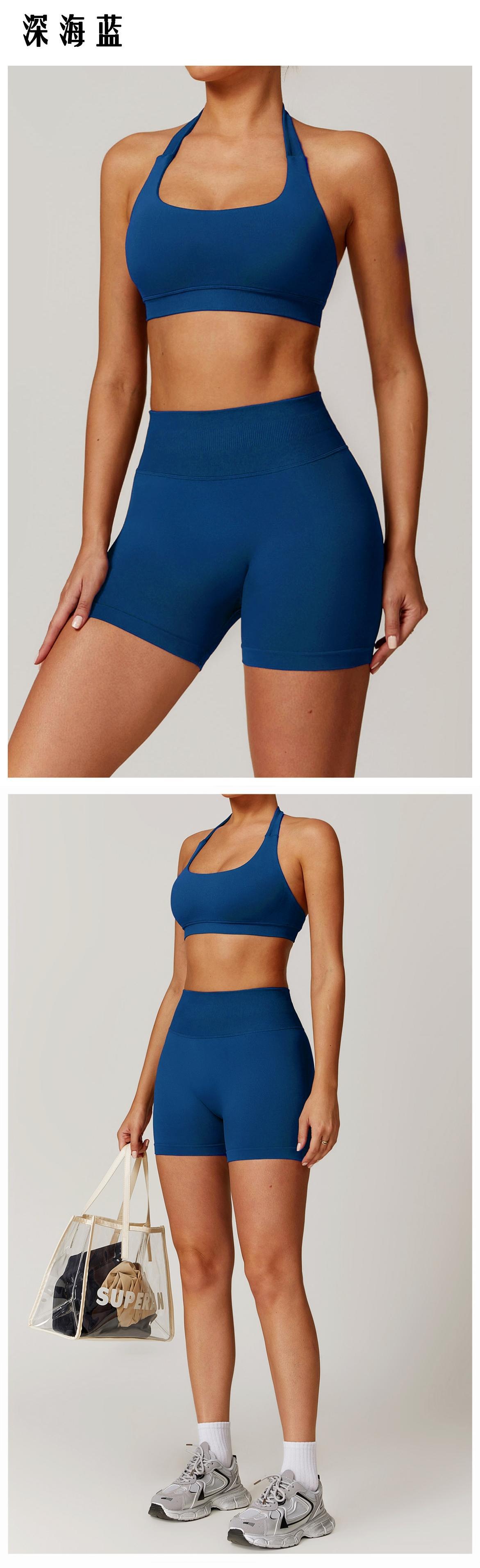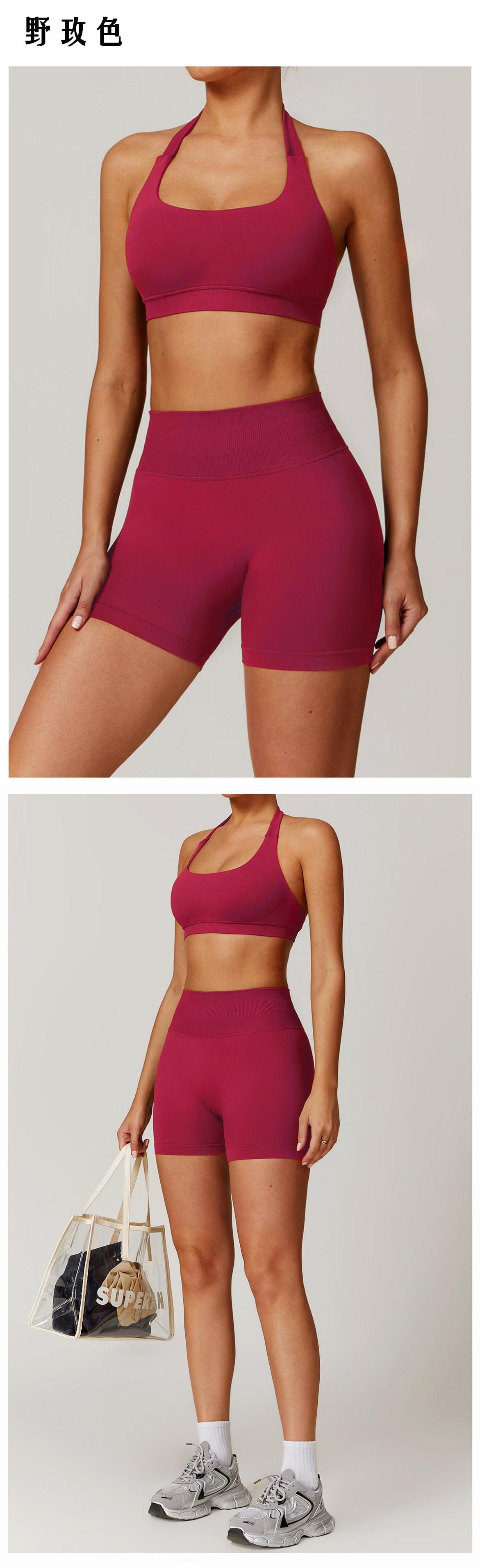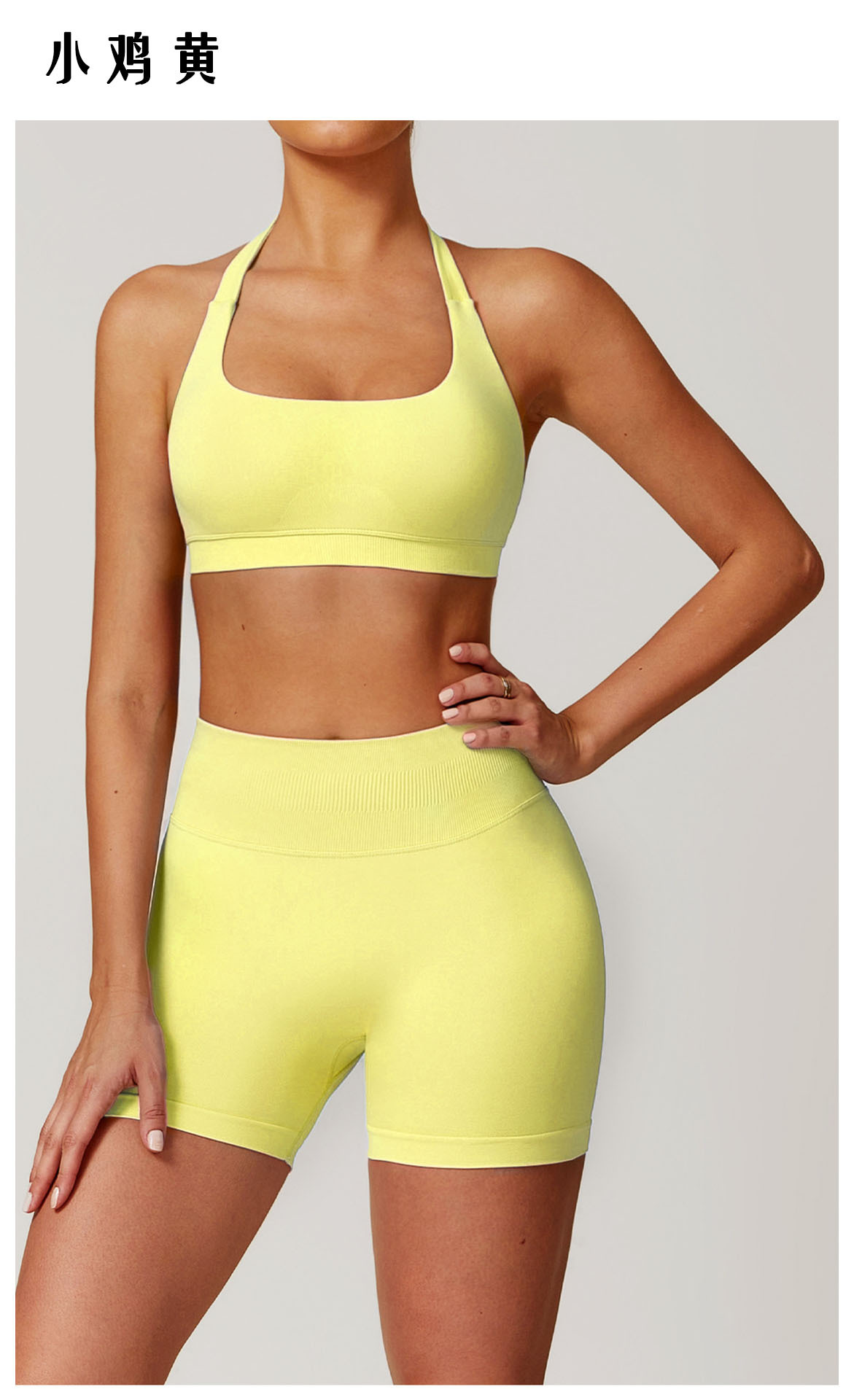 홀터넥 스포츠 브라, 고탄성, 초미세 무광택, 심리스 요가, 아름다운 등, 여름 충격 방지 피트니스 올인원 스포츠 브라