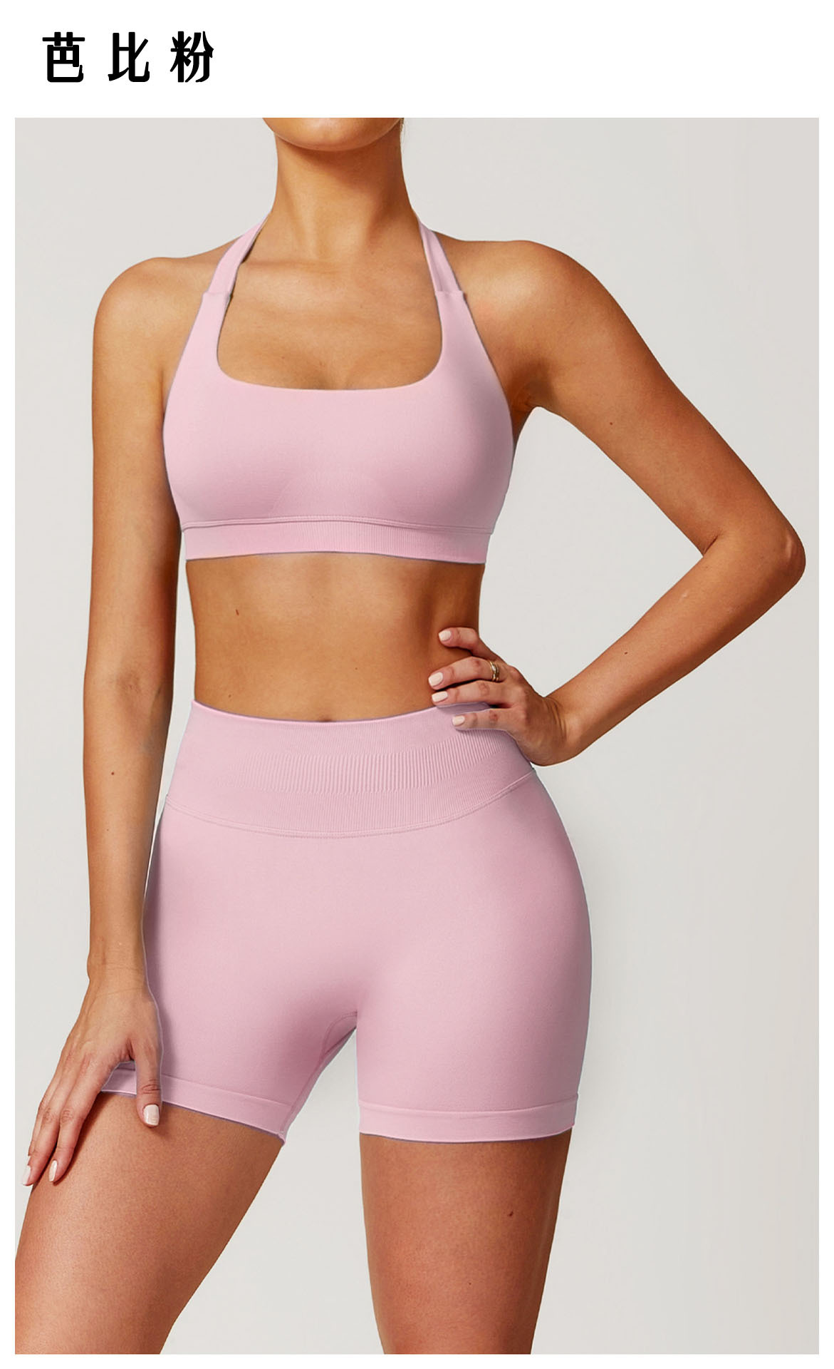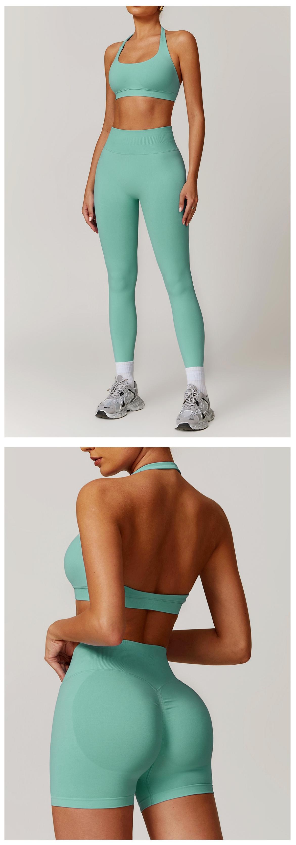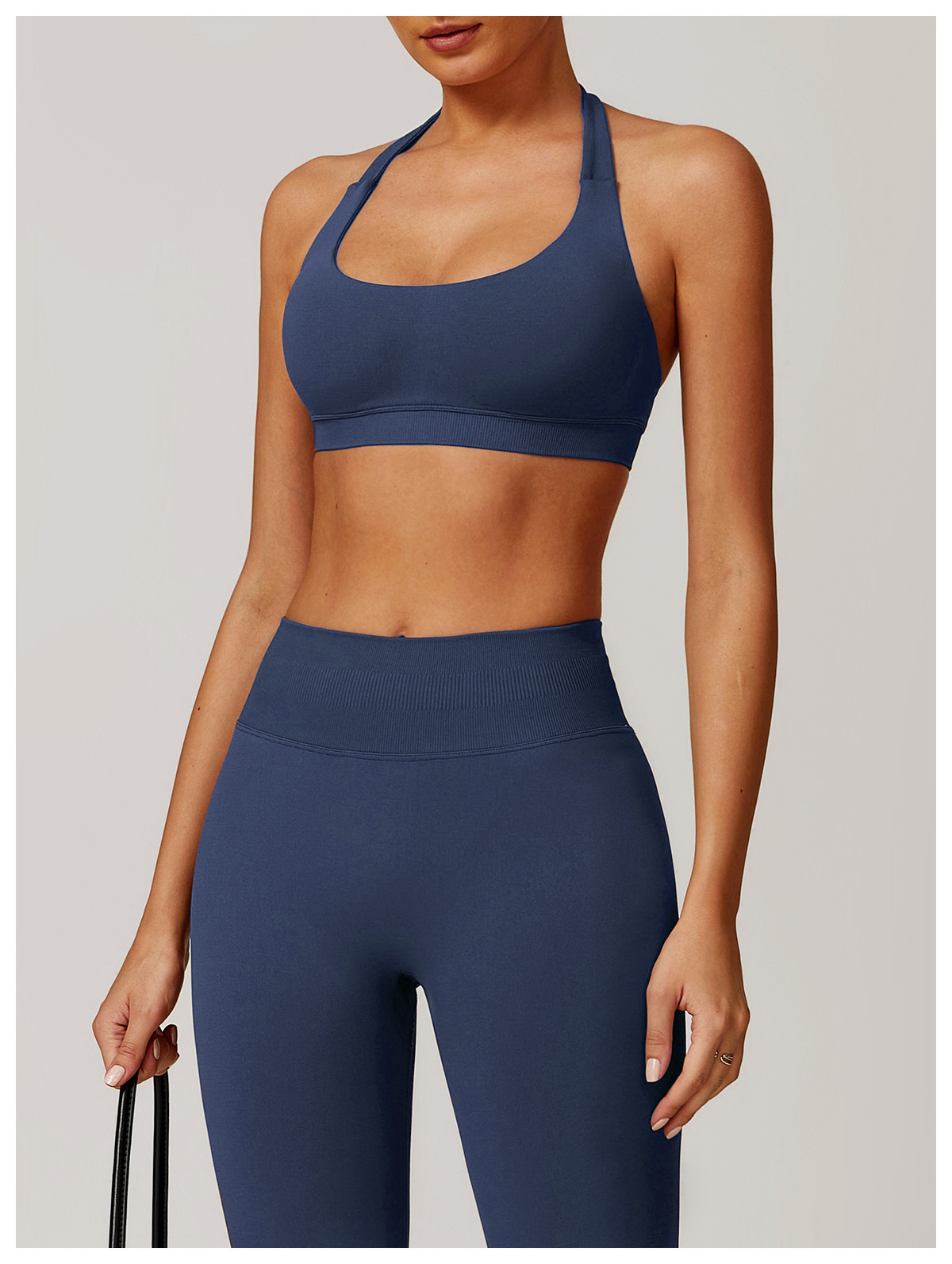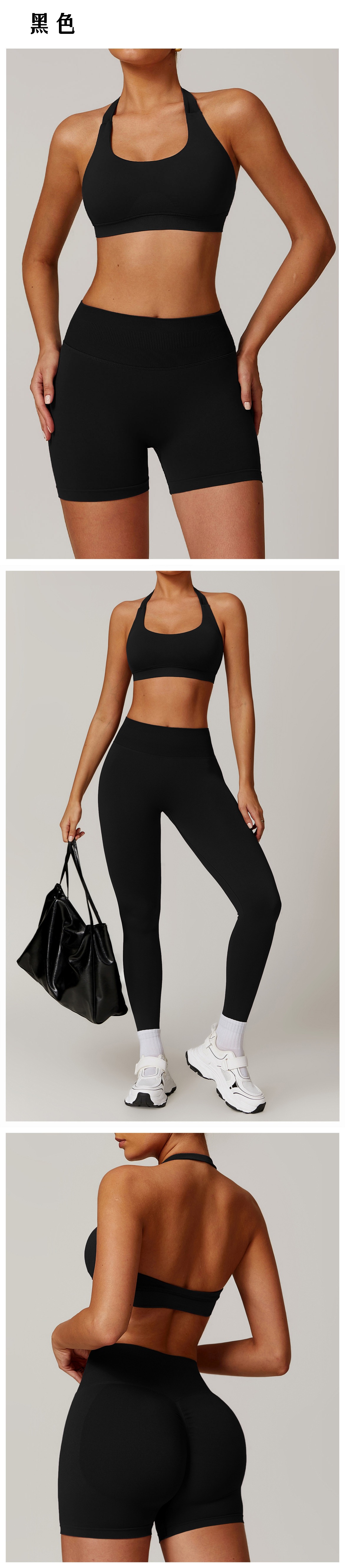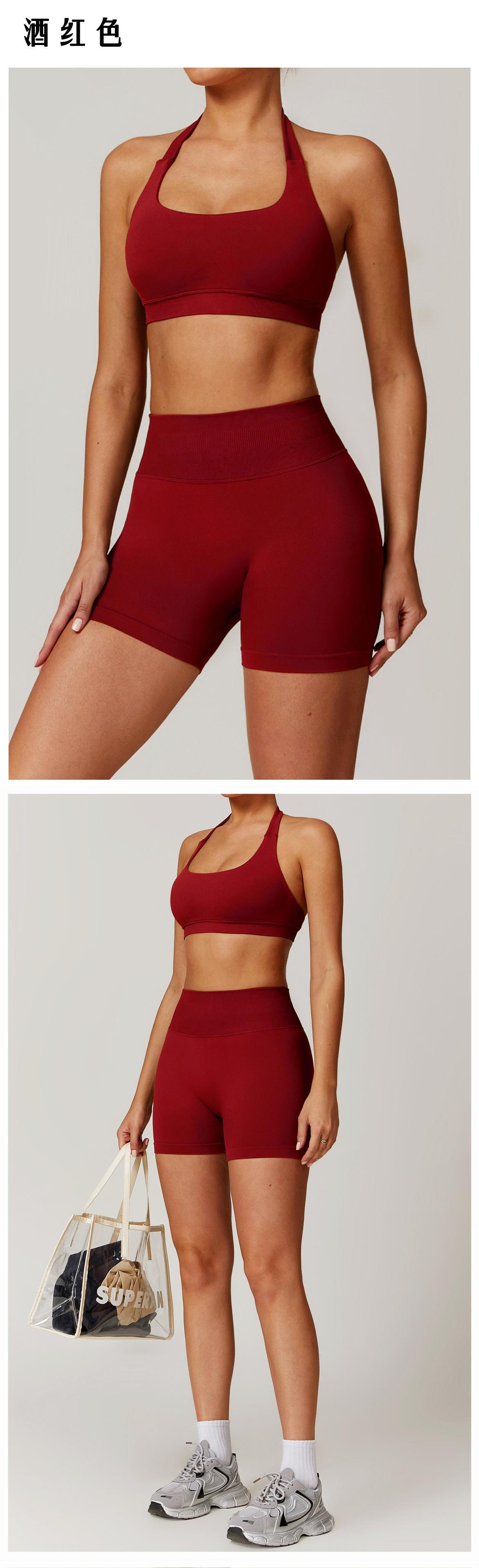 홀터넥 스포츠 브라, 고탄성, 초미세 무광택, 심리스 요가, 아름다운 등, 여름 충격 방지 피트니스 올인원 스포츠 브라