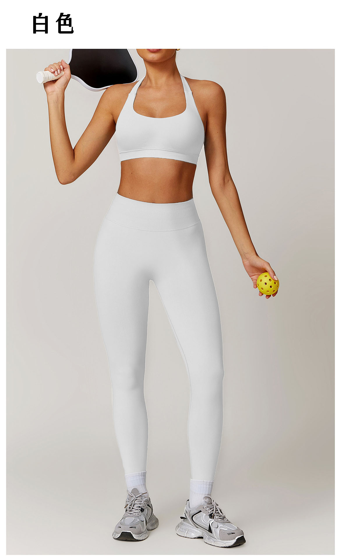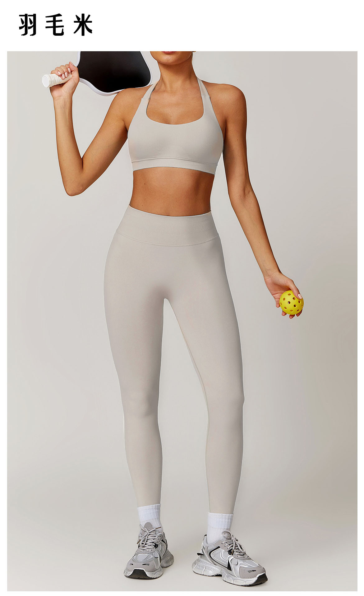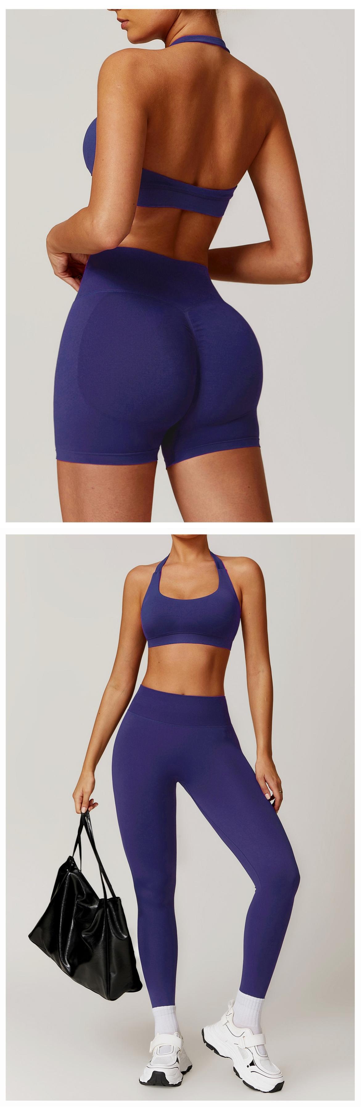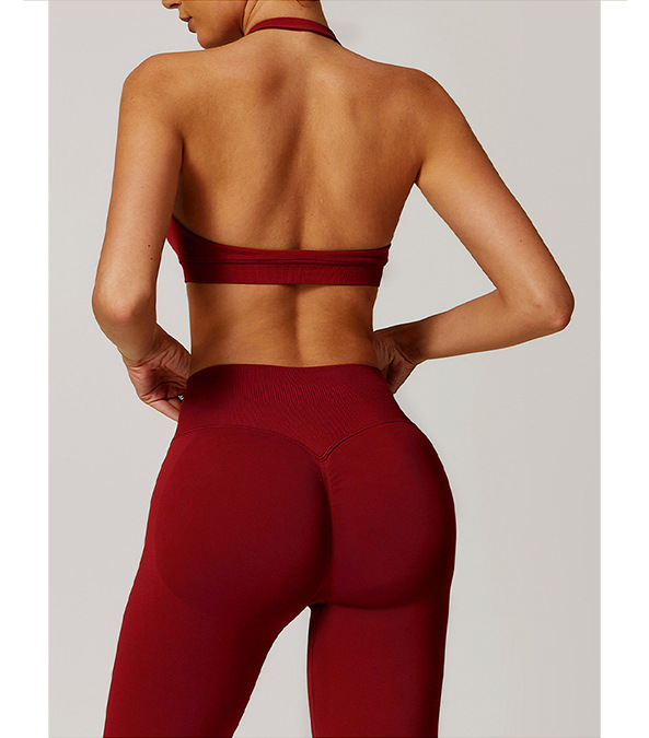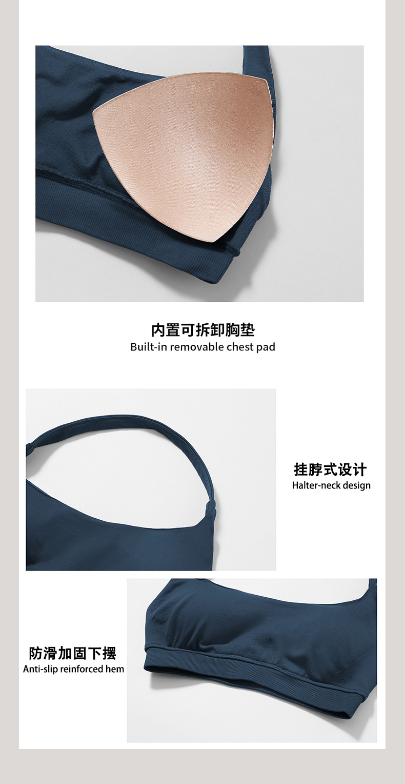 홀터넥 스포츠 브라, 고탄성, 초미세 무광택, 심리스 요가, 아름다운 등, 여름 충격 방지 피트니스 올인원 스포츠 브라