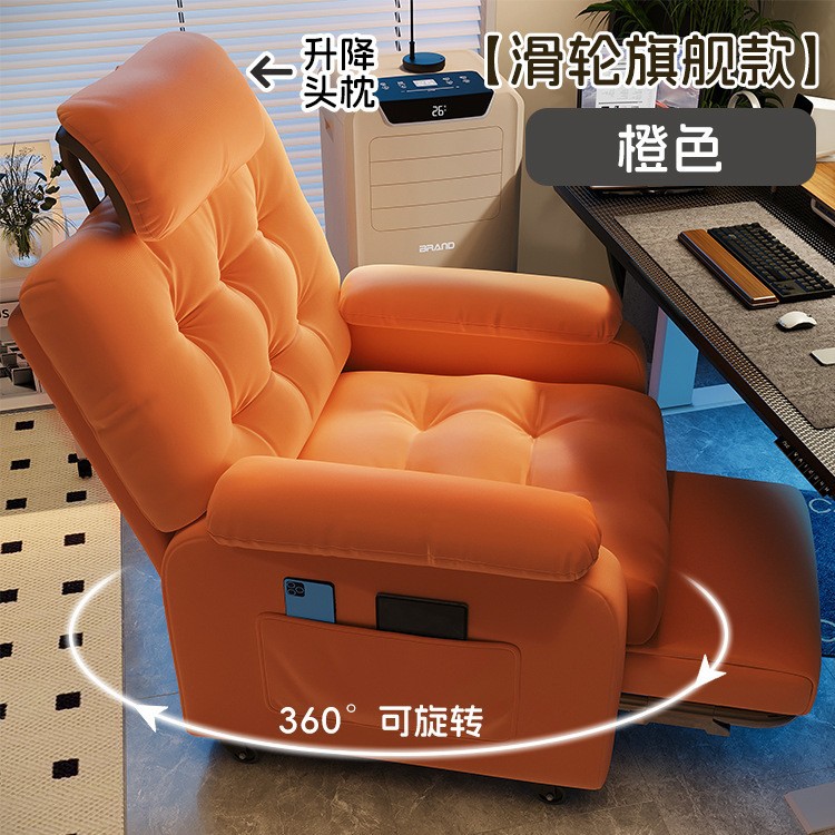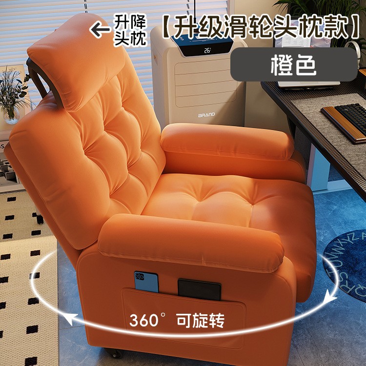 • [풀리 머리받침 모델] - 오렌지 - 조절 가능한 등받이 - 리프팅 머리받침 - 두꺼워진 고탄성 스폰지 충전재 - 360도 회전 롤러 스케이트