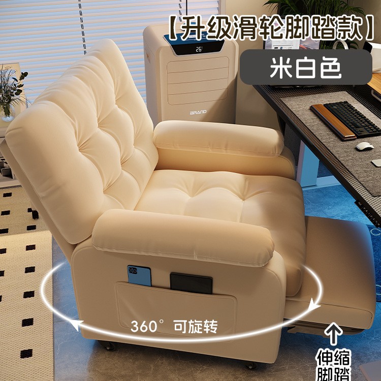 • [풀리 페달 모델] - 오프화이트 - 조절 가능한 등받이 - 텔레스코픽 페달 - 두꺼워진 고탄성 스폰지 충전재 - 360도 회전 롤러 스케이트