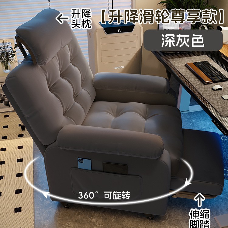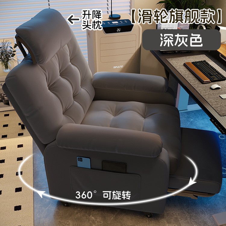 • [풀리 플래그십 모델] - 다크 그레이 - 조절 가능한 등받이 - 리프팅 헤드레스트 - 텔레스코픽 풋 페달 - 두꺼워진 고탄성 스폰지 충전재 - 360도 회전 도르래