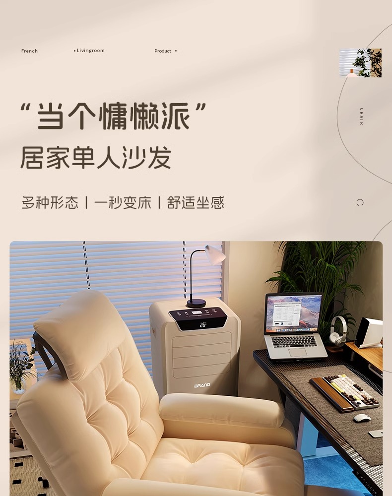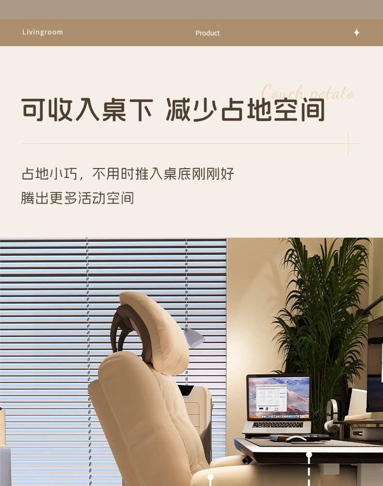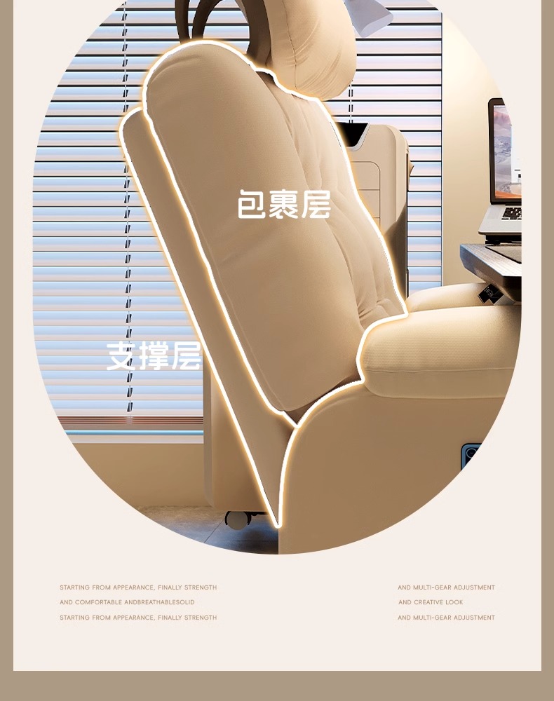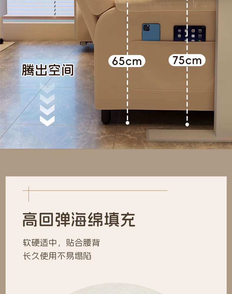 • [도르래 모델] - 오프화이트 - 조절 가능한 등받이 - 두꺼워진 고탄성 스펀지 충전재