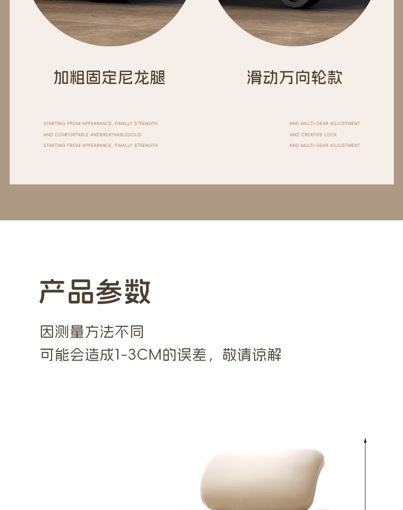 • [풀리 헤드레스트 모델] - 오프화이트 - 조절 가능한 등받이 - 리프팅 헤드레스트 - 두꺼워진 고탄성 스폰지 충전재 - 360도 회전 롤러 스케이트