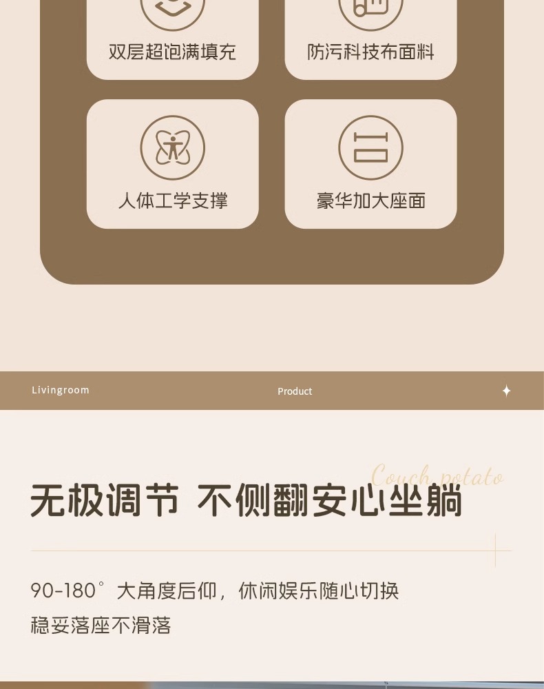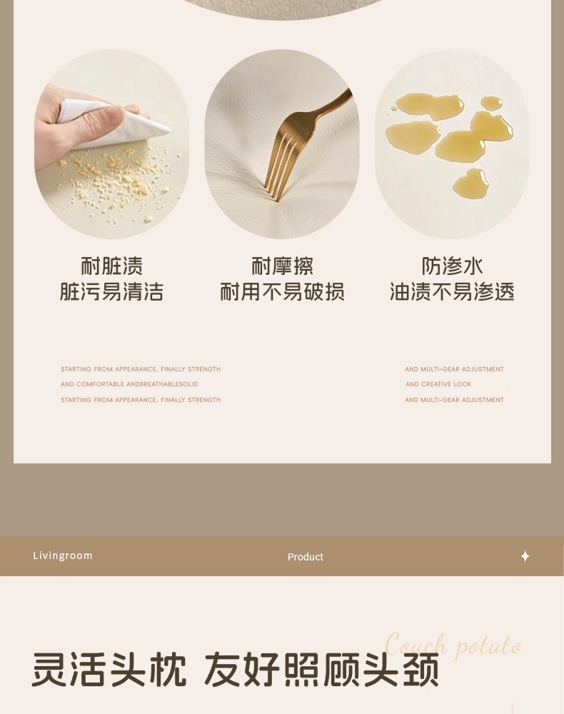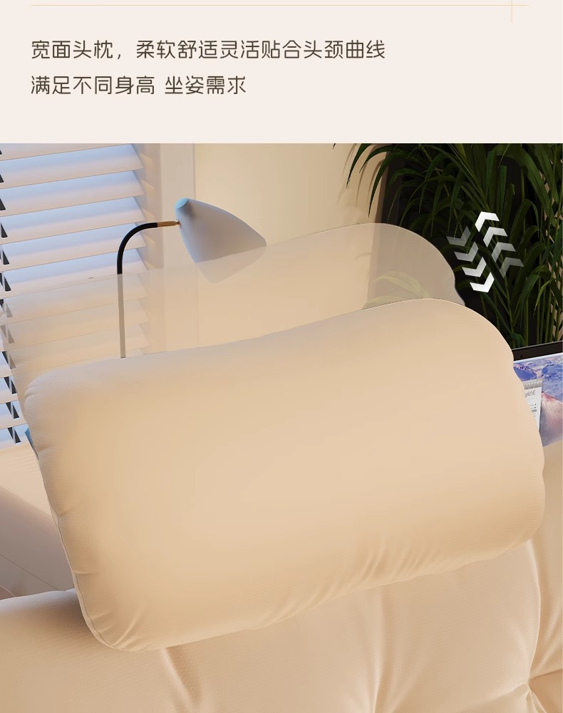 • [업그레이드된 고정형 머리받침 모델] - 오프화이트 - 조절 가능한 등받이 - 리프팅 머리받침 - 두꺼워진 고탄성 스폰지 충전재 - 업그레이드된 두꺼워진 탄소강 프레임