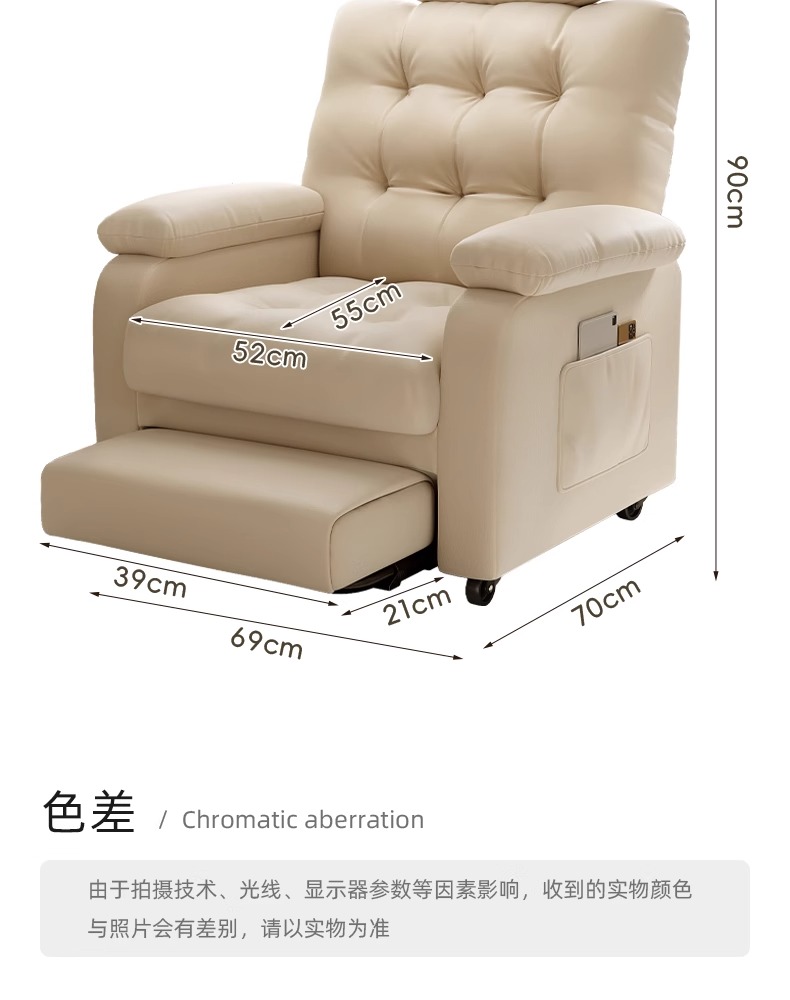 • [고정 플래그십 모델] - 오프화이트 - 조절 가능한 등받이 - 리프팅 헤드 - 텔레스코픽 페달 - 두꺼워진 고탄성 스폰지 충전재