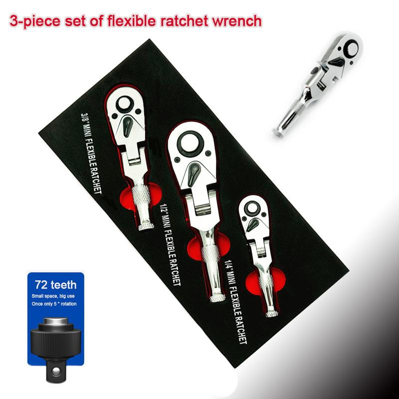 3개 180 ° 전면 및 후면 조절식 흔들리는 헤드, 유연한 72T 고속 슬리브 래칫 렌치, 짧은 미니 팜 래칫