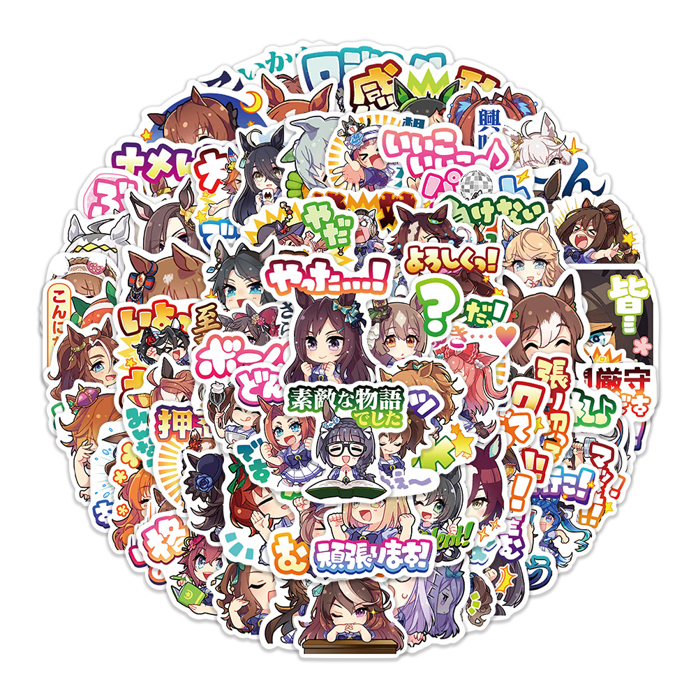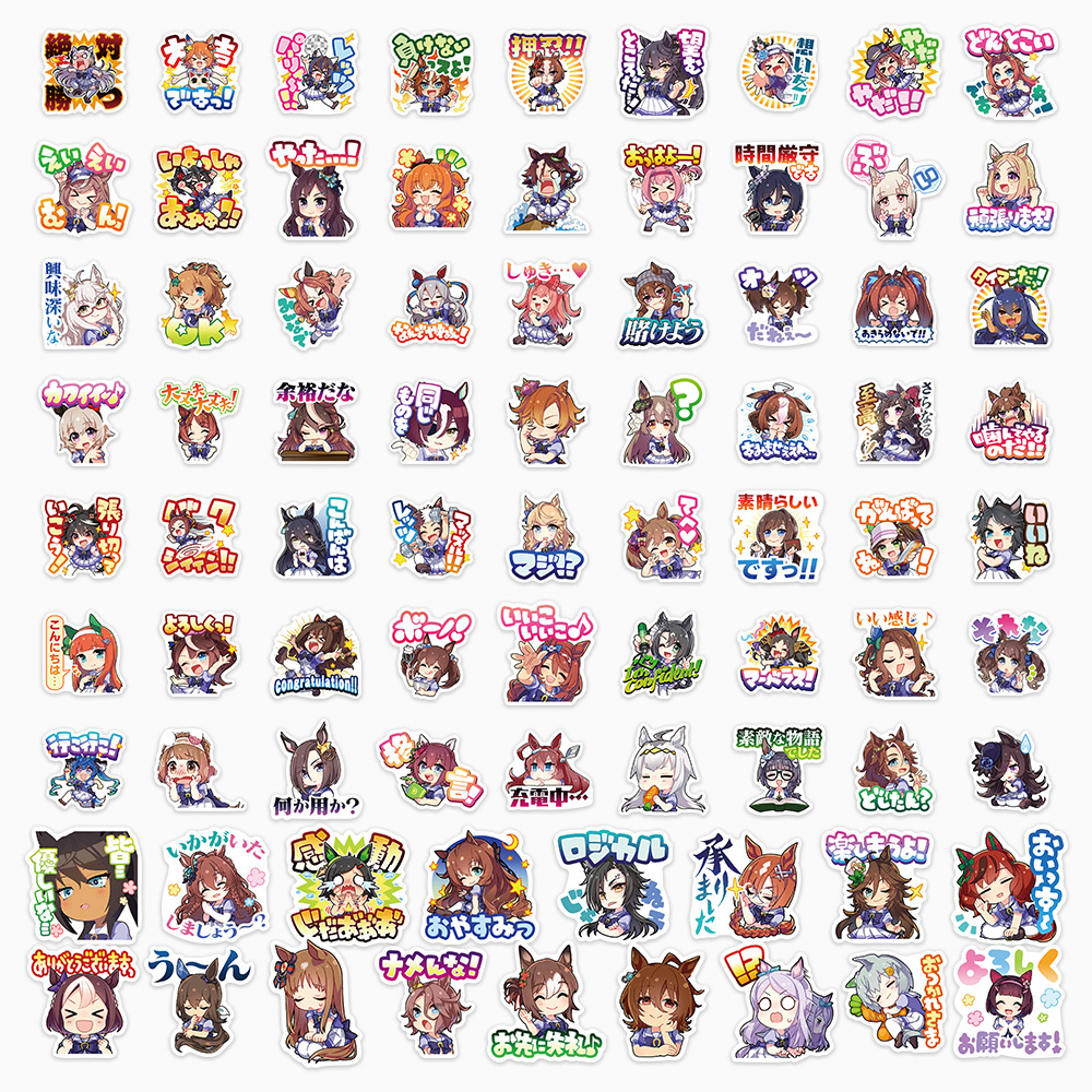 80개의 경마 소녀 이모티콘 만화 그래피티 스티커, 국경을 넘는 장식용 물컵, 자동차, 여행 가방 스티커 도매스토어 가기