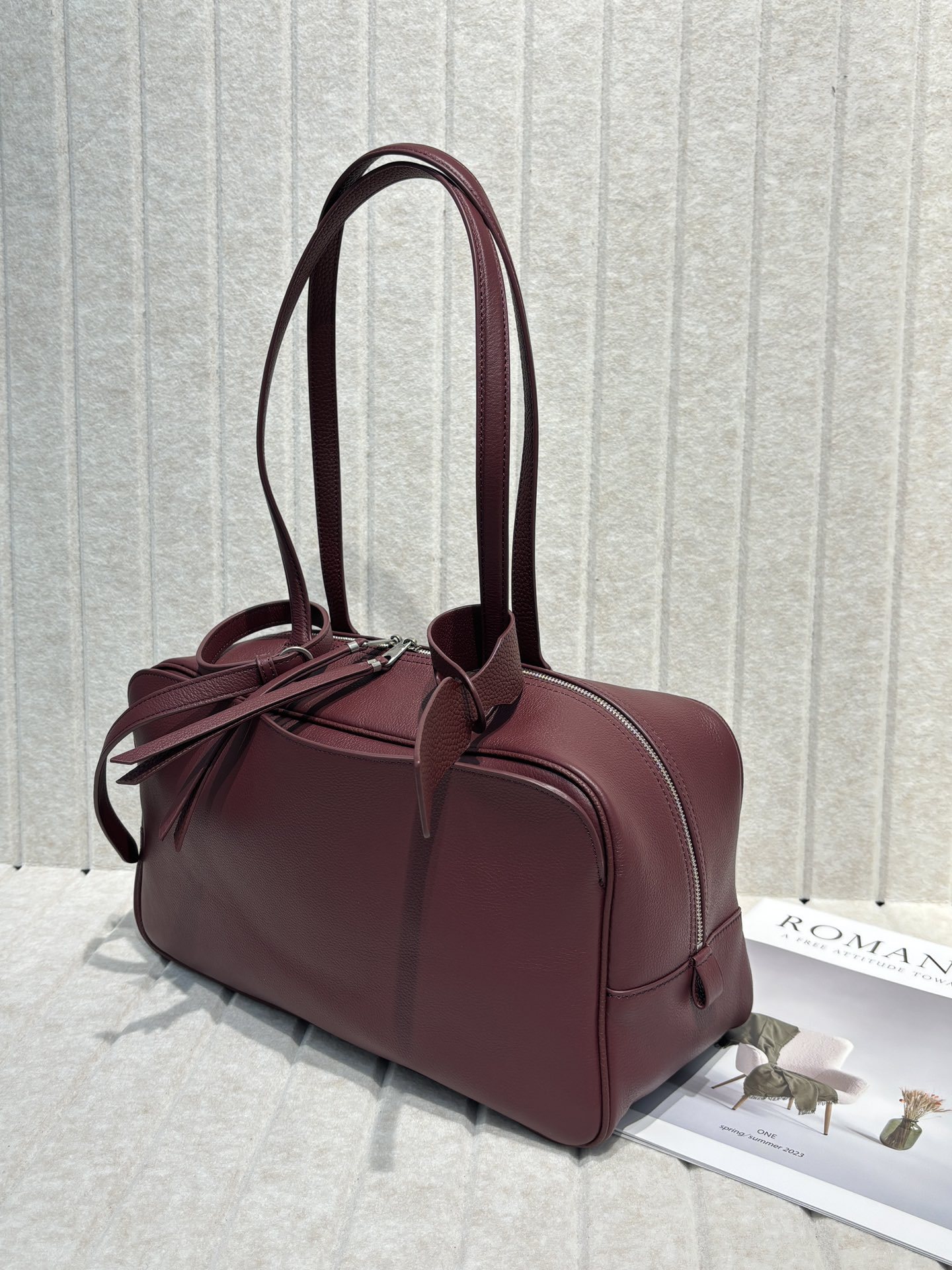 파리 볼링 가방 유럽과 미국의 가벼운 럭셔리 틈새 소가죽 보스턴 베개 가방 대용량 어깨 겨드랑이 핸드백스토어 가기