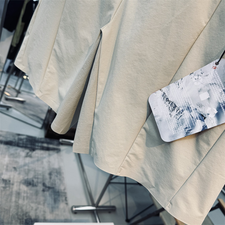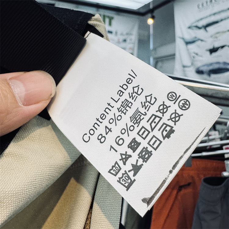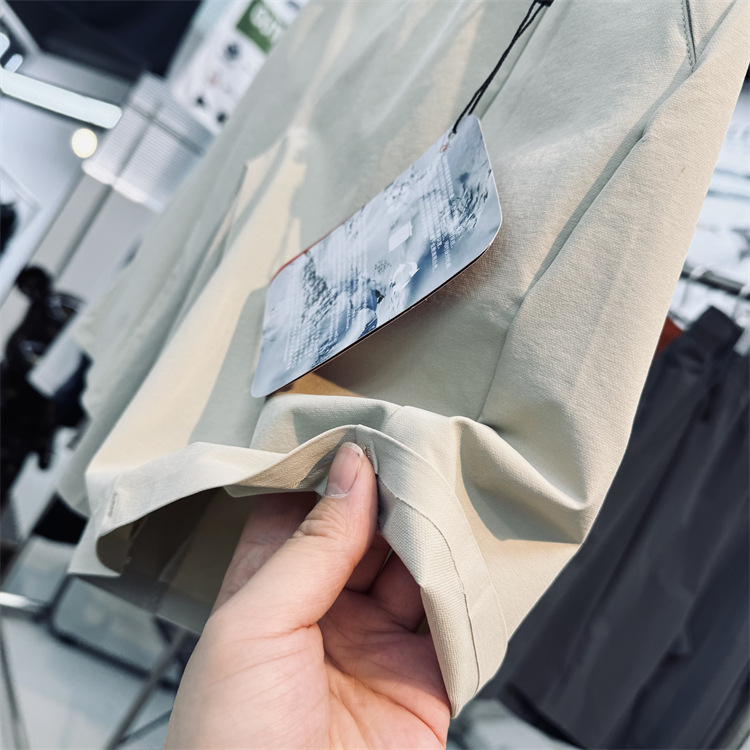 松紧腰围 可调节收紧拉扣 两个斜插拉链口袋 部分收口采用压胶收口! 整体简介大方 有辨识度