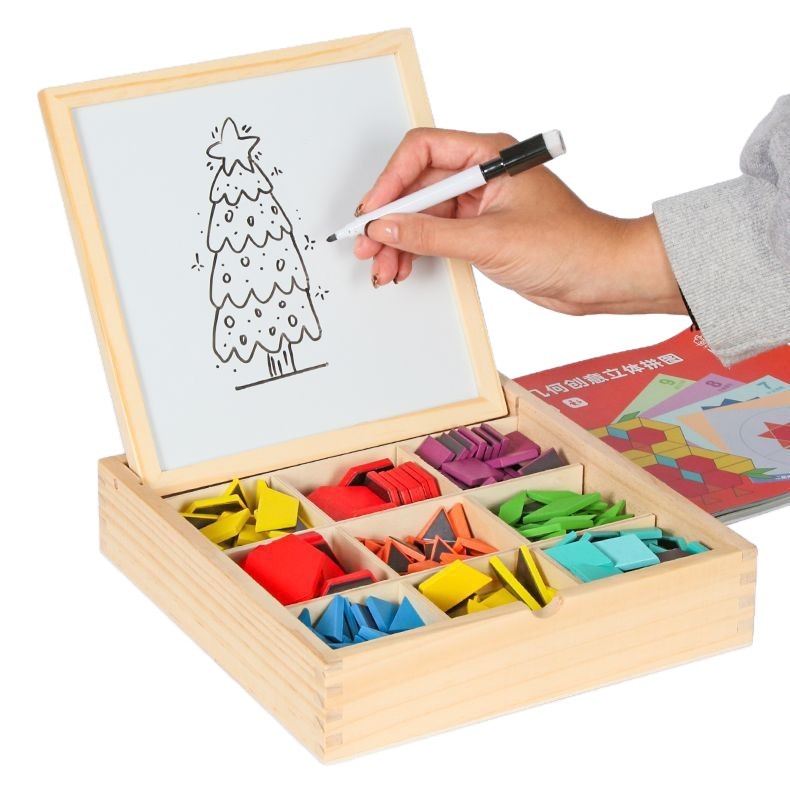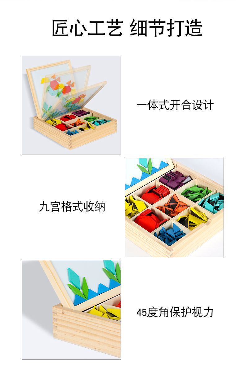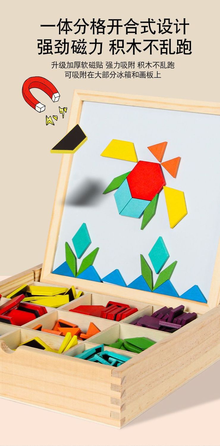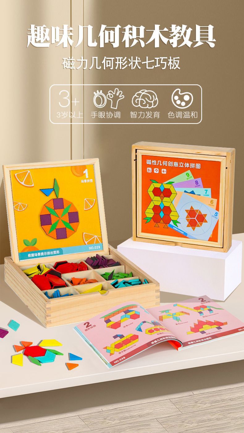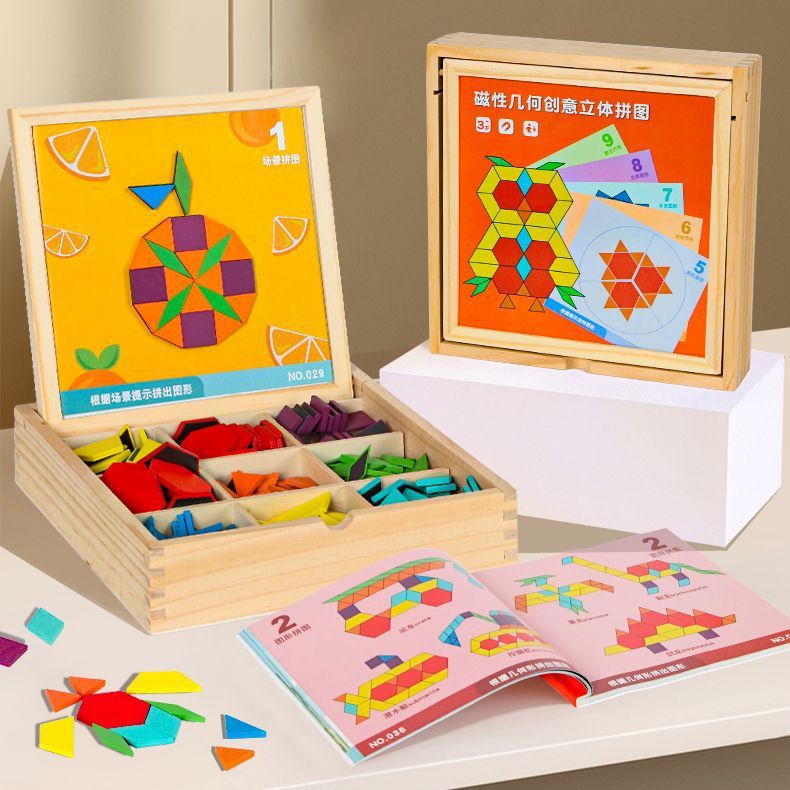 Tangram 퍼즐 기하학 어린이 장난감 기하학 생일 나무 퍼즐 자기 자석스토어 가기