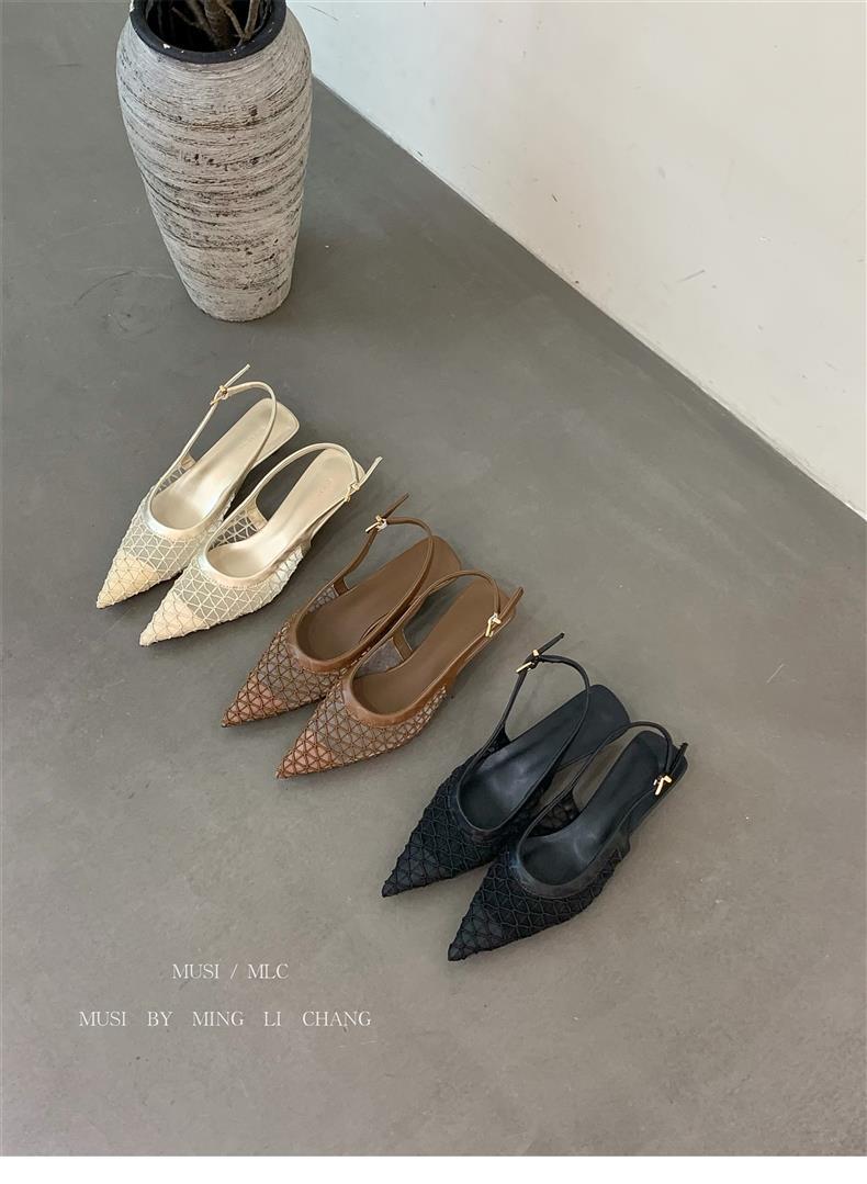 프랑스 새끼 고양이 뒤꿈치 메쉬 통기성 발가락 샌들 여성 신발 2025 새로운 여름 짠 발가락 신발스토어 가기