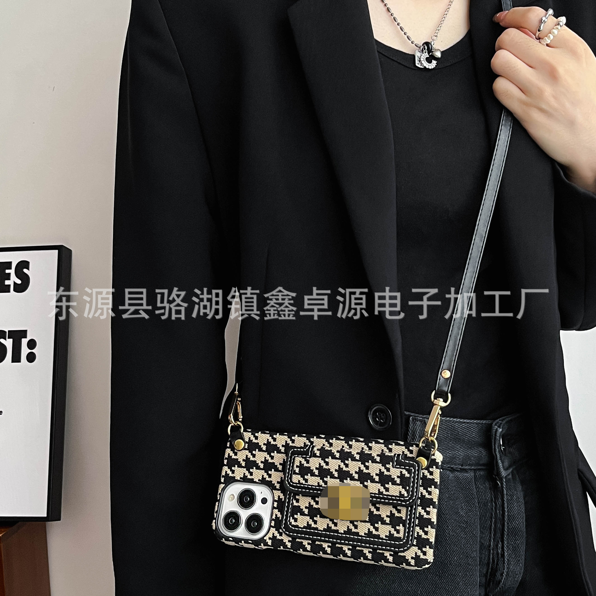 Apple 15promax 휴대폰 케이스에 적합한 물떼새 격자 크로스바디 하이엔드 럭셔리 16promax 여성 트렌디 브랜드 럭셔리