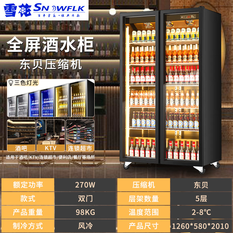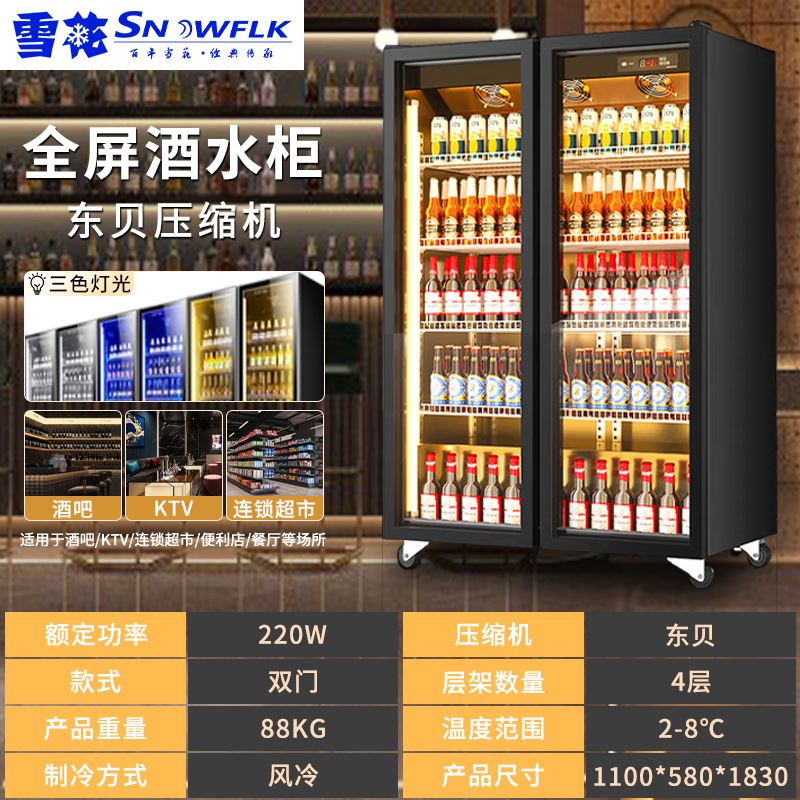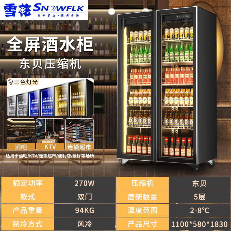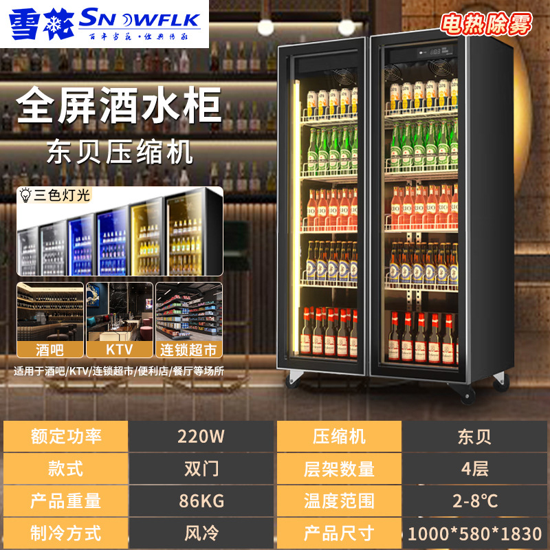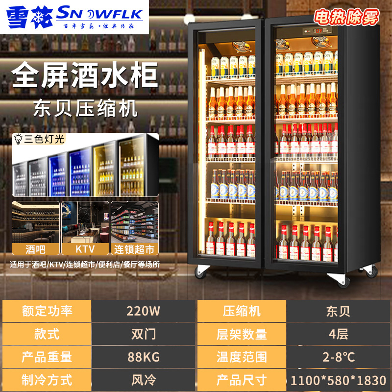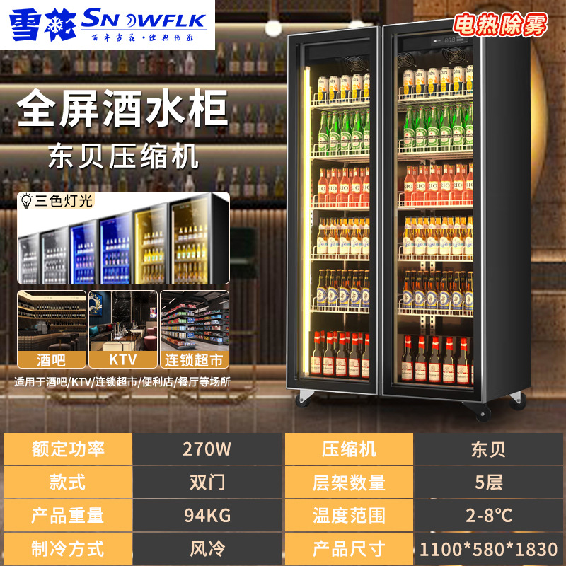 • 대형 양문형 와인 캐비닛 [1260*600*2010] 프레임리스 고급형 풀스크린 김서림 방지 모델 [주파수 변환 에너지 절약 + 전기 가열 김서림 방지]