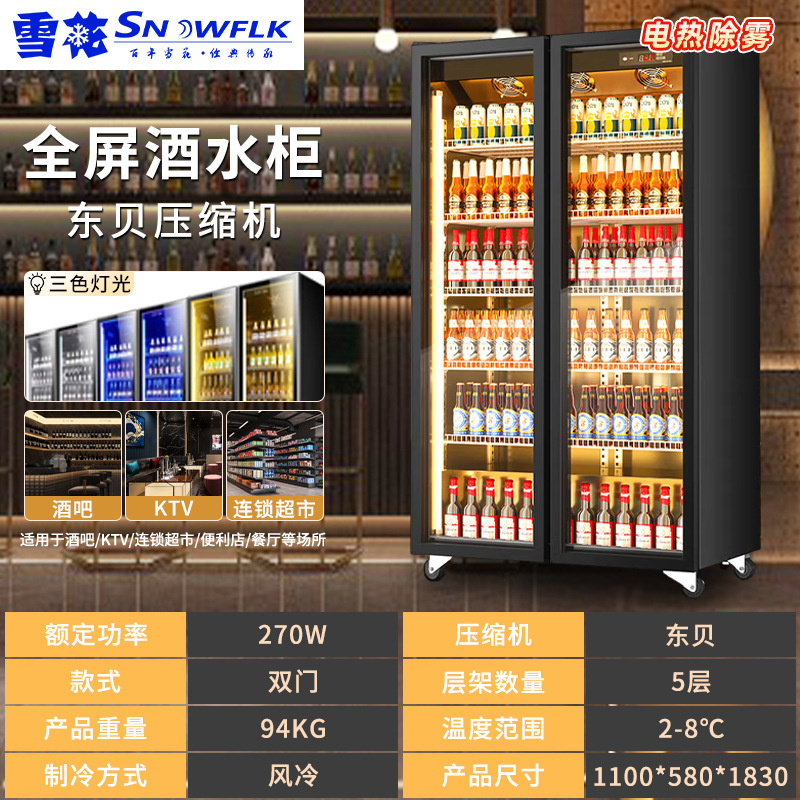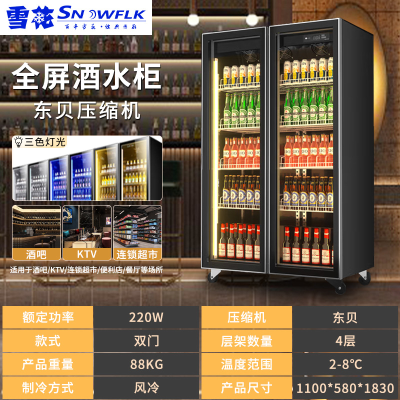 • 대형 양문형 와인 캐비닛 [1100*580*1830] 프레임리스 고급형 풀스크린 김서림 방지 모델 [주파수 변환 에너지 절약 + 전기 가열 김서림 방지]