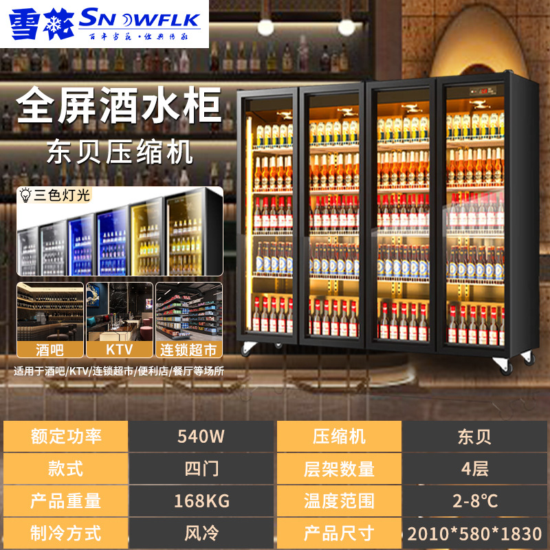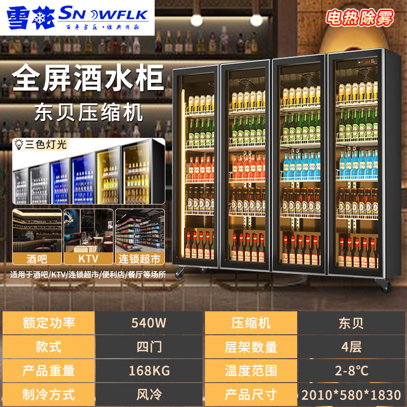 • 4도어 와인 캐비닛 [2010*580*1830] 프레임리스 고급형 풀스크린 김서림 방지 모델 [주파수 변환 에너지 절약 + 전기 가열 김서림 방지]
