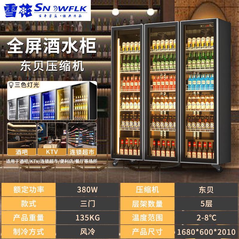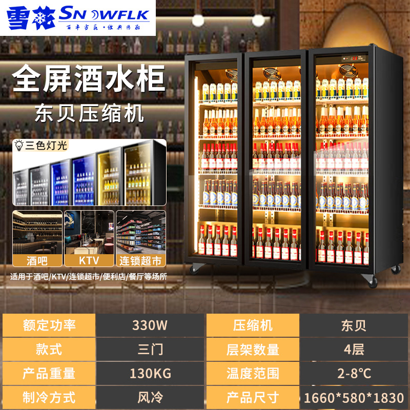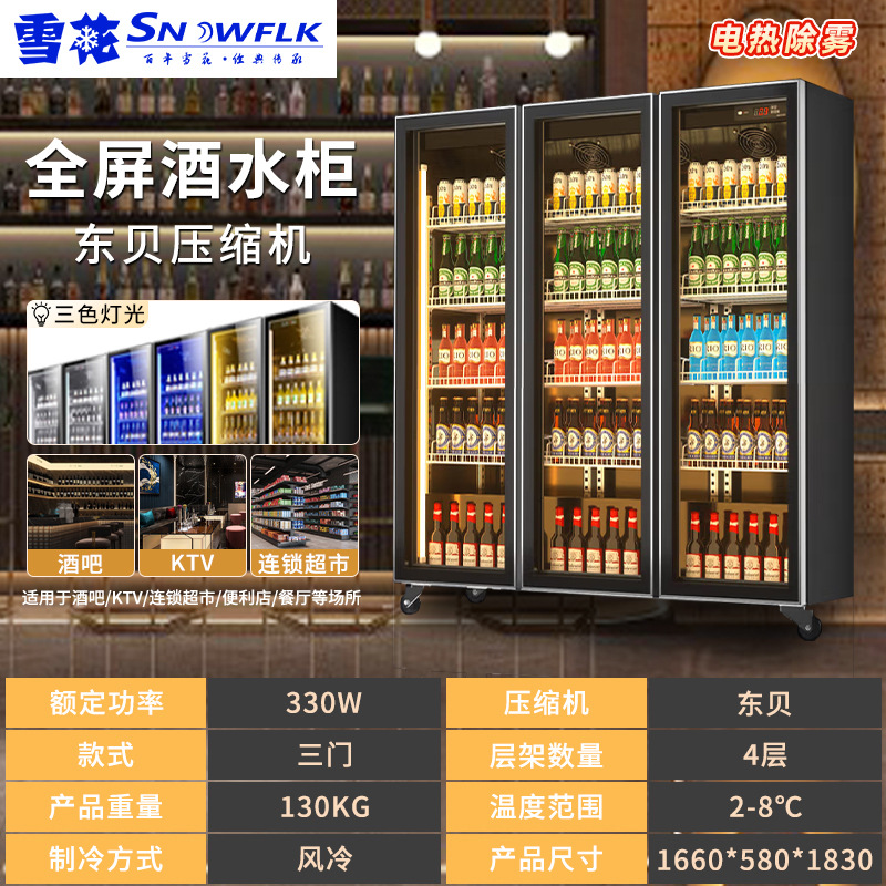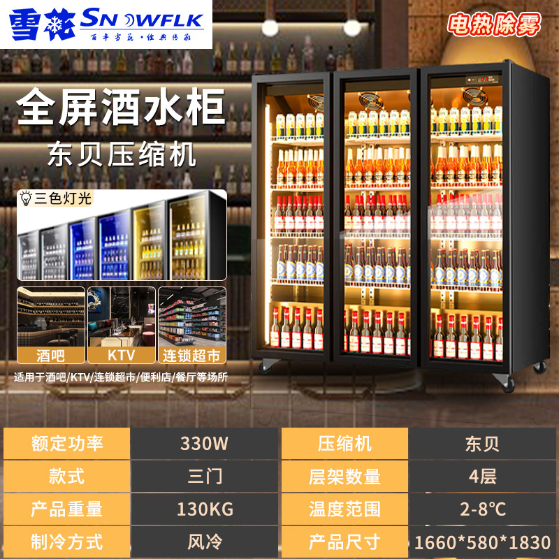 • 대형 3도어 와인 캐비닛 [1660*600*1830] 프레임리스 고급형 풀스크린 김서림 방지 모델 [주파수 변환 에너지 절약 + 전기 가열 김서림 방지]