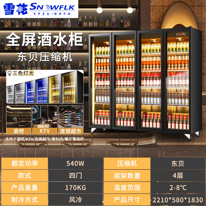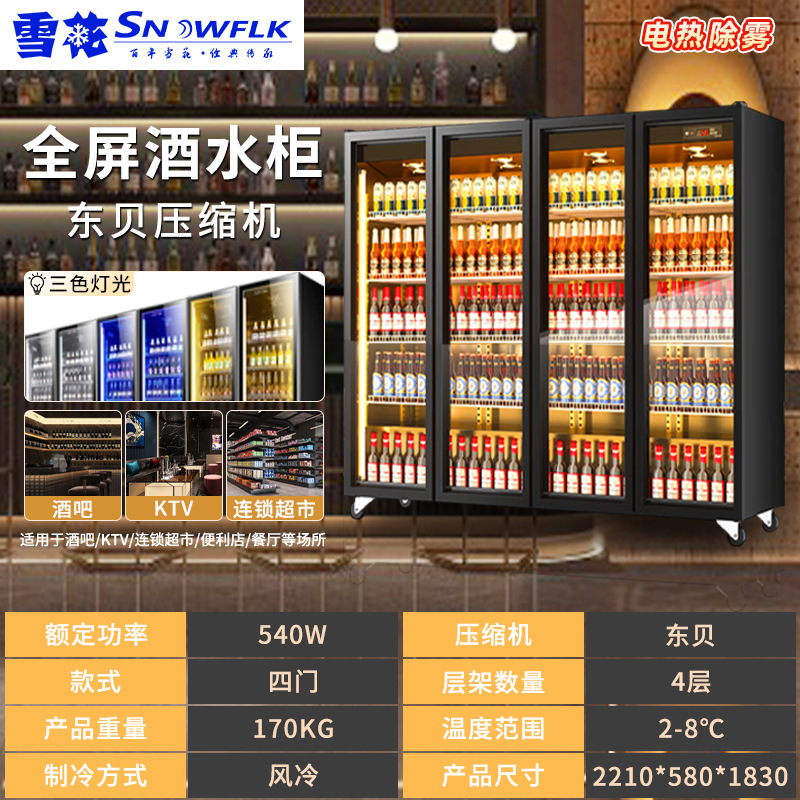• 대형 4도어 와인 캐비닛 [2210*580*1830] 프레임리스 고급형 풀스크린 김서림 방지 모델 [주파수 변환 에너지 절약 + 전기 가열 김서림 방지]