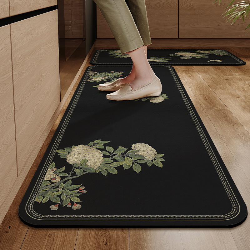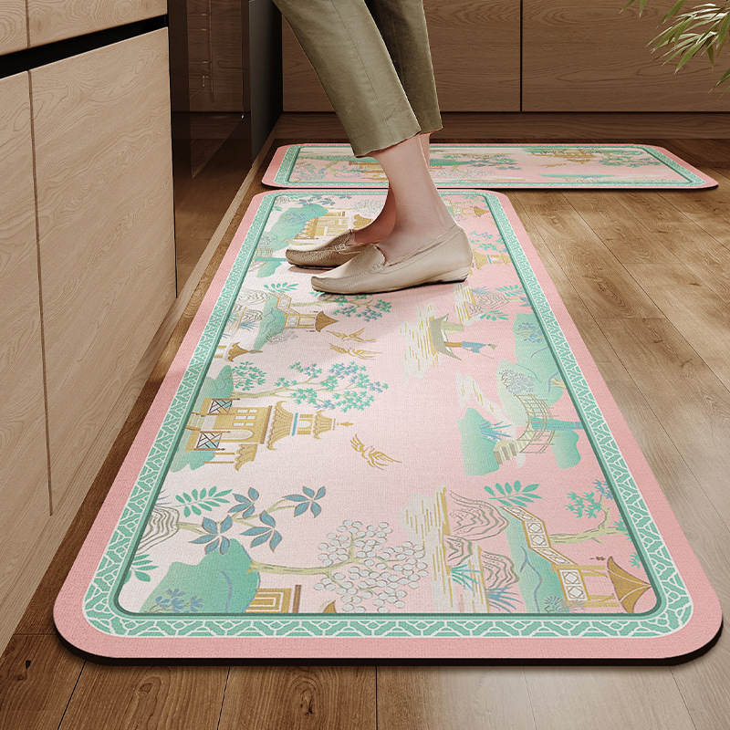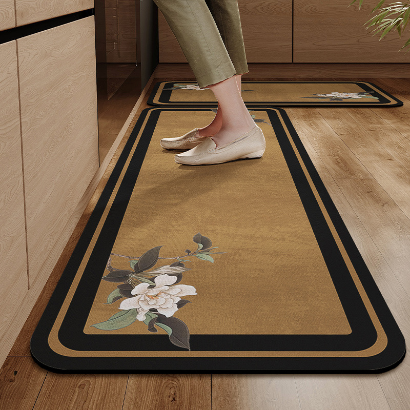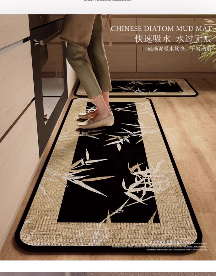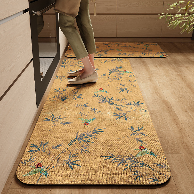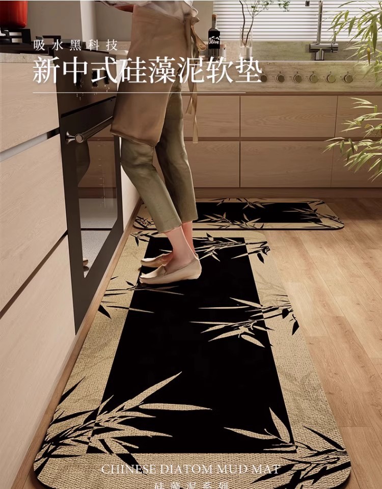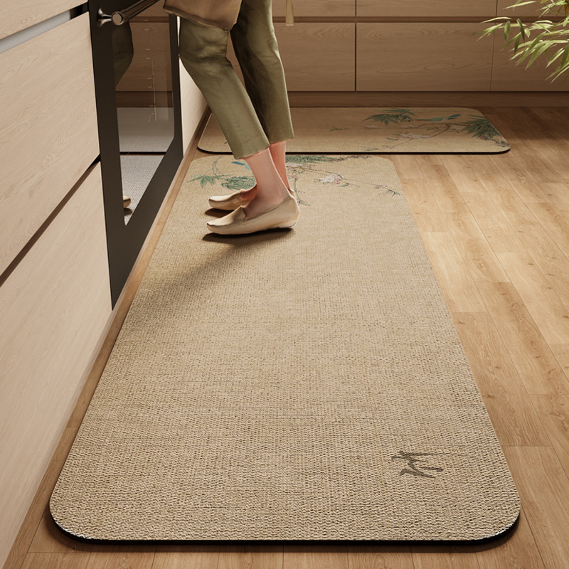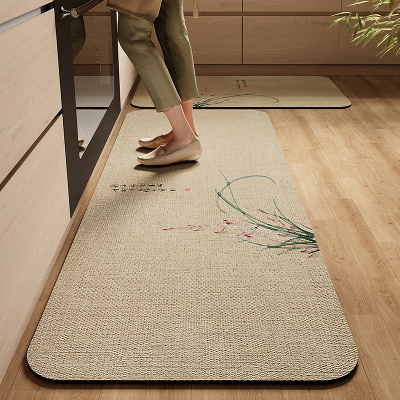 새로운 중국 스타일의 주방 바닥 매트, 흡수성 및 기름 흡수성 규조토 진흙 바닥 매트, 레스토랑 긴 스트립, 얼룩 방지 및 미끄럼 방지 매트, 관리가 쉬운 발 매트스토어 가기