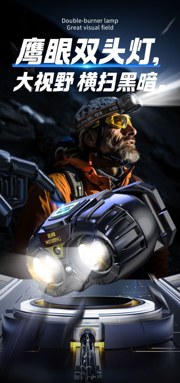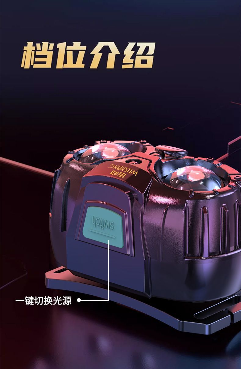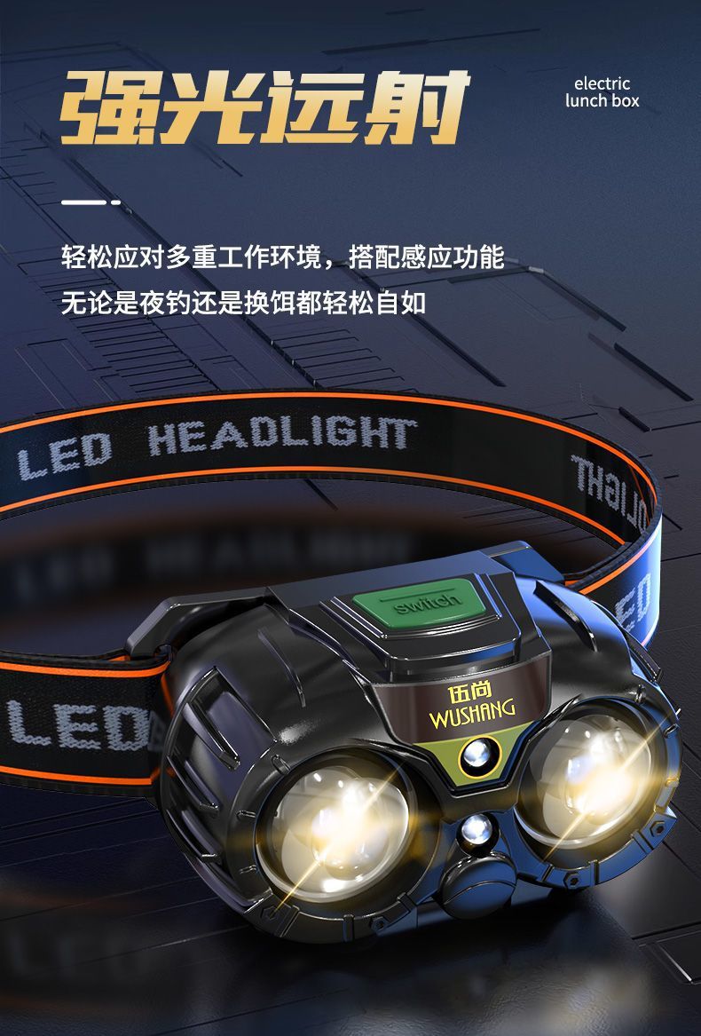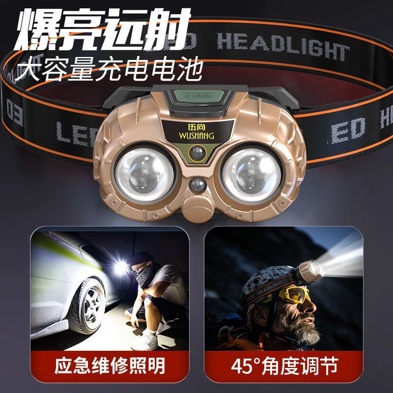 헤드램프, 매우 밝음, 충전식, 헤드 장착형, 강한 빛 감지, 매우 밝은 손전등, 야간 낚시 조명, 램프 수명